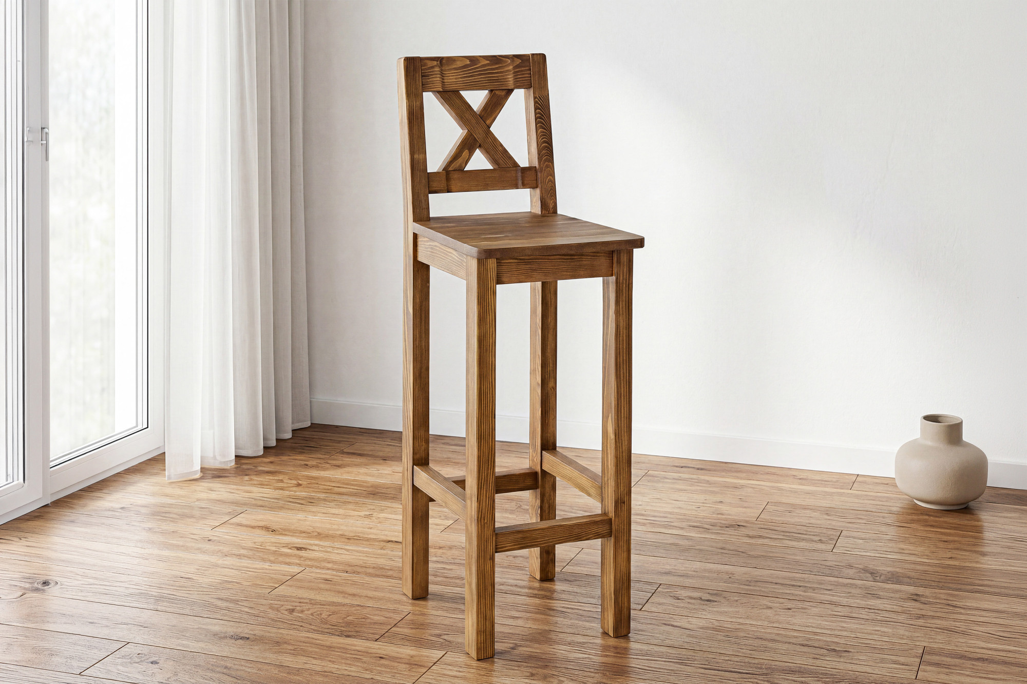 Barová stolička je vyrobená z kvalitného borovicového masívu, ktorý sa vyznačuje pevnosťou, stabilitou a dlhou životnosťou.