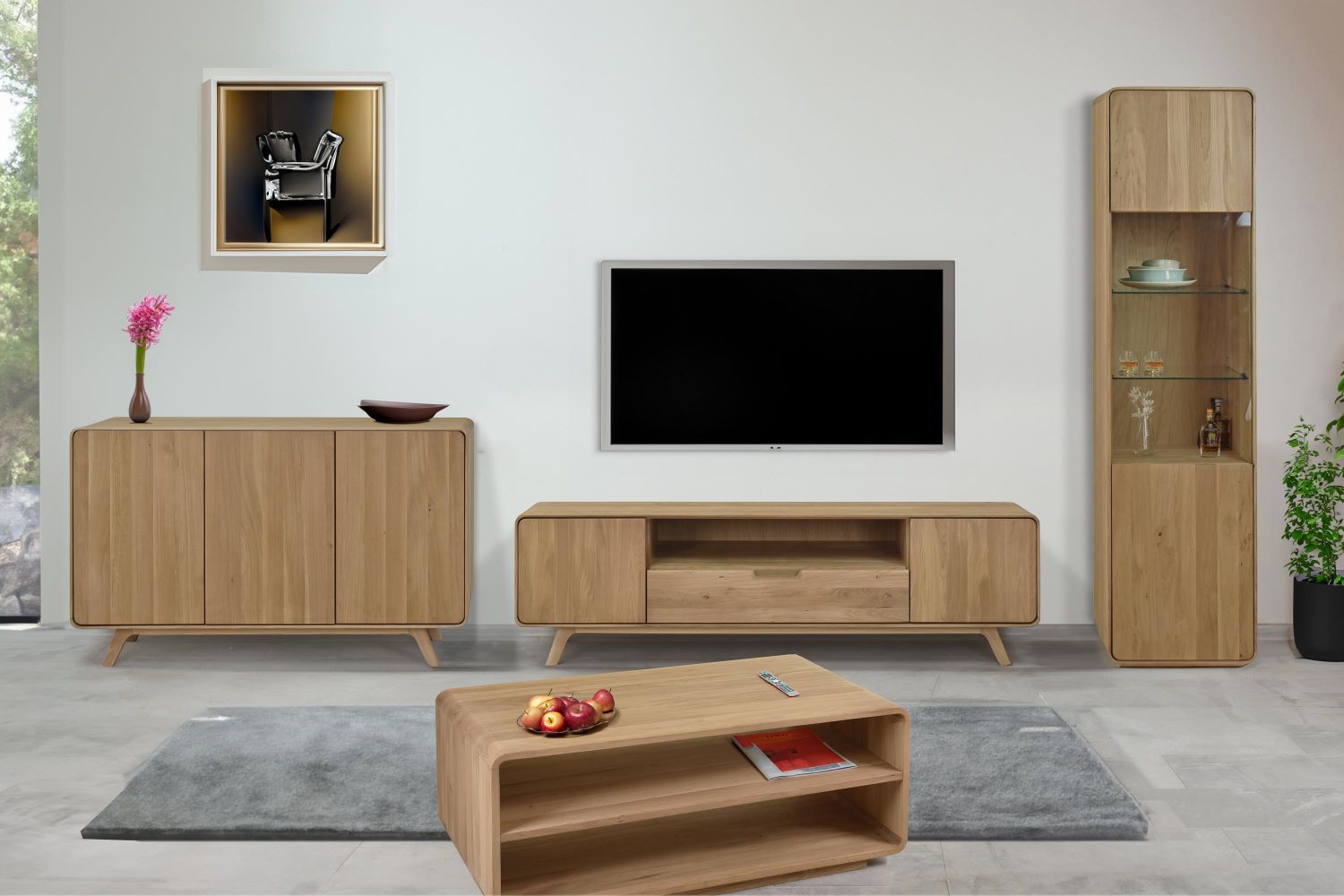 Masívny dub je mimoriadne odolný – či už ide o TV stolík, konferenčný stolík alebo komodu, vieš, že si kupuješ nábytok na roky. Je stabilný, pevný a neohne sa pod tlakom každodenného používania.