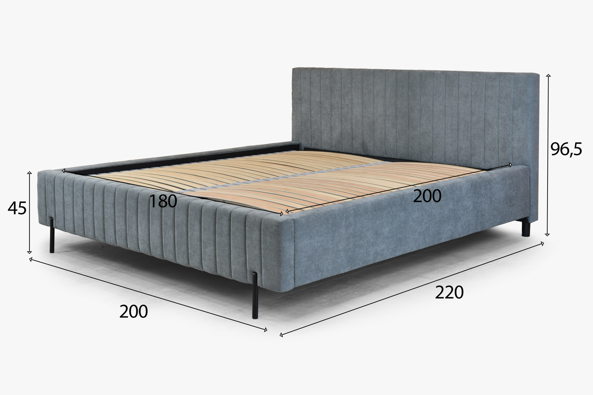 Predstavujeme čalúnenú posteľ v rozmere 180 x 200 cm, ktorá sa stane elegantnou dominantou vašej spálne. Posteľ je potiahnutá jemnou látkou Velvet Wind 89 v nadčasovej sivej farbe s príjemným zamatovým dotykom. Charakteristické vertikálne prešívanie po celom obvode aj na čele dodáva posteli moderný dizajnový charakter. Súčasťou dodávky je kvalitný lamelový rošt a priestranný úložný priestor s plynovými piestami, do ktorého pohodlne uložíte posteľnú bielizeň, vankúše či sezónny textil. Matrac nie je súčasťou dodávky a môžete si ju vybrať podľa vlastných preferencií.