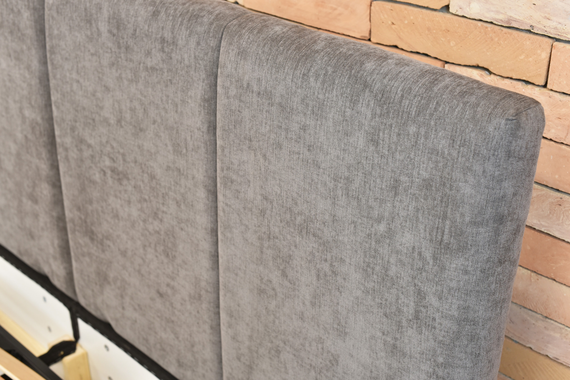 * Na obrázku detail čalúneného čela postele Atena a povrchu látky Flow 02