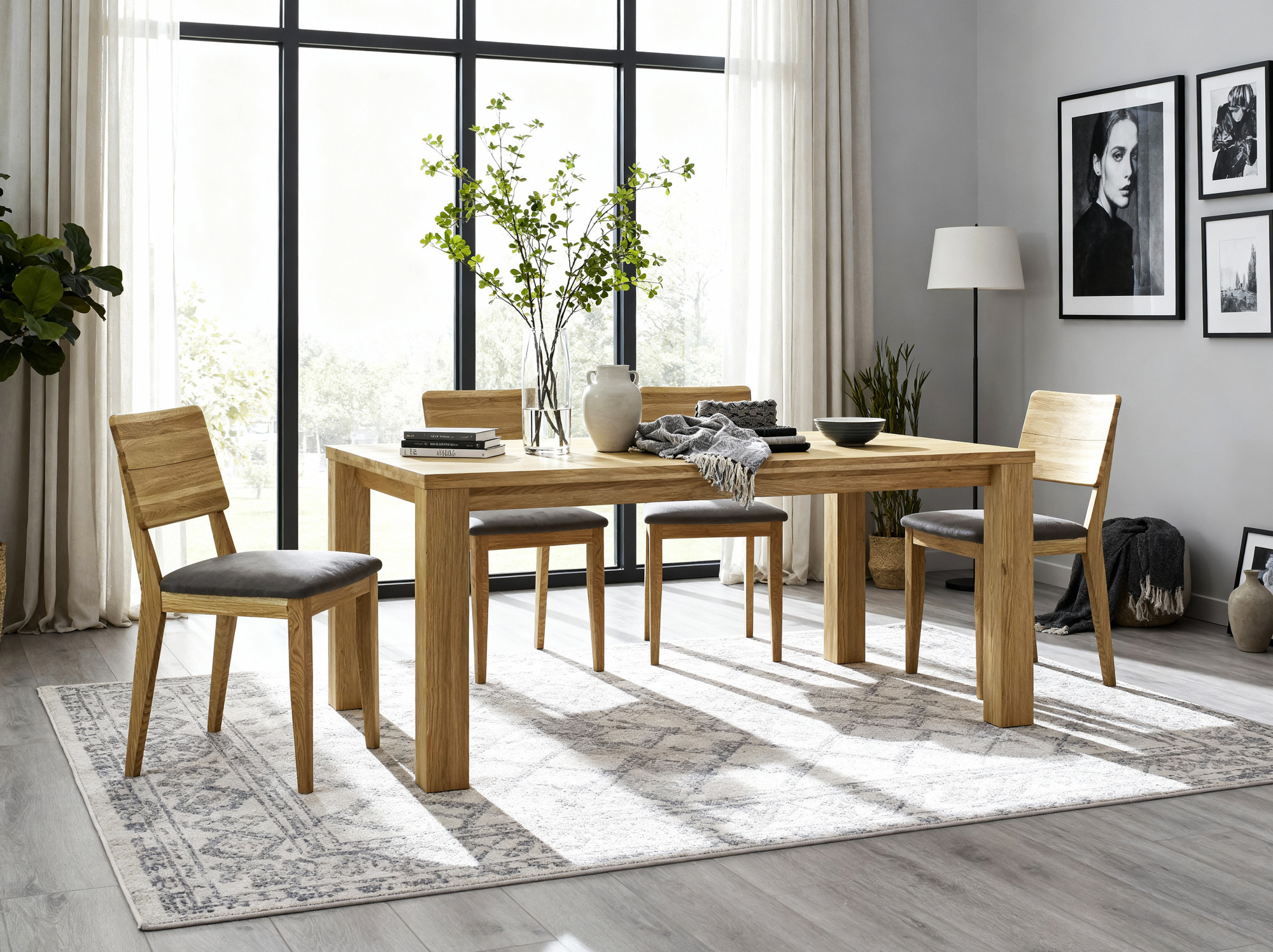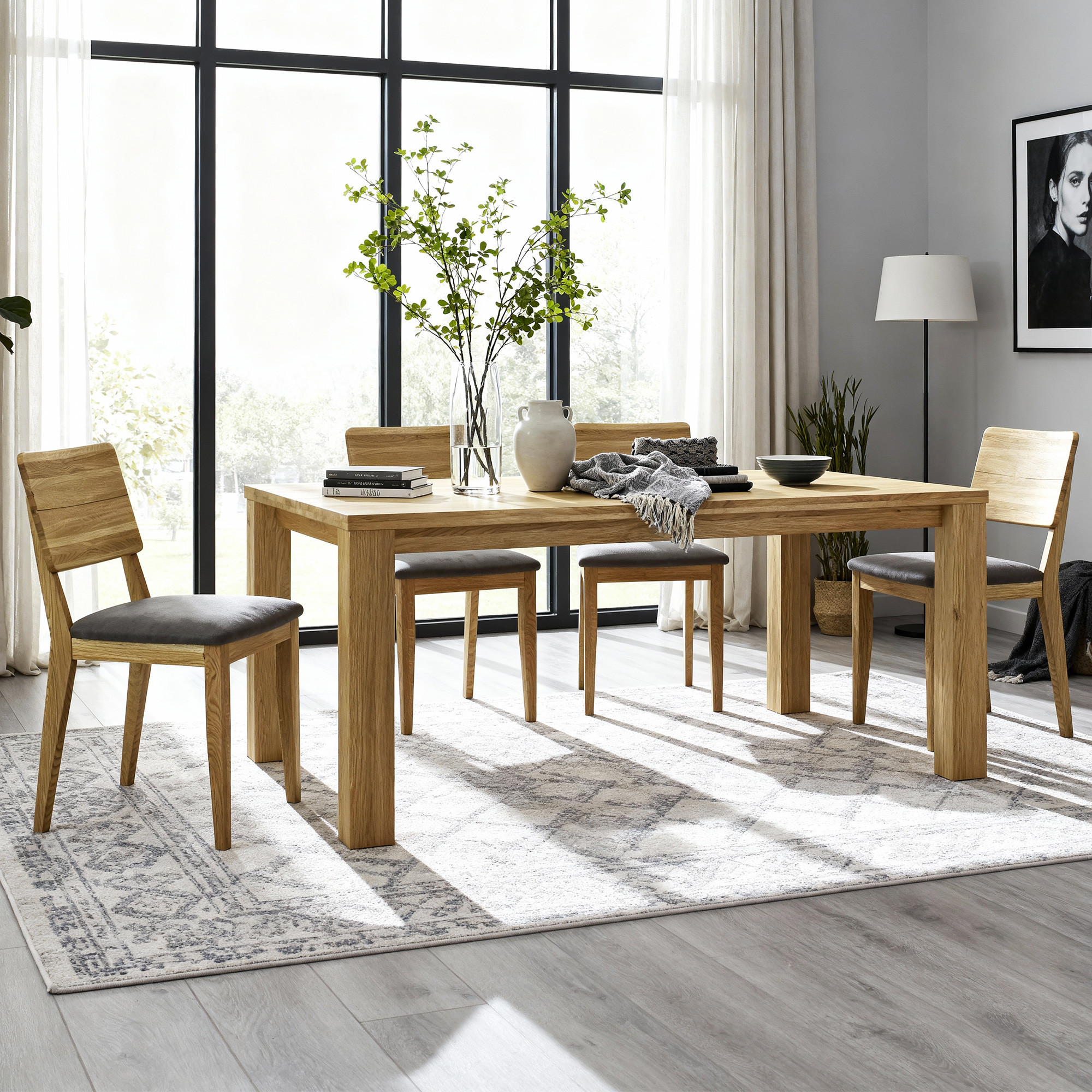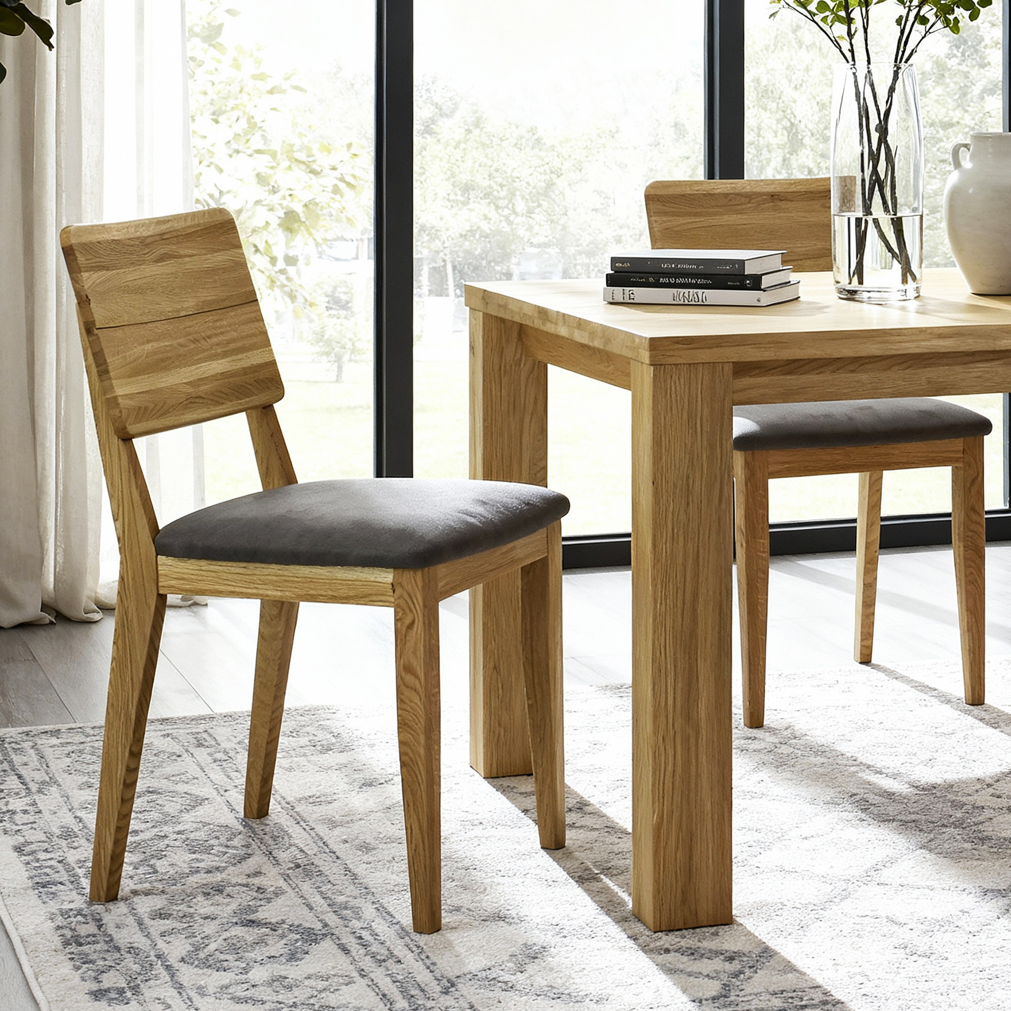 Otázka: Je možné kombinovať tento set s ďalším dubovým nábytkom? Odpoveď: Áno, vďaka univerzálnej povrchovej úprave dub natural sa náš stôl a stoličky perfektne hodia ku každému dubovému nábytku. Ponúkame širokú škálu doplnkových produktov z rovnakého materiálu.