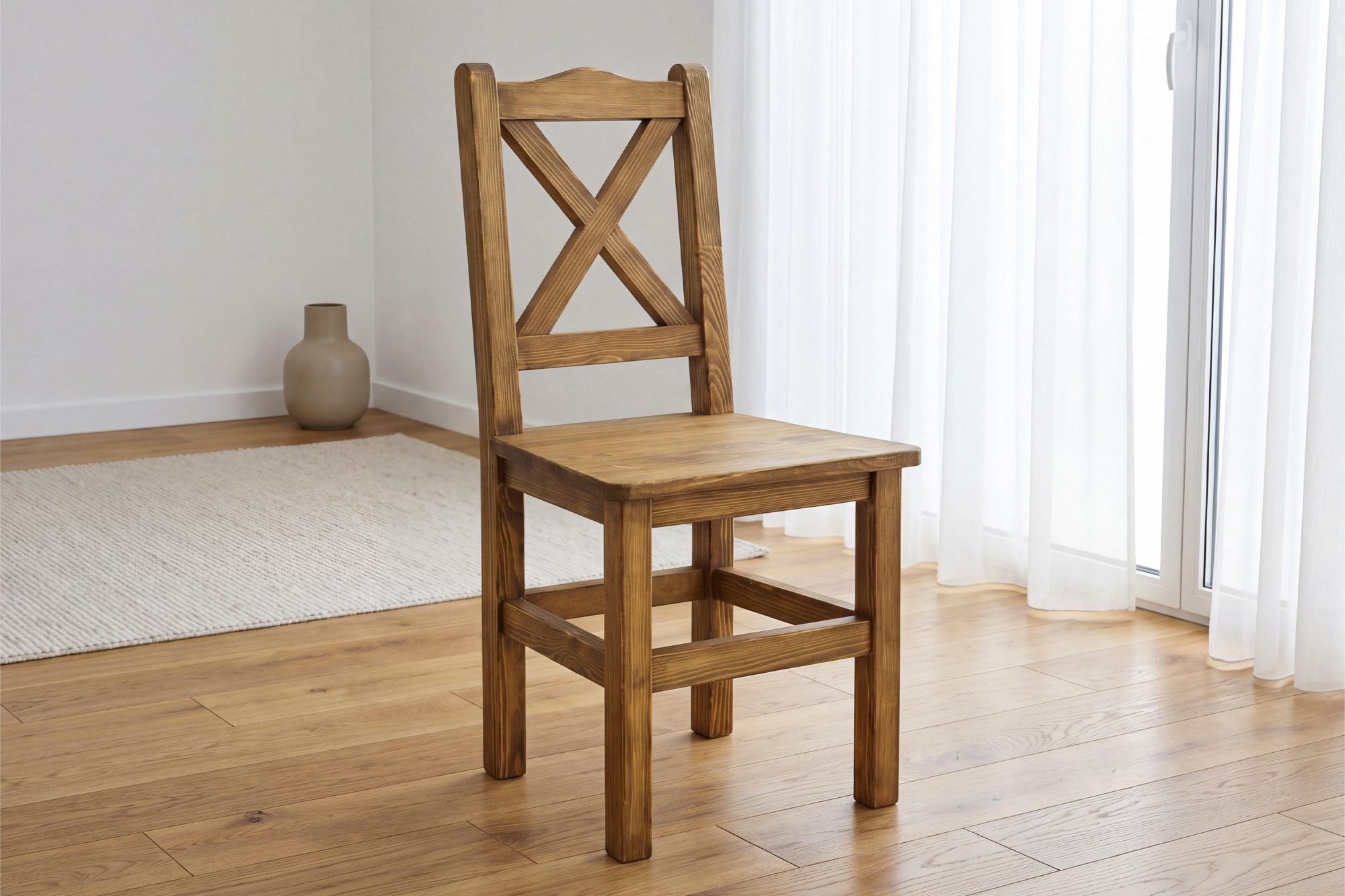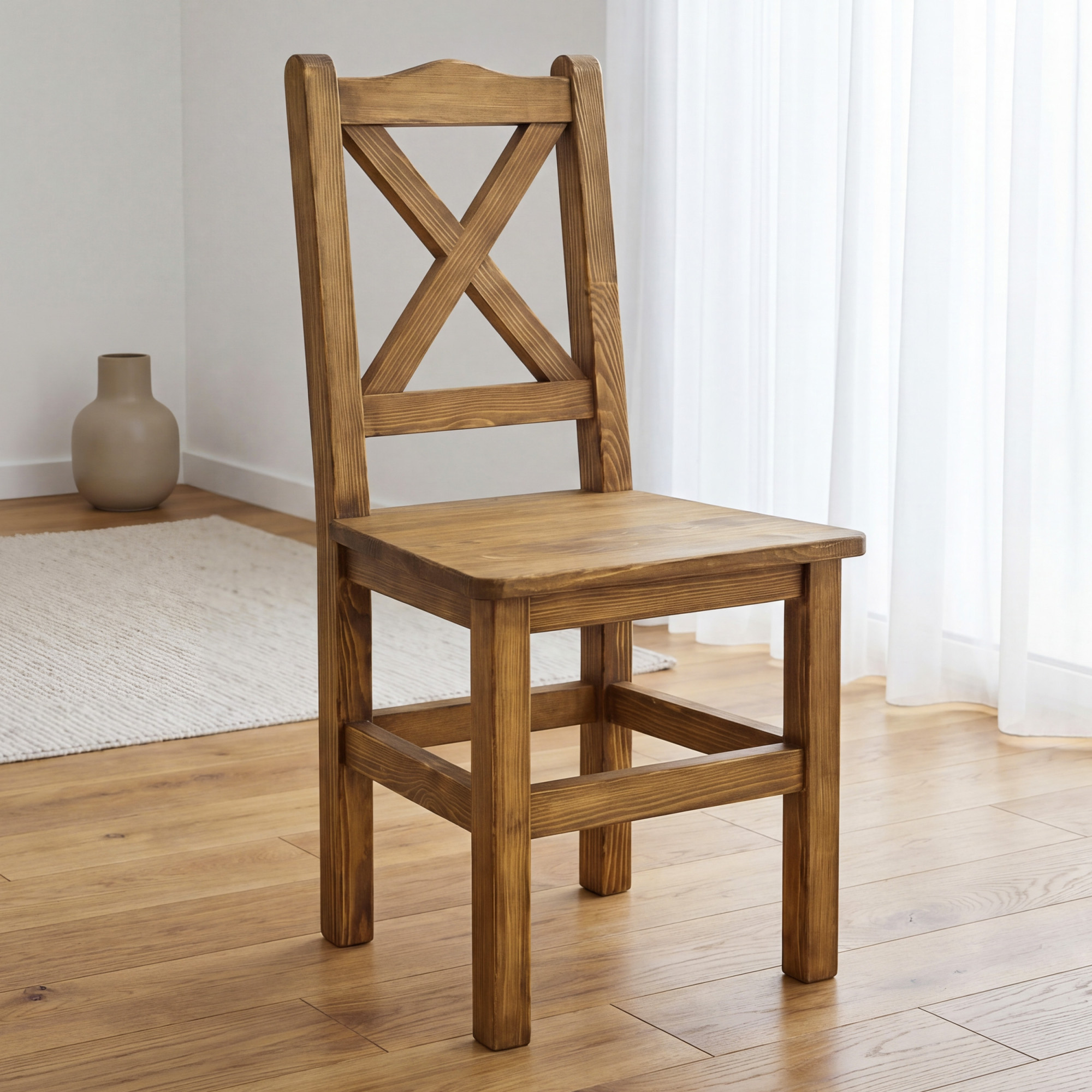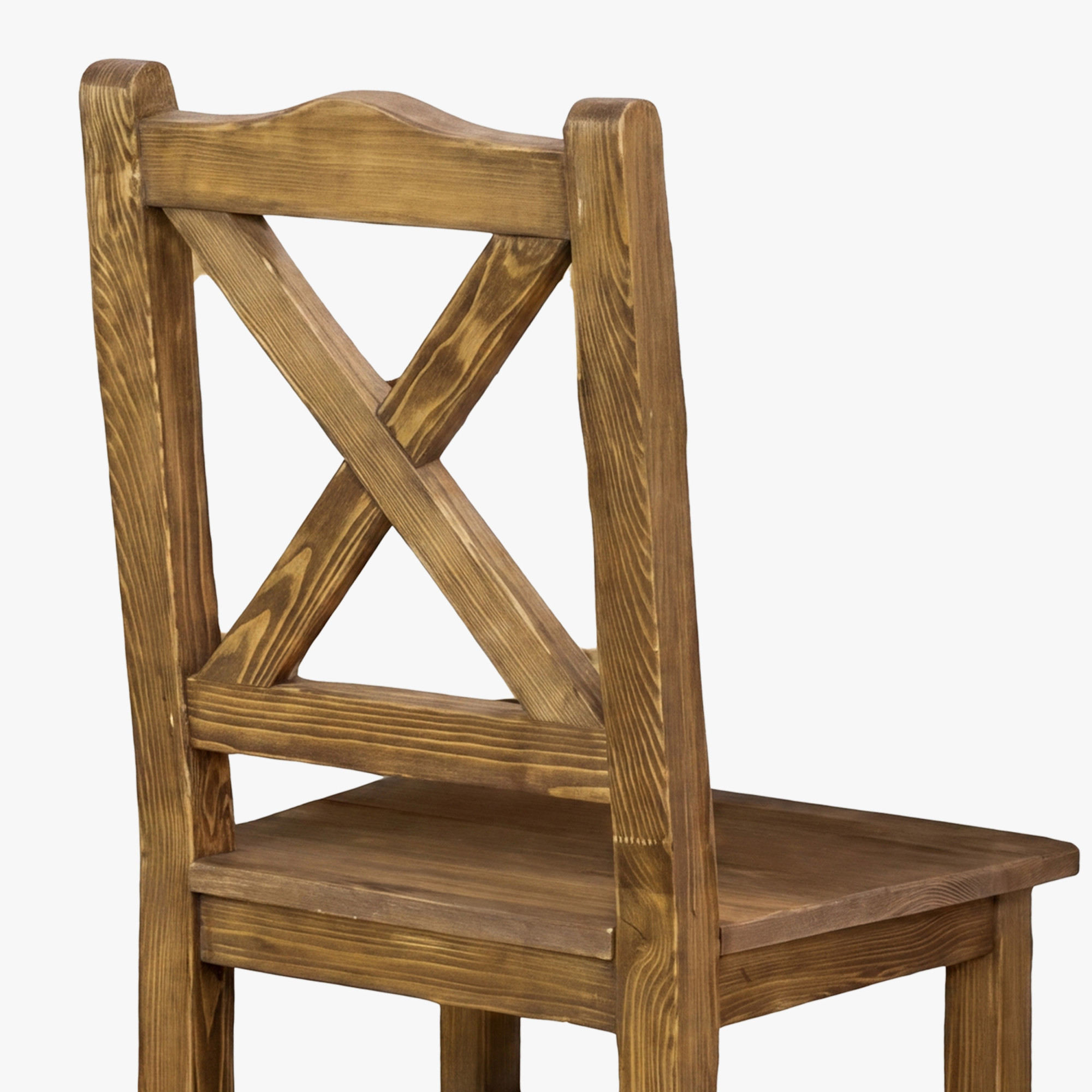 Rustikálne jedálenské stoličky z tejto zostavy sú rovnako vyrobené z masívneho borovicového dreva. Vynikajú vysokou pevnosťou, stabilitou a tradičným vzhľadom, ktorý dokonale dopĺňa jedálenský stôl v rovnakom štýle. Veľkou výhodou je, že stoličky sú dodávané už zostavené, takže odpadá akákoľvek zložitá montáž a môžete ich ihneď používať.