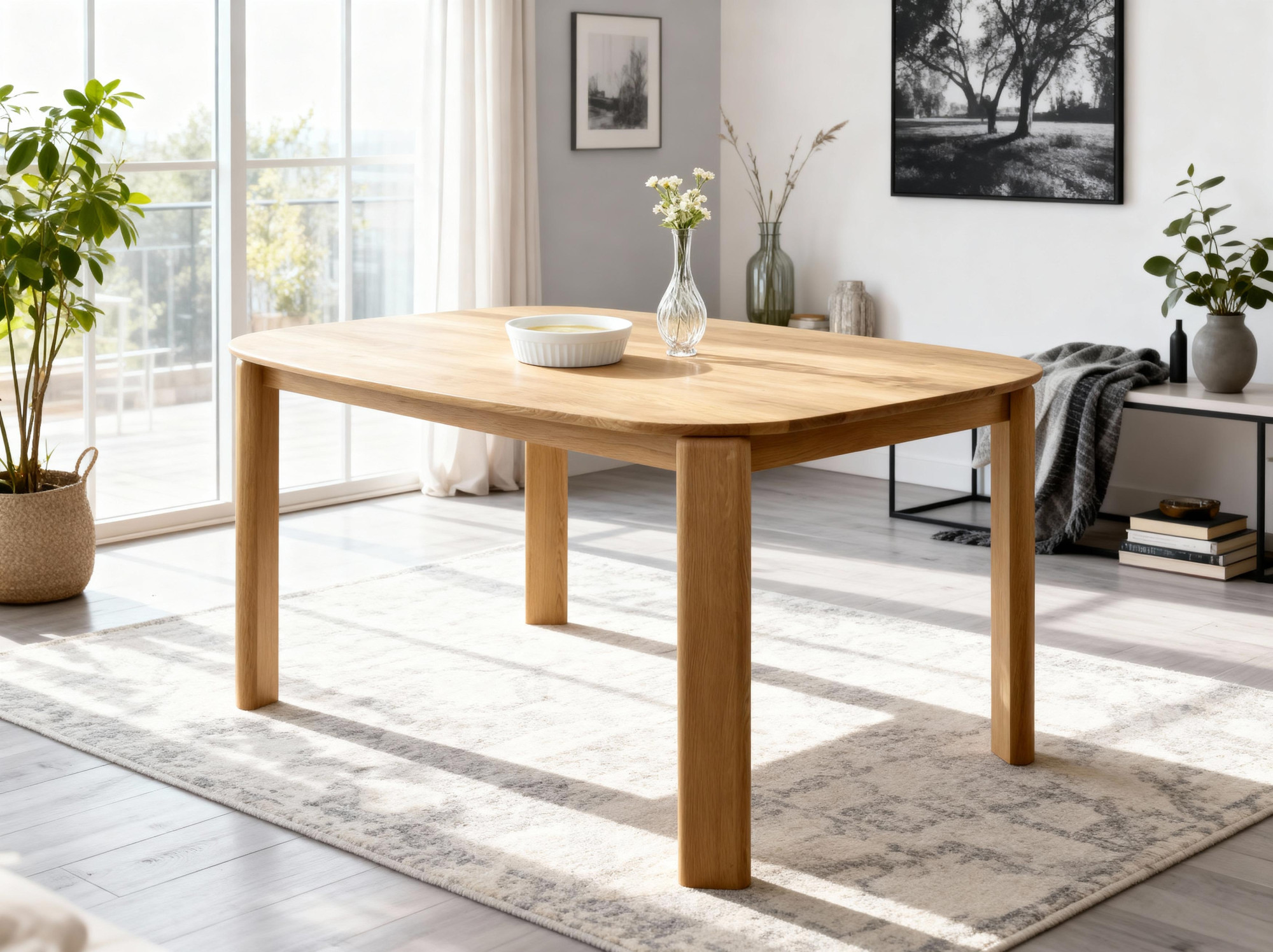 Jedálenský set Robi & Brando predstavuje ideálne spojenie prírodného dubového dreva, premysleného dizajnu a funkčnosti. Oválny jedálenský stôl Robi o rozmere 160 × 90 cm z masívneho dubu ponúka dostatok priestoru pre rodinné stolovanie aj priateľské stretnutia. Jeho tvar pôsobí ľahko a elegantne, pričom vrchná doska s hrúbkou 20 mm zaručuje stabilitu a dlhú životnosť. Povrch ošetrený talianskym olejom Borma Wachs chráni drevo pred vlhkosťou a zvýrazňuje prirodzenú kresbu dubu v odtieni „dub natural“. Stôl sa dodáva v demontovanom stave s návodom na jednoduchú montáž, ktorú zvládnete počas niekoľkých minút.