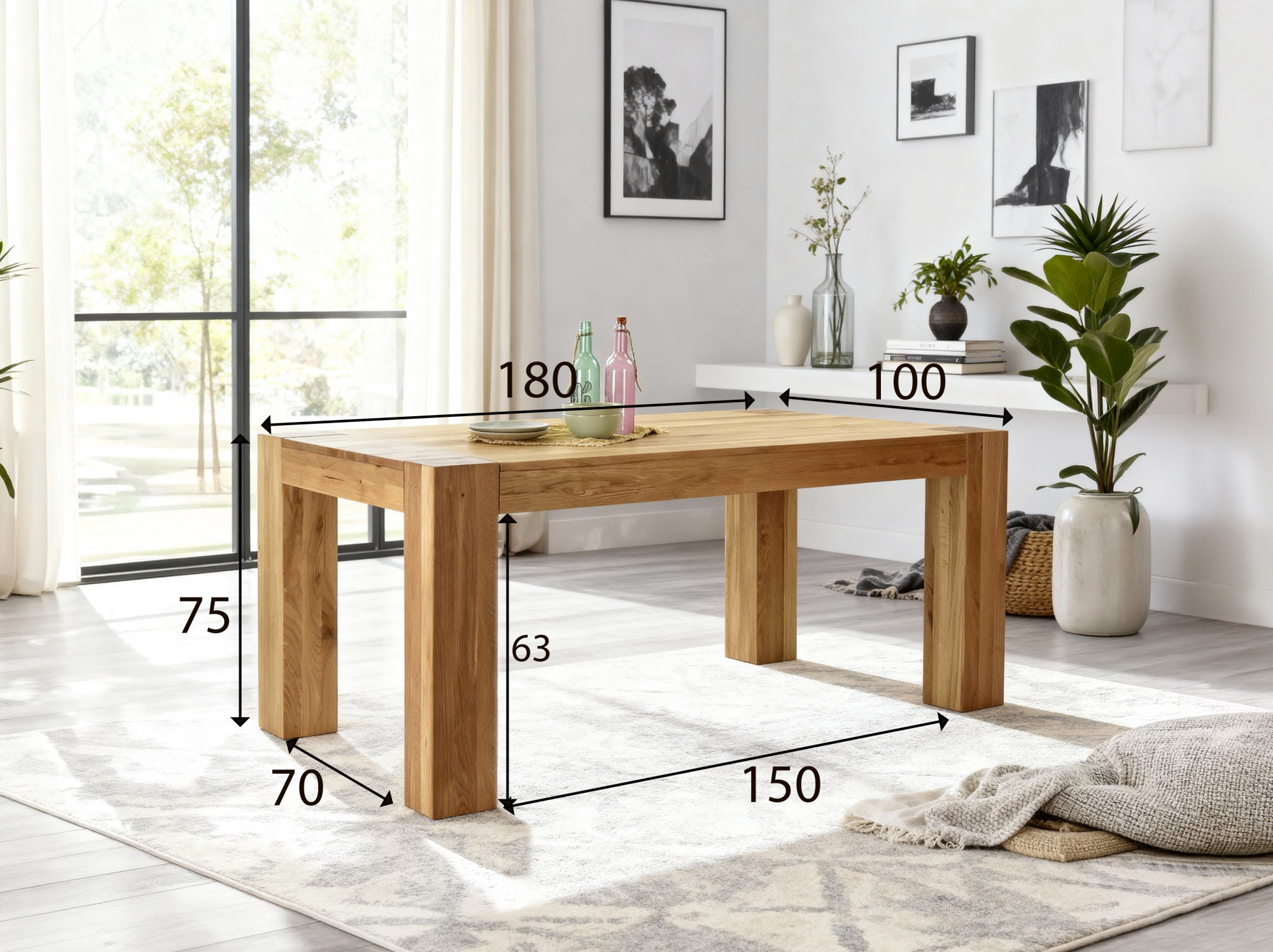 - Masívne nohy stola: priečny rez 15 × 15 cm poskytuje maximálnu stabilitu