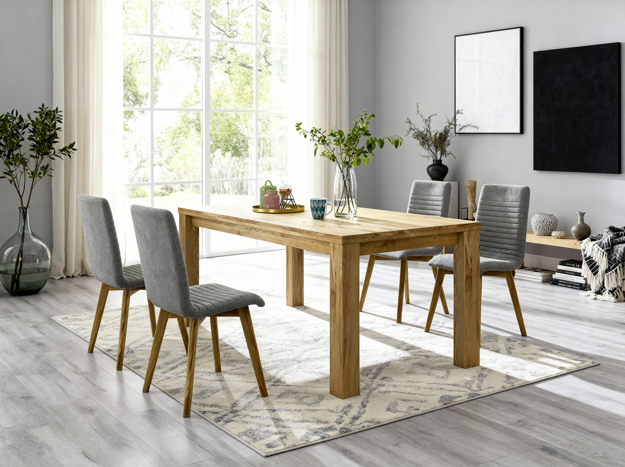 * Na obrázku dubový stôl Bratislava a jedálenské stoličky arosa v svetlosivej látke