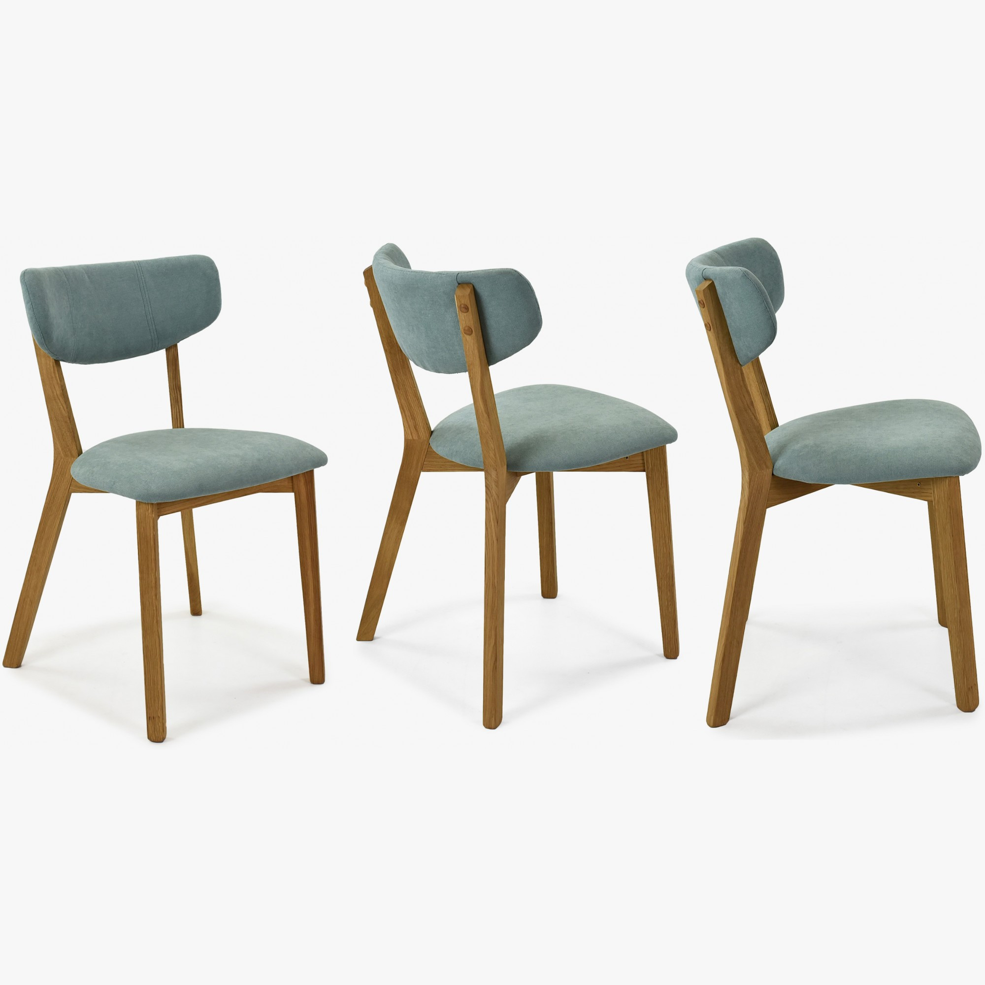 Súčasťou setu sú aj štyri stoličky Amisa v elegantnej svetlo zelenej farbe, vyrobené v jemnom škandinávskom štýle. Kvalitná látka Soro s oderuvzdornosťou až 100 000 cyklov je veľmi príjemná na dotyk a ľahko sa udržiava len jemne navlhčenou handričkou a mydlom s pH 0. Masívne dubové nohy sú ošetrené ekologickým talianskym olejom značky Bormo Wachs, vďaka čomu si stoličky uchovávajú svoj prirodzený vzhľad po dlhé roky. Vnútorná výplň tvorí komfortná PU pena, ktorá zabezpečuje nadštandardné pohodlie pri sedení. Stoličky sa dodávajú už kompletne zmontované, majú subtilné rozmery vhodné aj do menších priestorov a nosnosť až 110 kg. Set je tak vhodný do moderných aj tradičných interiérov, kde oceníte kvalitu, praktickosť a estetiku v jednom celku. Kľúčové slová: rozkladací stôl dub, jedálenská zostava z masívu, dubový nábytok, škandinávska stolička, kvalitný jedálenský set.