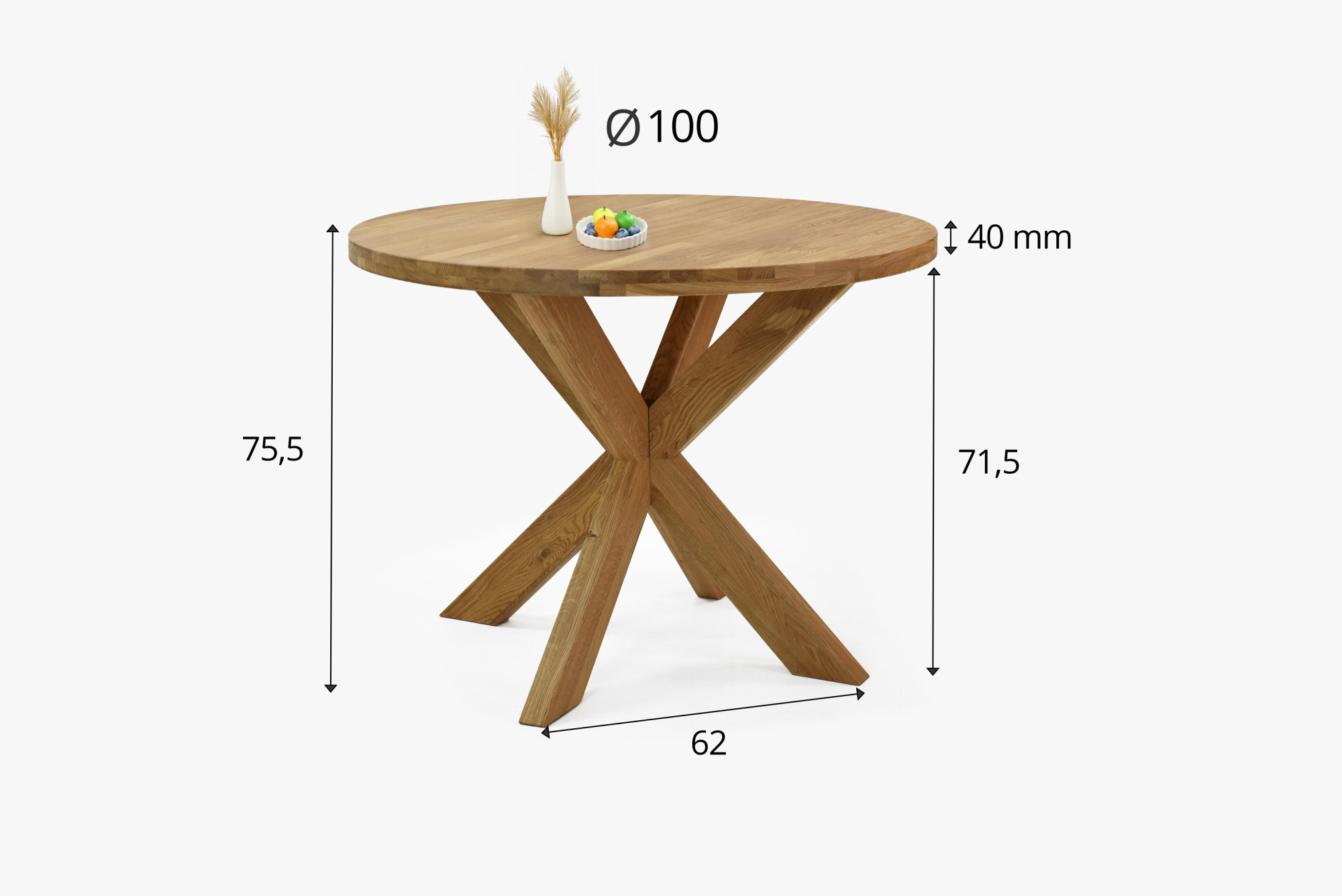 - Stôl s priemerom 100 cm s robustnými kríženými nohami