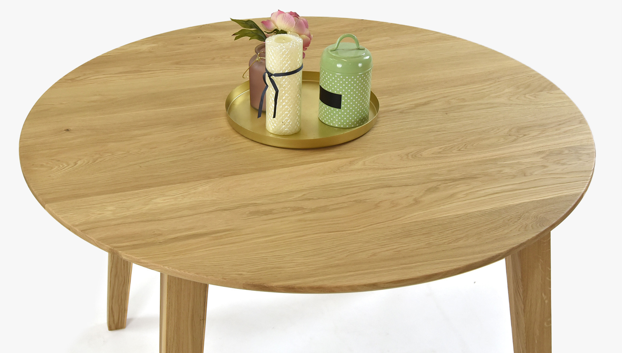 - Masívny dubový stôl o priemere 90 cm – ideálny pre 4 osoby