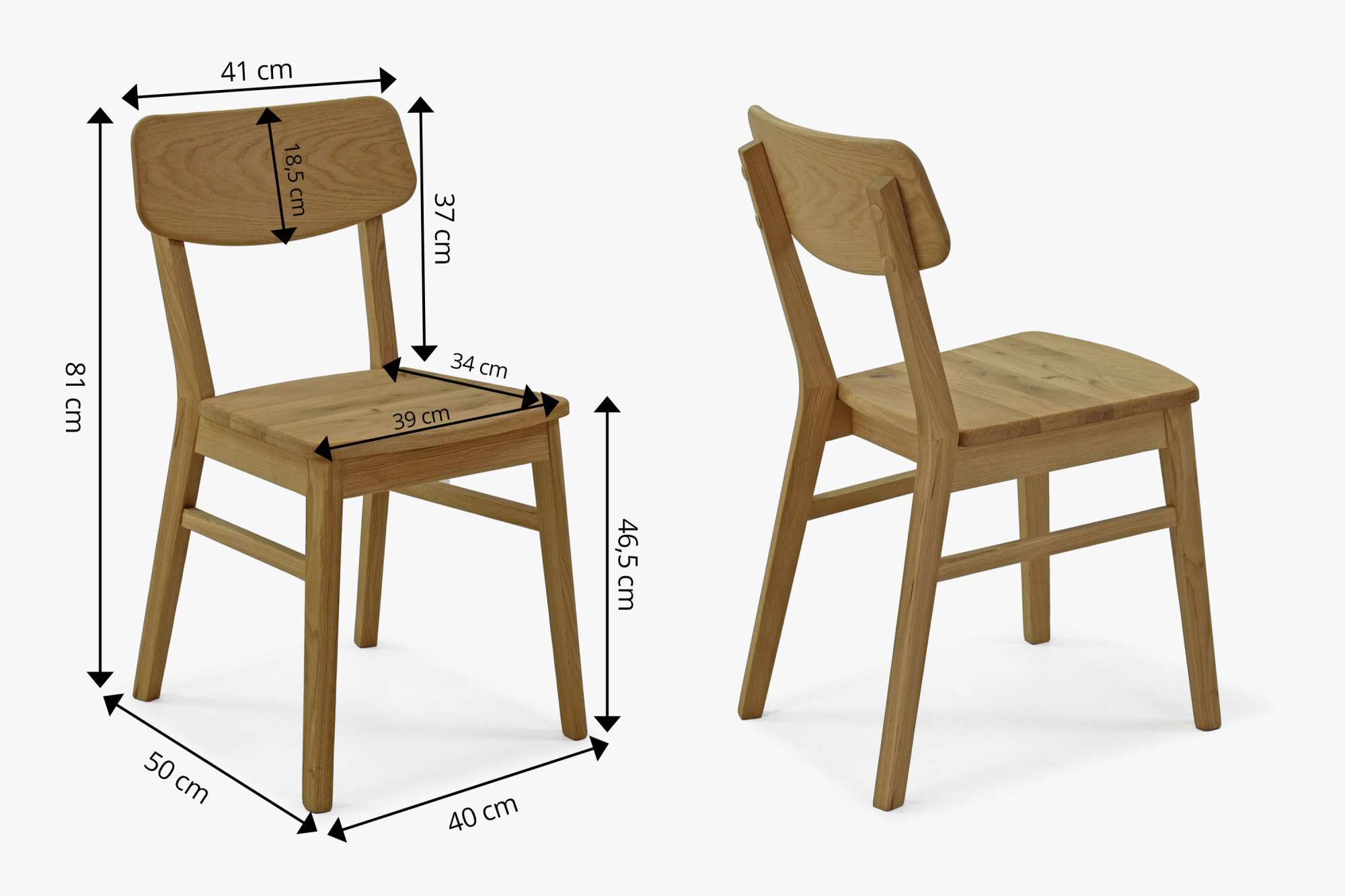 Masívne stoličky Vilnus sú vyrobené z dubového dreva s certifikáciou FSC, čo zaručuje ekologický pôvod materiálu. Povrchová úprava prírodným olejom v odtieni dub natural zabezpečuje jednoduchú kombinovateľnosť s ostatným dubovým nábytkom a prináša do interiéru harmóniu a teplo prírody. Stoličky sa dodávajú už kompletne zostavené v balení po dvoch kusoch, čo výrazne uľahčuje ich uvedenie do prevádzky. Jedálenská zostava Janov & Vilnus je ideálna pre 4 osoby a predstavuje spojenie kvality, dlhej životnosti a prírodného dizajnu.