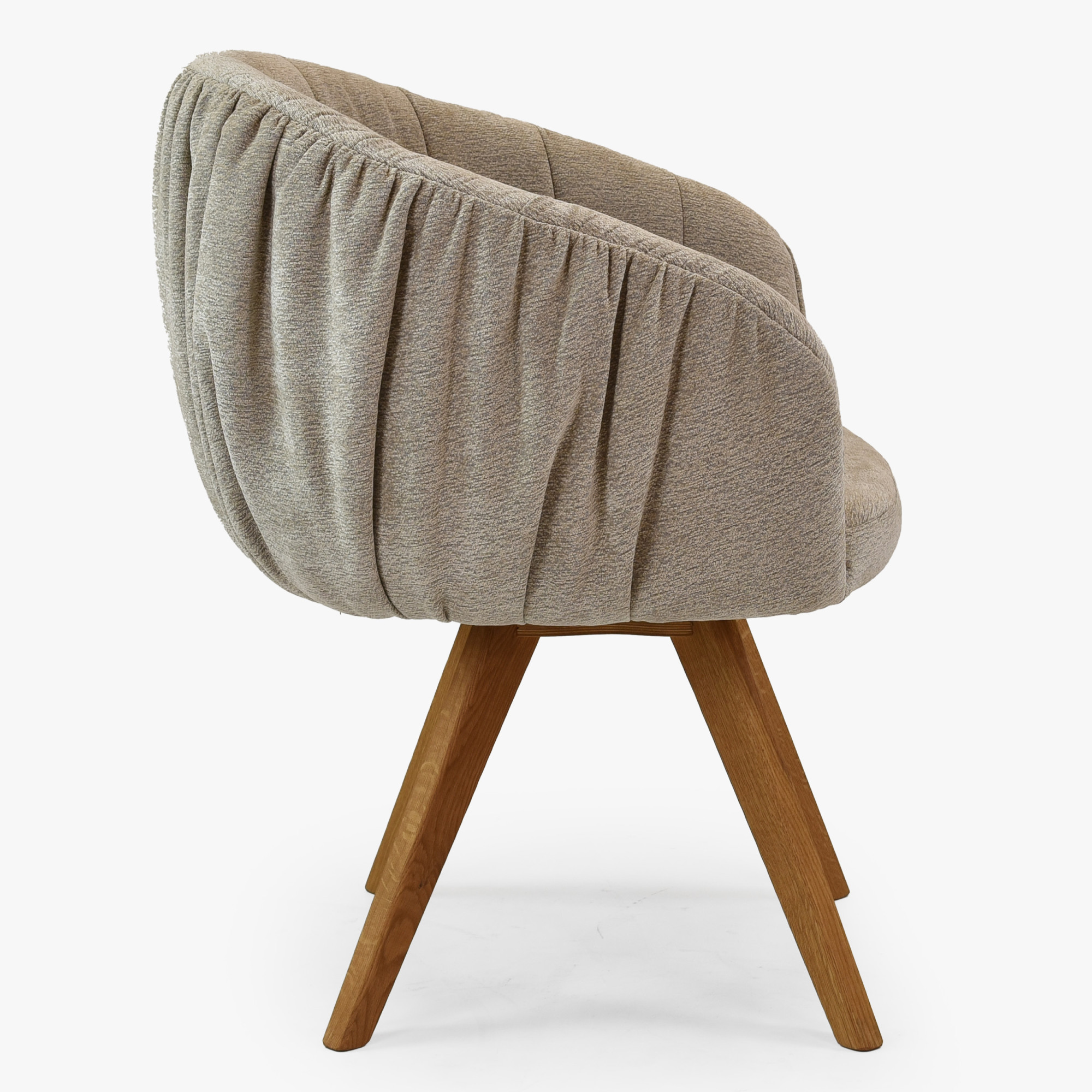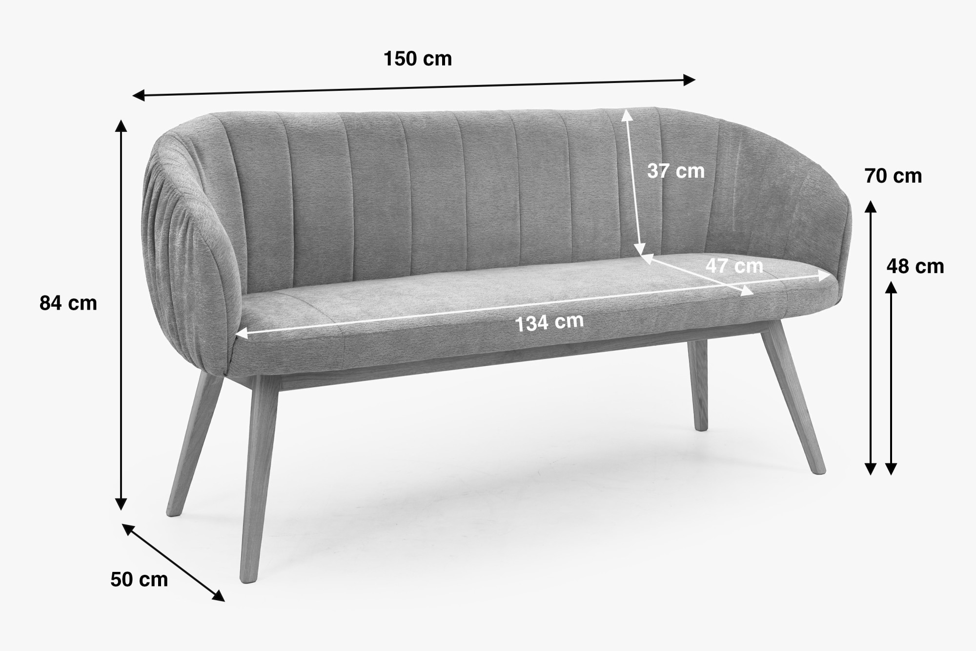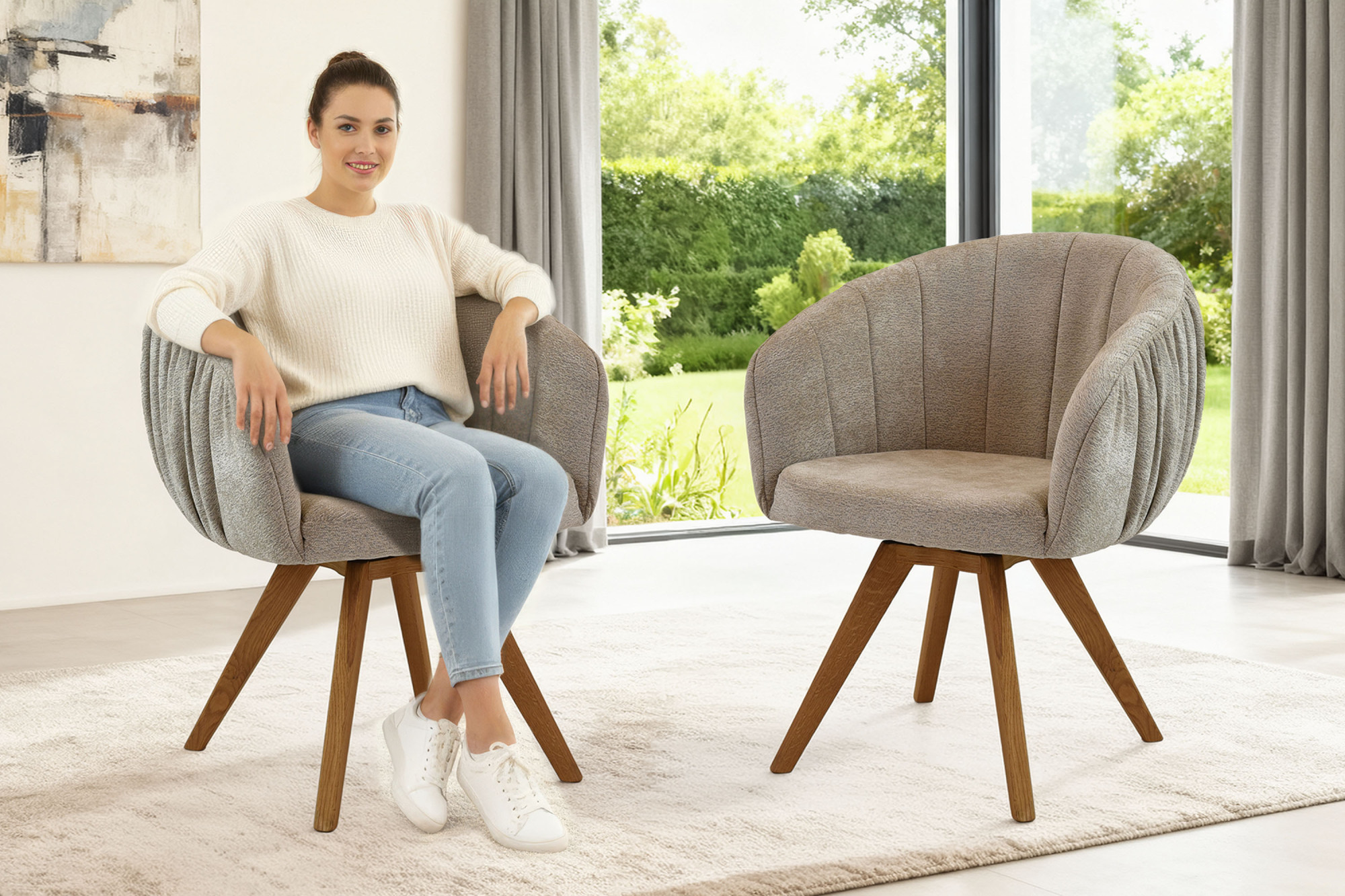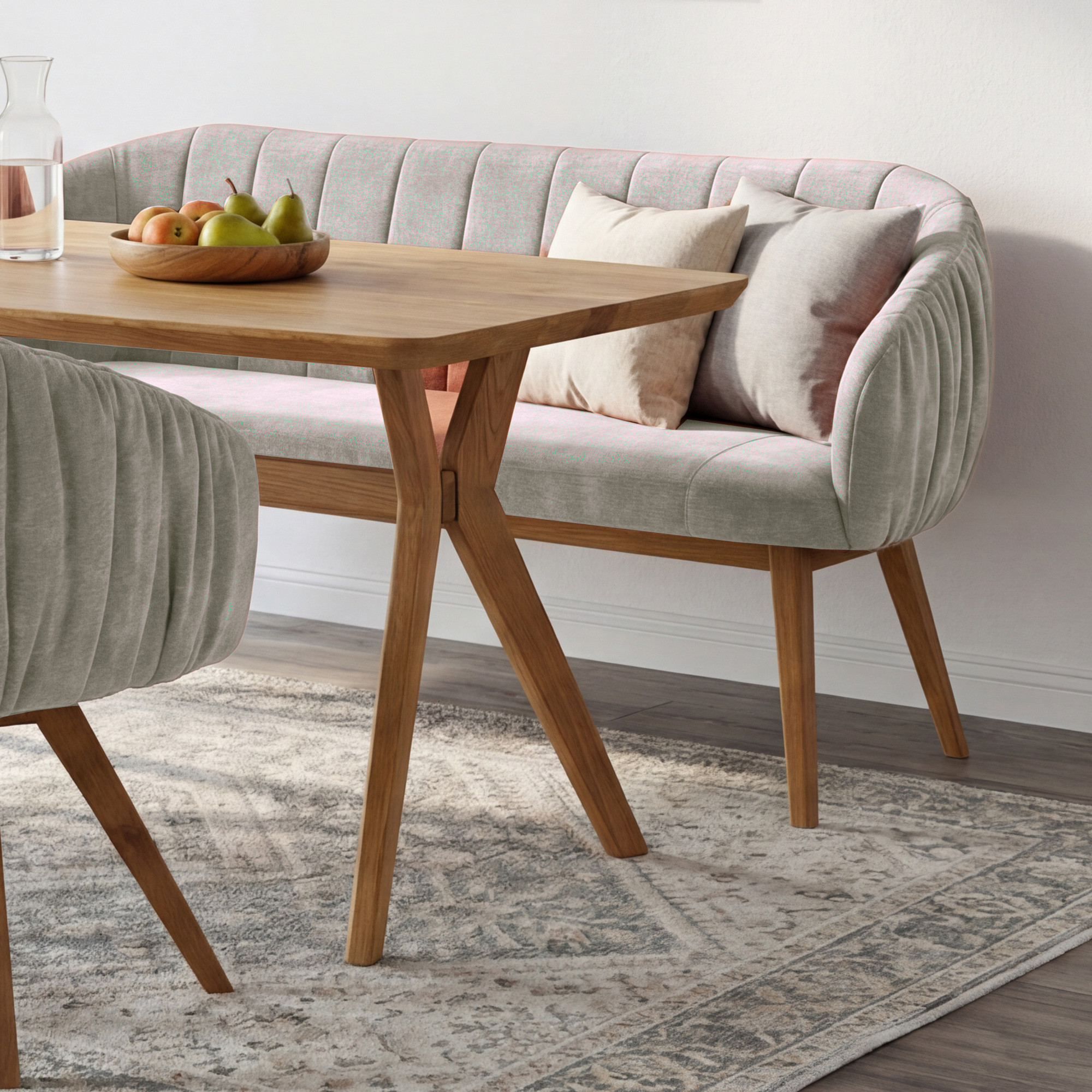 Základom setu je oválny jedálenský stôl z masívneho dubového dreva o rozmeroch 180 × 90 cm, ktorý poskytuje dostatok miesta pre pohodlné stolovanie až 6–8 osôb. Dubové otočné kresielka i lavica sú navrhnuté s dôrazom na ergonómiu, komfort sedenia a stabilitu. Masívne dubové nohy zaisťujú vysokú nosnosť a dlhú životnosť, zatiaľ čo kvalitné čalúnenie prináša príjemný pocit pri každodennom používaní. Povrchová úprava prírodným olejom zvýrazňuje kresbu dreva a chráni nábytok po mnoho rokov.