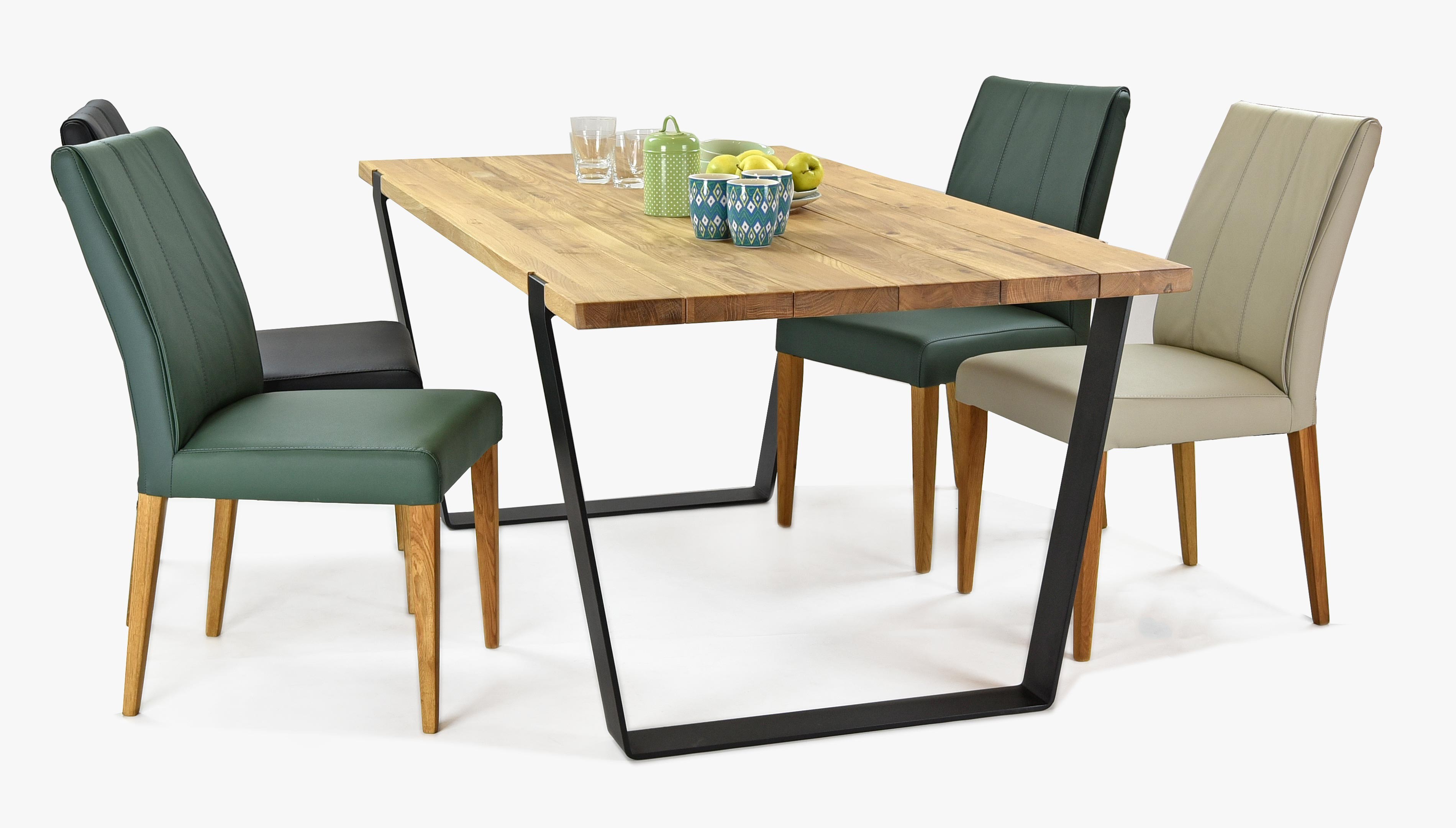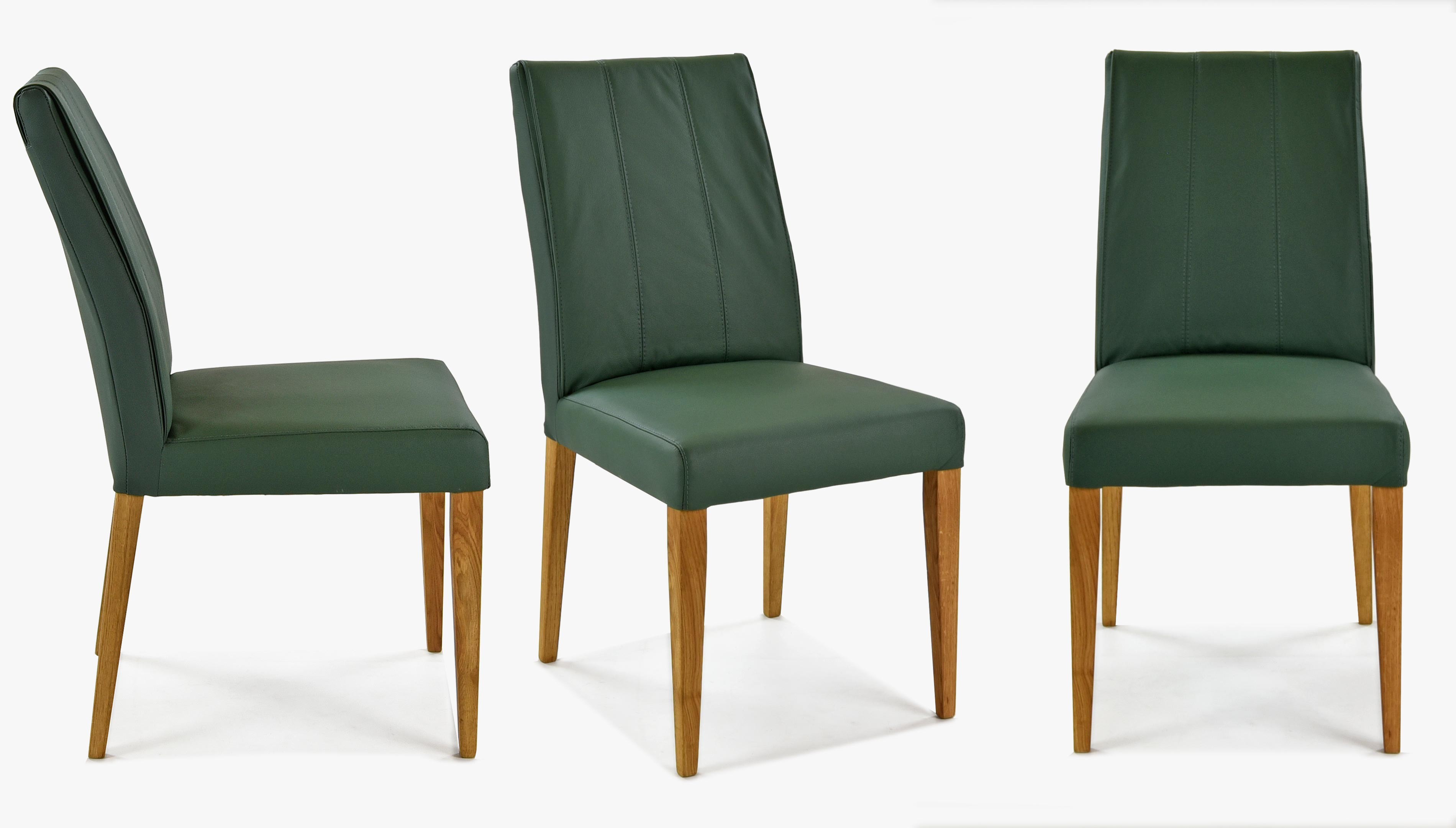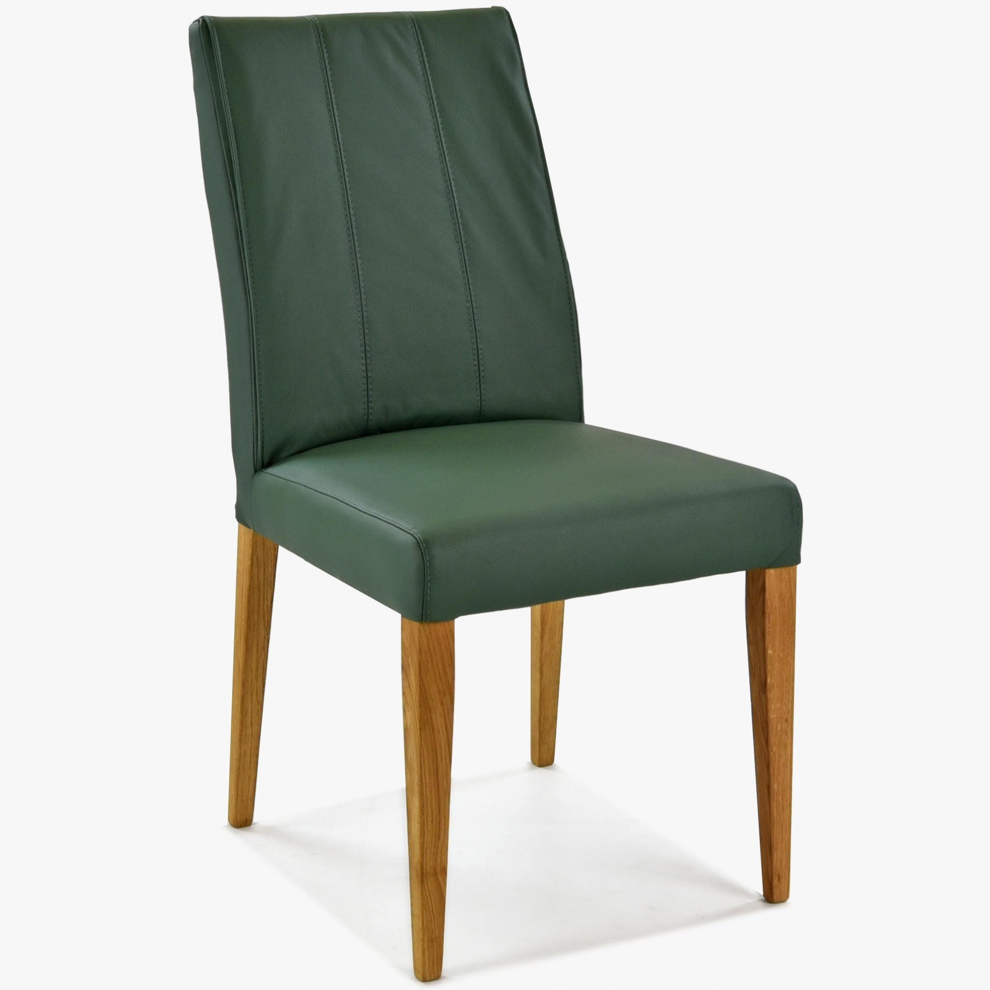 Stolička pravá koža - zelená farba Klaudia, nohy dub