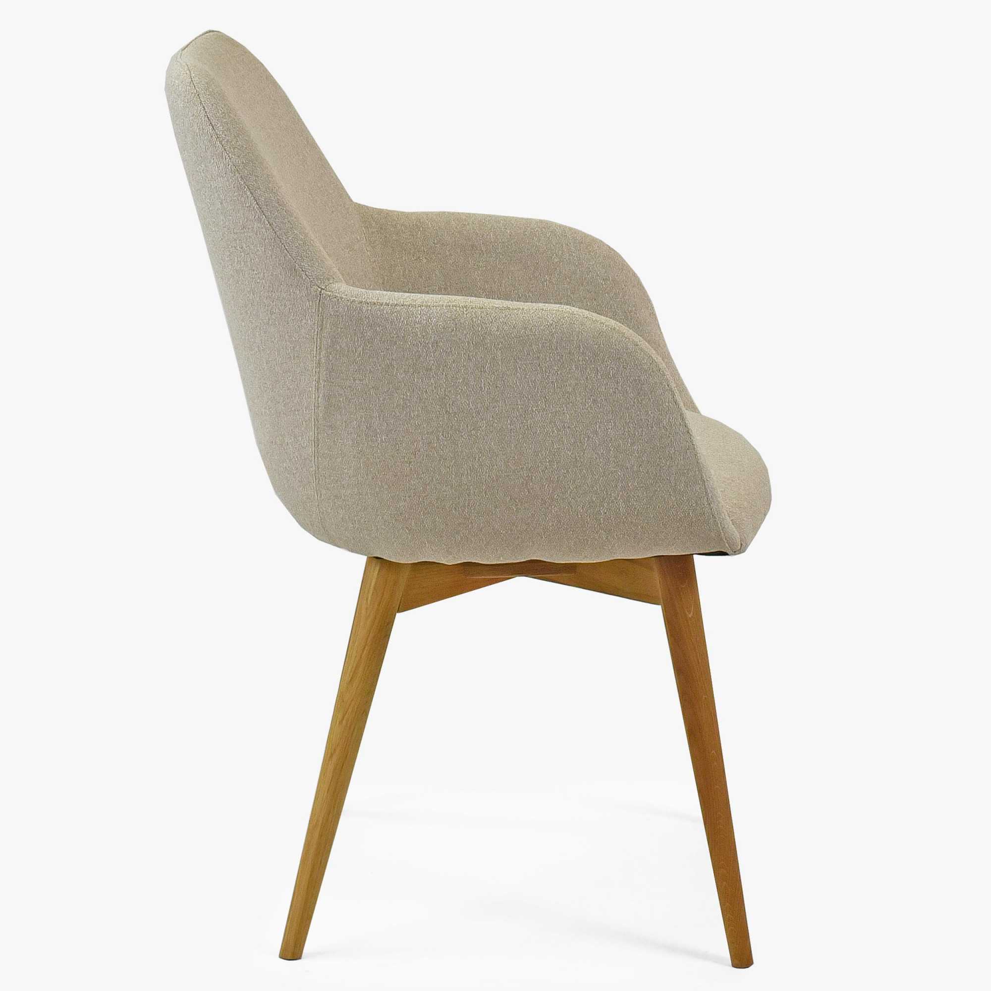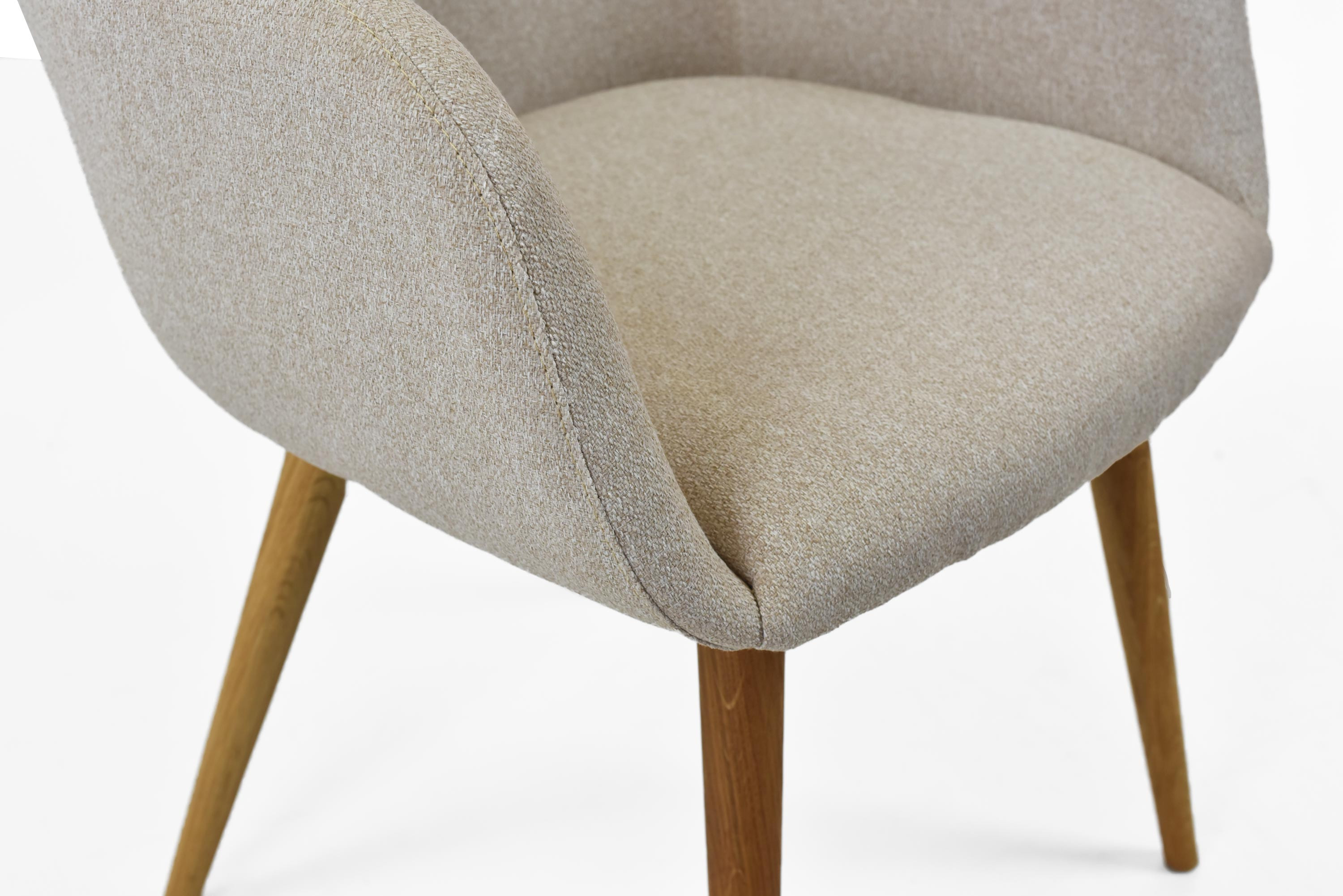 Úžasná nadčasová stolička do jedálne model SKY. Novinka pre rok 2020, kde na výrobu sú použité materiály najvyššej rady. Stolička s područkami je dostupná v dvoch farbách látky. (Svetlo šedá s nádychom modrej a béžová ). Látka je veľmi príjemná na dotyk, čistenie len pomocou vody. Stolička Sky má odporúčanú nosnosť do 110 kg. Nohy stoličky sú vyrobené z certifikovaného dreva FSC.