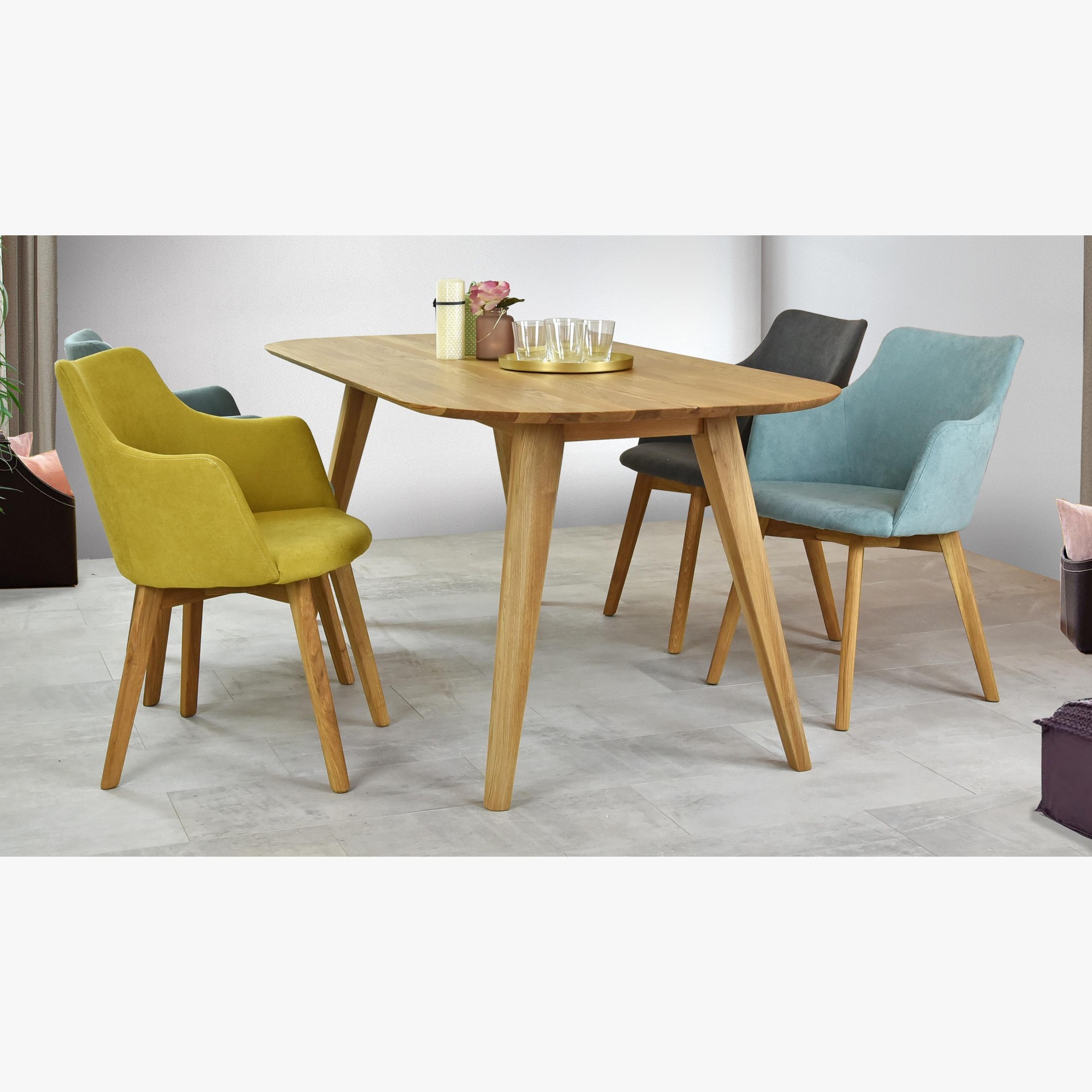 Nádherné kreslo s opierkou s veľmi pohodlným sedením má drevené dubové nohy z masívu. Moderný a elegantný dizajn kresielka je vhodný do moderného interiéru. Kresielko sa dodáva v demonte s jednoduchou montážou, na výber máte niekoľko druhov farieb. Výhodou kresielka je jeho využitie za jedálenským stolom, ale aj ako prídavné sedenie do obývačky či pracovne. Pevné vysoké operadlo je vďaka svojim proporciám mimoriadne pohodlné aj pri dlhom večernom sedení. Krásne kresielko, ktoré ocení každá návšteva. Látka má mimoriadne vysokú odolnosť až 100 000 cyklov.