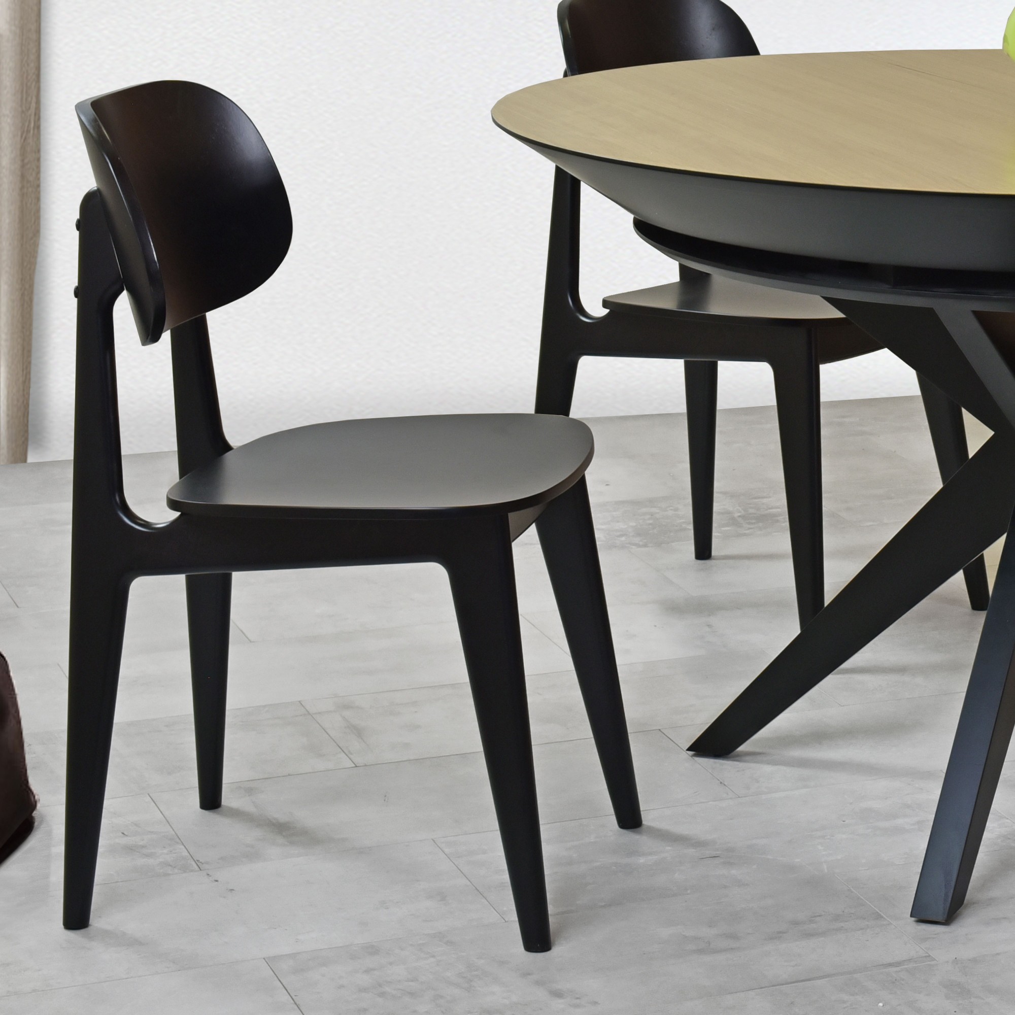 Jedálenská stolička LOLA je skvostom škandinávskeho dizajnu, ktorý spája jednoduchosť, funkčnosť a estetiku. Vyrobená z kvalitného bukového masívu a povrchovo ošetrená čiernym matným lakom, stolička odráža čisté línie a minimalistické kúzlo typické pre severný štýl.