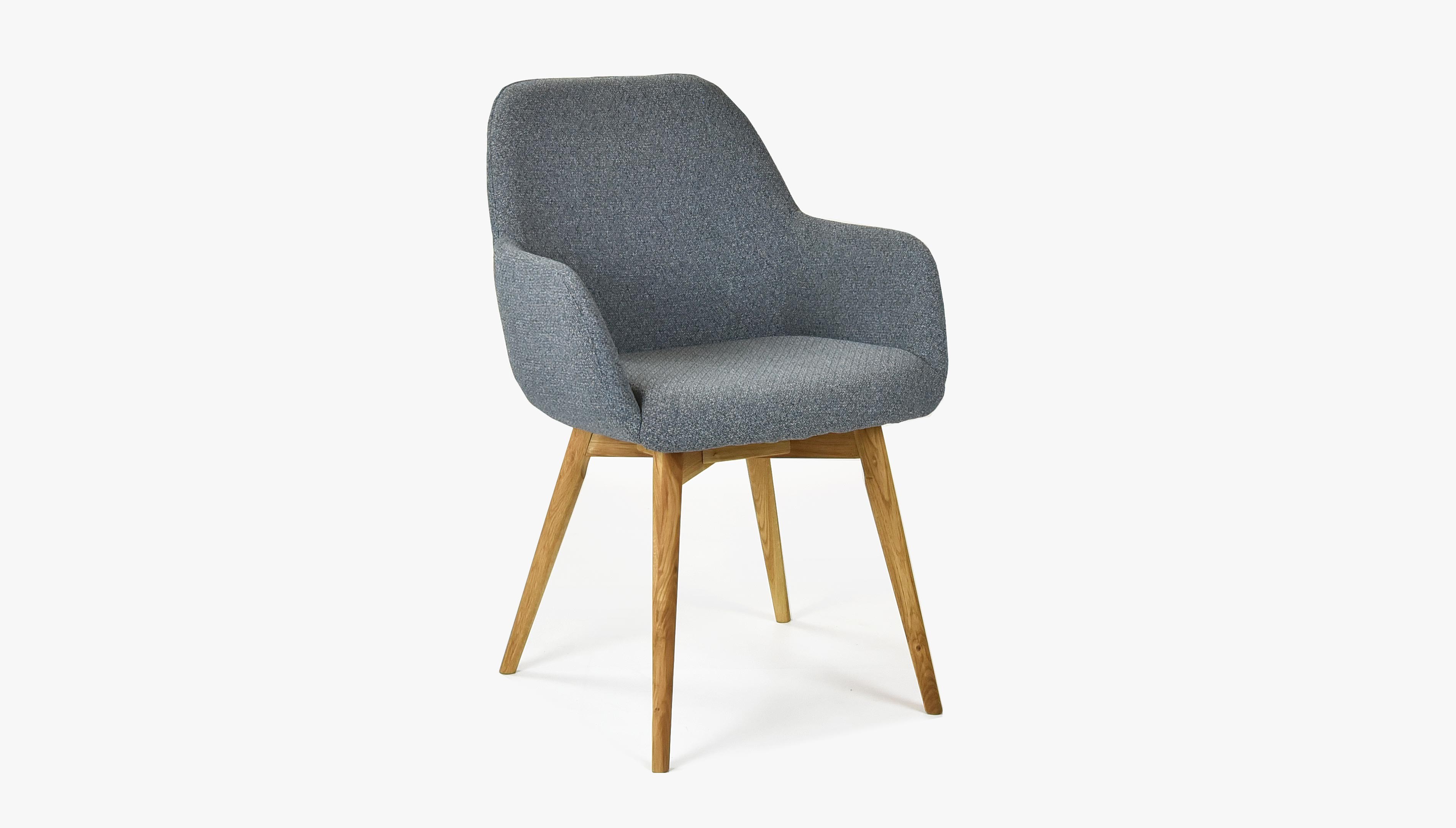 Nádherná nadčasová stolička do jedálne model SKY. Novinka pre rok 2024, kde na výrobu sú použité materiály najvyššej rady. Stolička s podrúčkami je dostupná v dvoch farbách látky. (Svetlo sivá s nádychom modrej a tmavo sivá rovnako s nádychom modrej farby). Látka je veľmi príjemná na dotyk, čistenie je len pomocou vody. Stolička Sky má odporúčanú nosnosť do 110 kg. Nohy na stoličke sú vyrobené z certifikovaného dreva FSC.