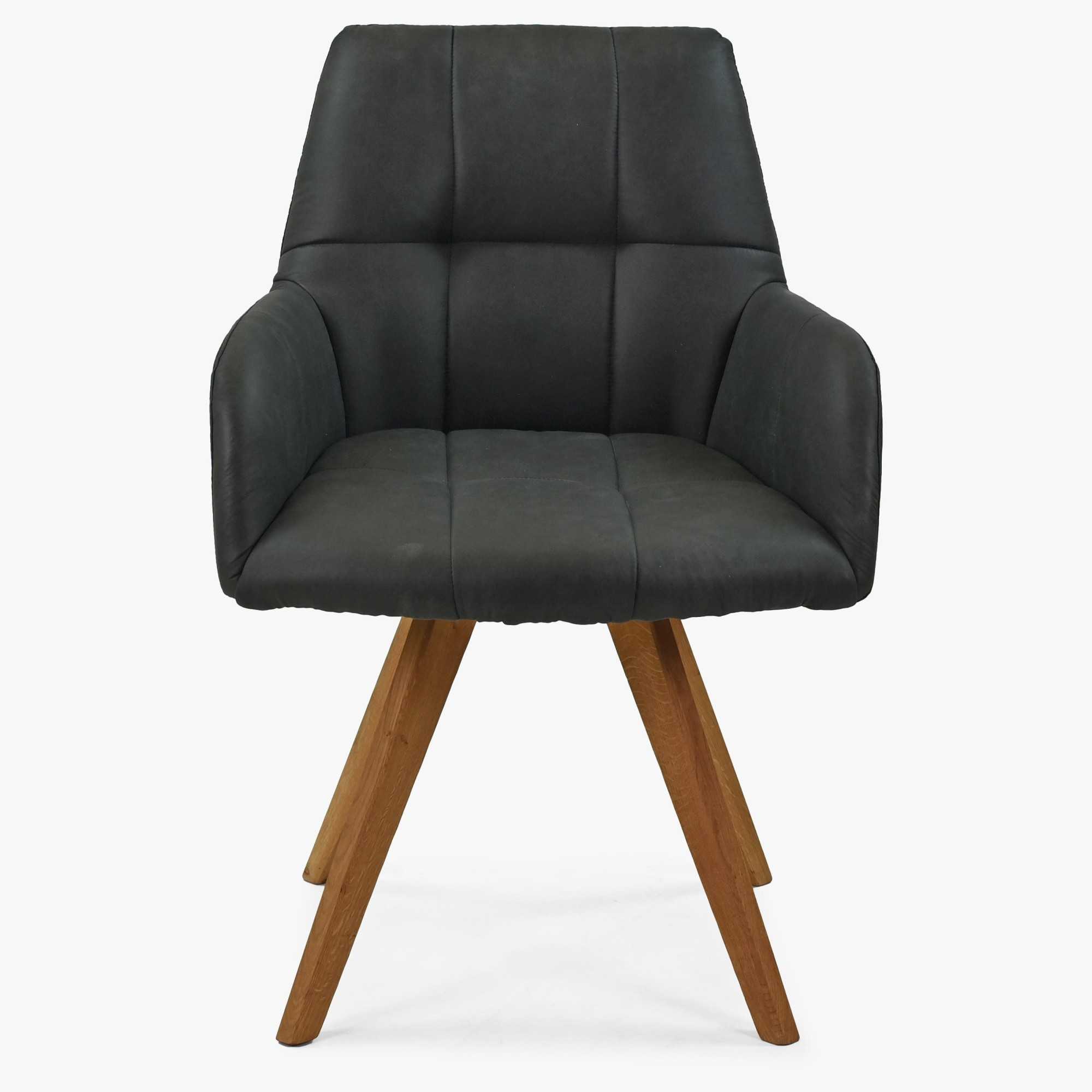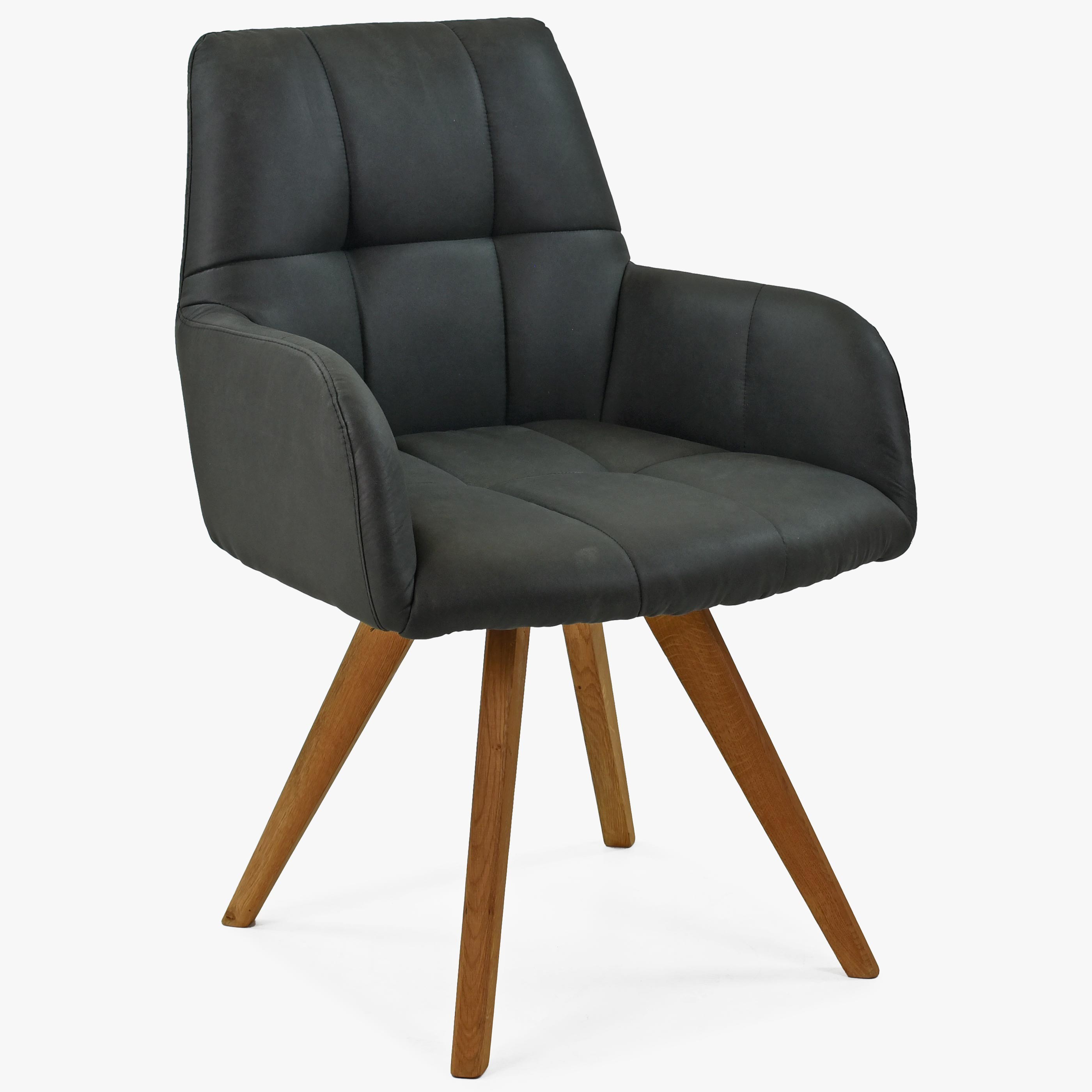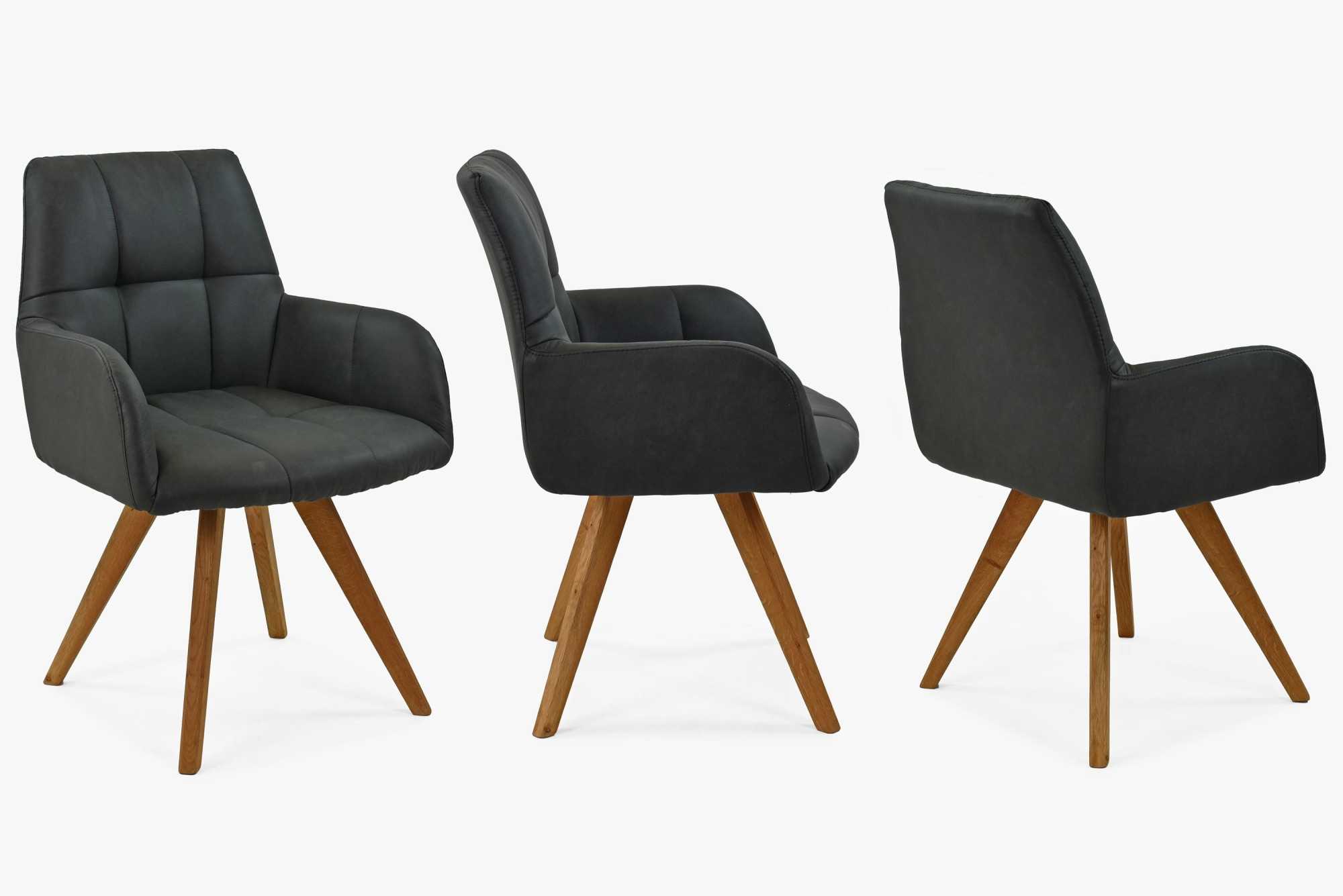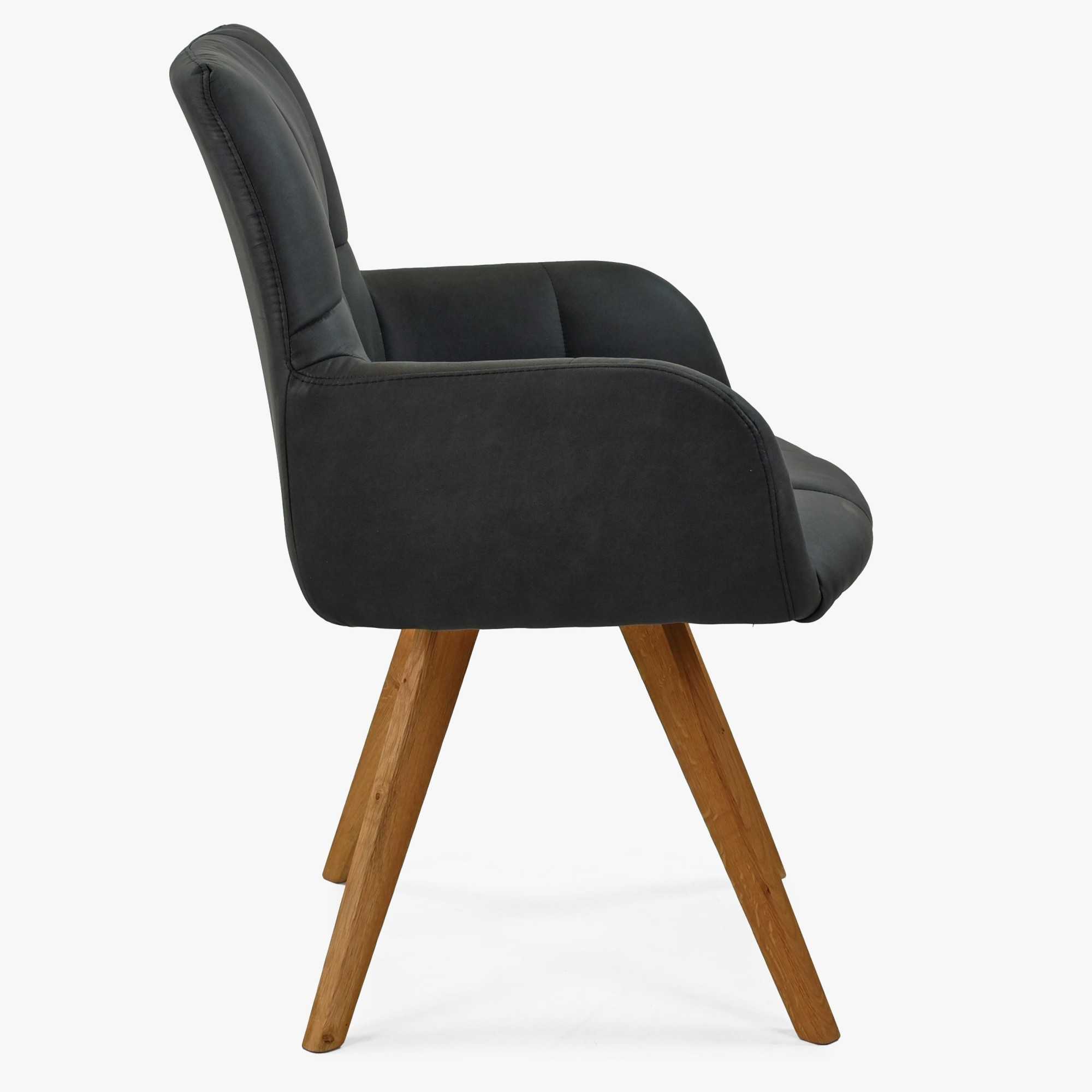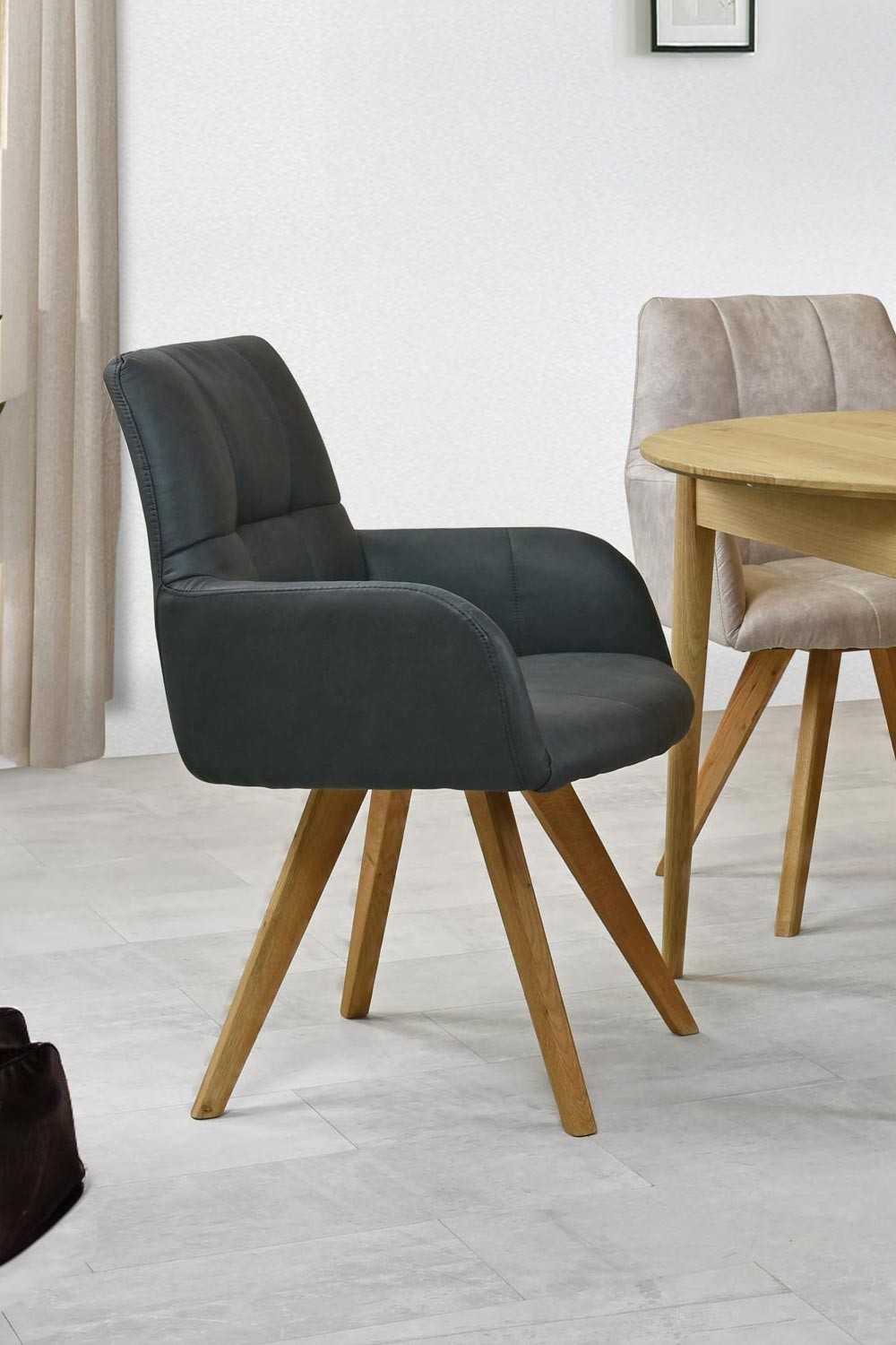 Moderné prešívanie na opierke rúk a sedadle dáva tejto stoličke luxusný vzhľad, ktorý pritiahne každého návštevníka vašej jedálne. Stolička je dodávaná v čiastočnom demonte, čo znamená, že ju môžete ľahko a rýchlo zložiť. Nohy stoličky sú vyrobené z dubového dreva v prirodzenej farbe, čo zvyšuje jej trvácnosť a kvalitu.