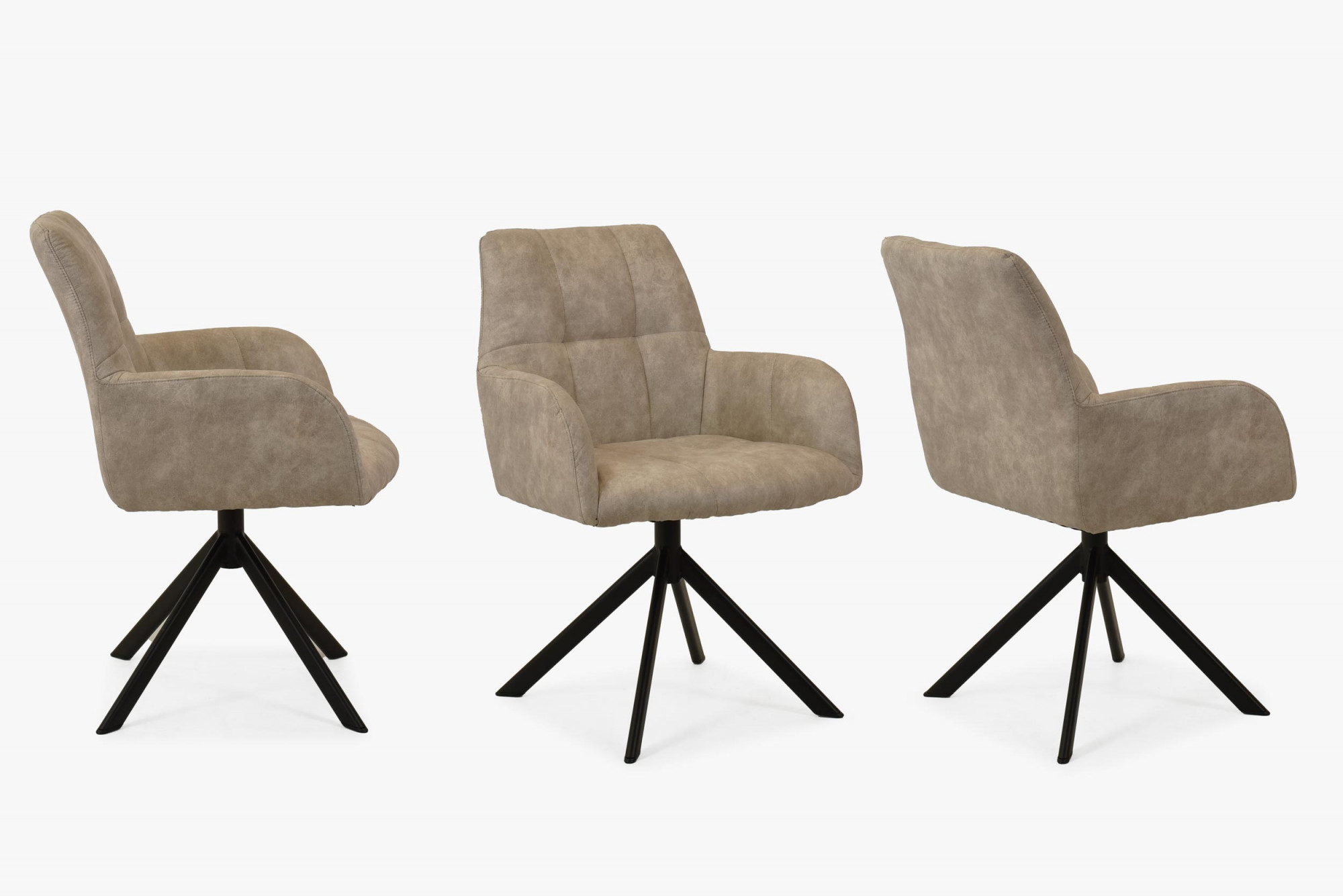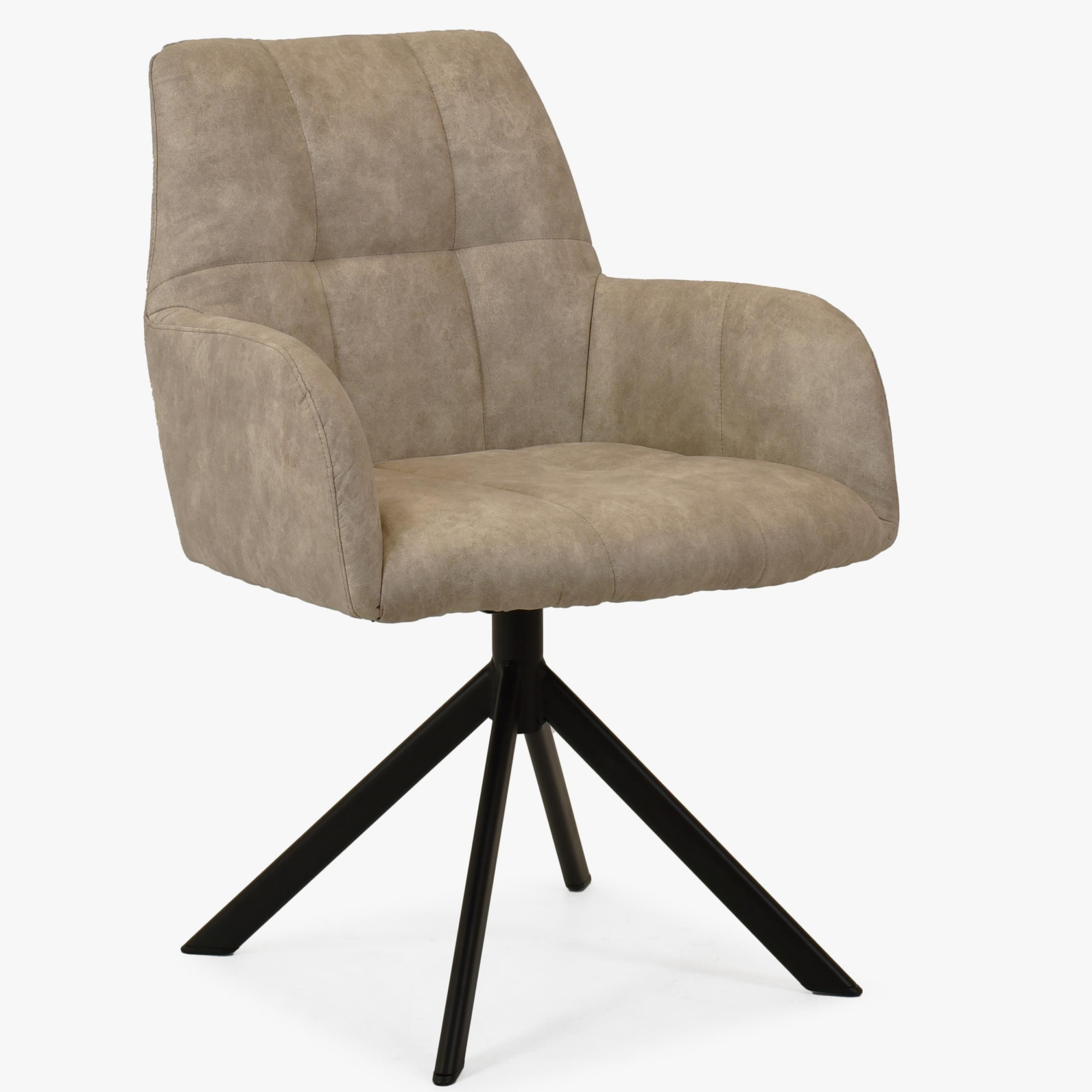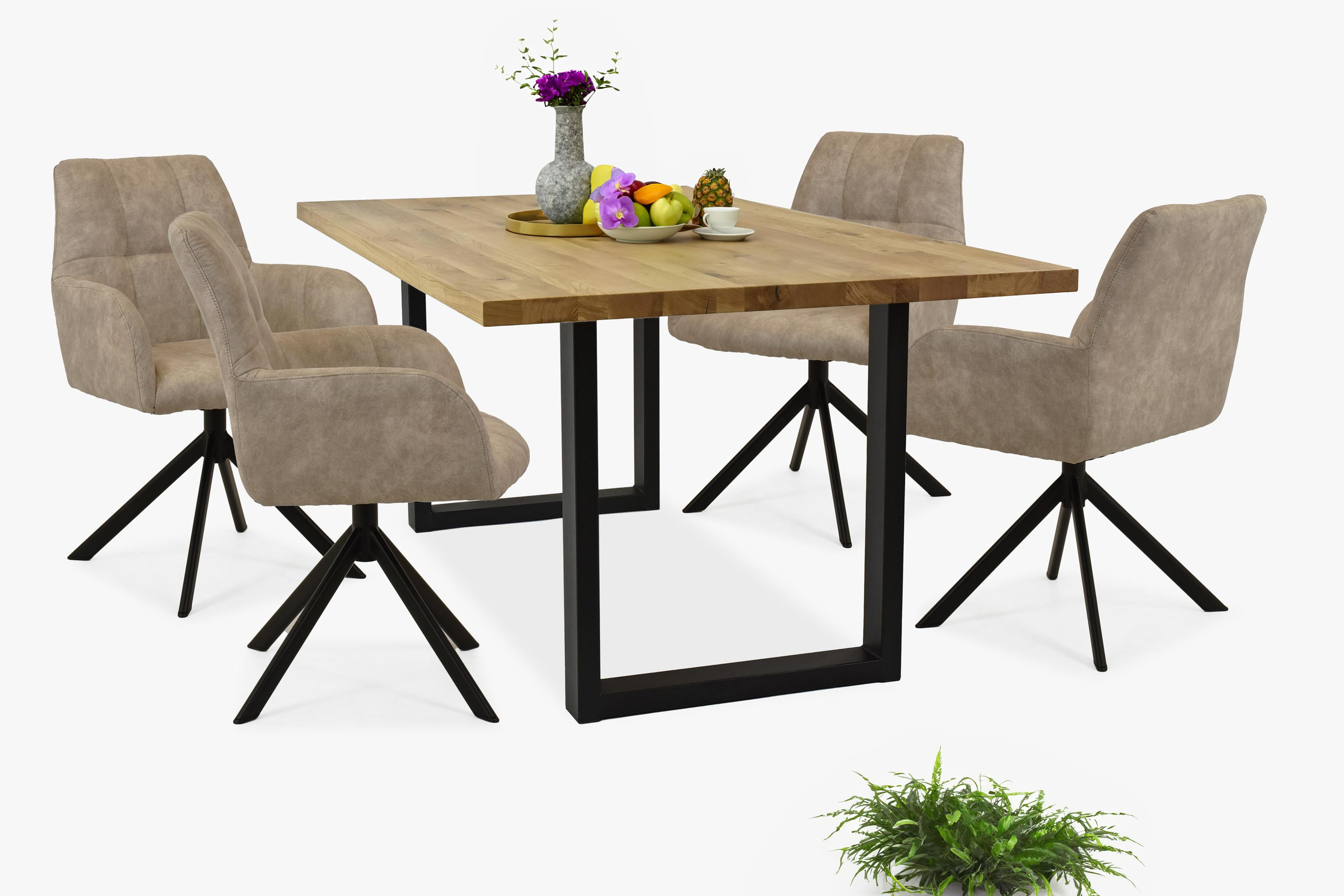 Elegantné a funkčné kreslo, ideálne do moderných domácností, ktoré chcú spojiť štýl a praktičnosť. Toto kreslo s otočným sedákom je perfektným doplnkom pre vašu jedáleň či obývaciu izbu, kde poskytne nielen pohodlie, ale aj šmrnc interiéru. Jeho sedák, potiahnutý atraktívnou sivou látkou, ktorá imituje luxusnú kožu, je navrhnutý pre maximálny komfort a jednoduchú údržbu – stačí jemne navlhčená handrička a neutrálne mydlo. Robustné čierne kovové nohy zabezpečia stabilitu a dlhodobú odolnosť. Navyše vďaka svojej otočnej funkcii umožňuje jednoduchú manipuláciu a variabilitu využitia. Kreslo je dodávané v demonte, ale jeho montáž je veľmi jednoduchá, čo ocení každý zákazník. Vyberať môžete aj variant s nohami z dubového dreva, čo umožňuje dokonalú harmóniu s ďalším nábytkom z tejto prírodnej suroviny. Každý kus je opatrený FSC certifikátom, čo zaručuje ekologickú udržateľnosť použitého materiálu.