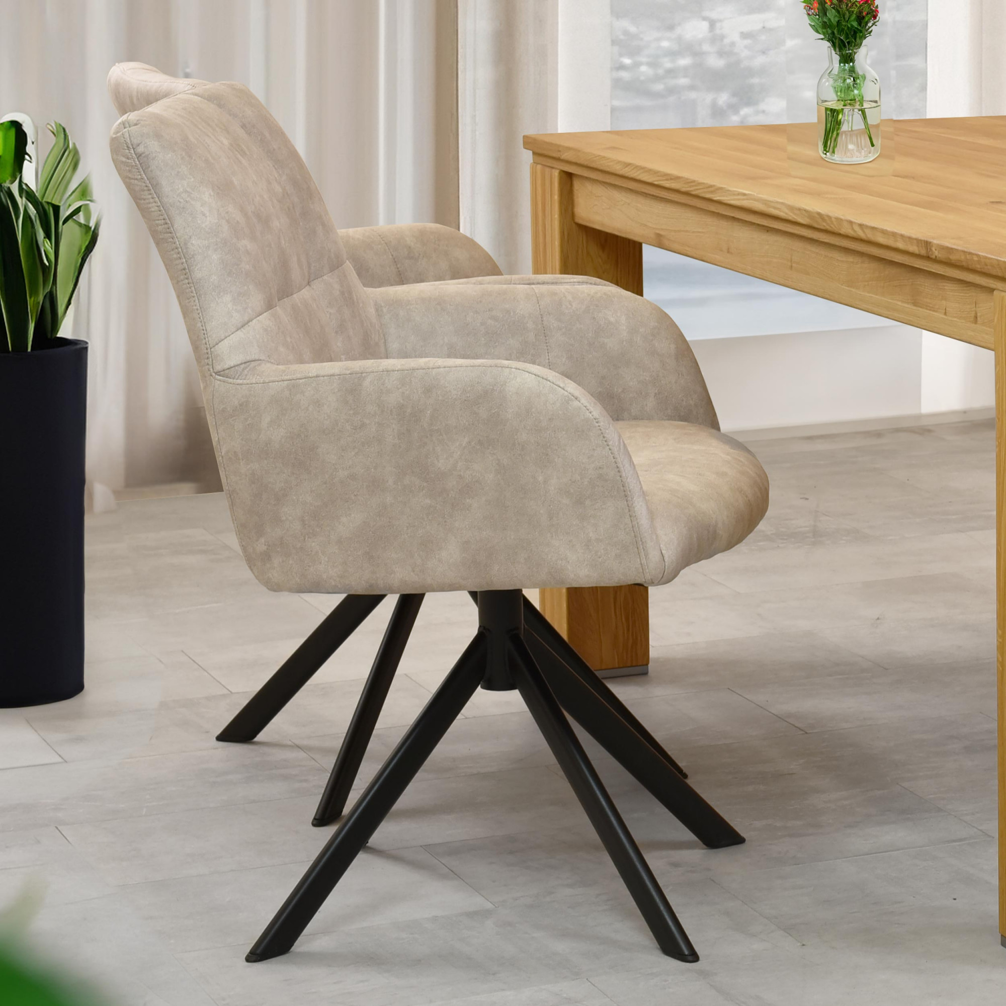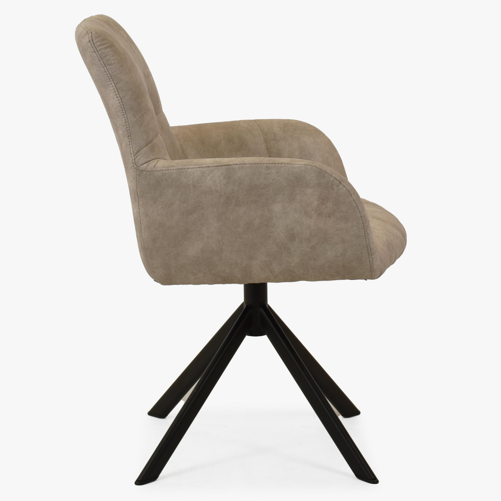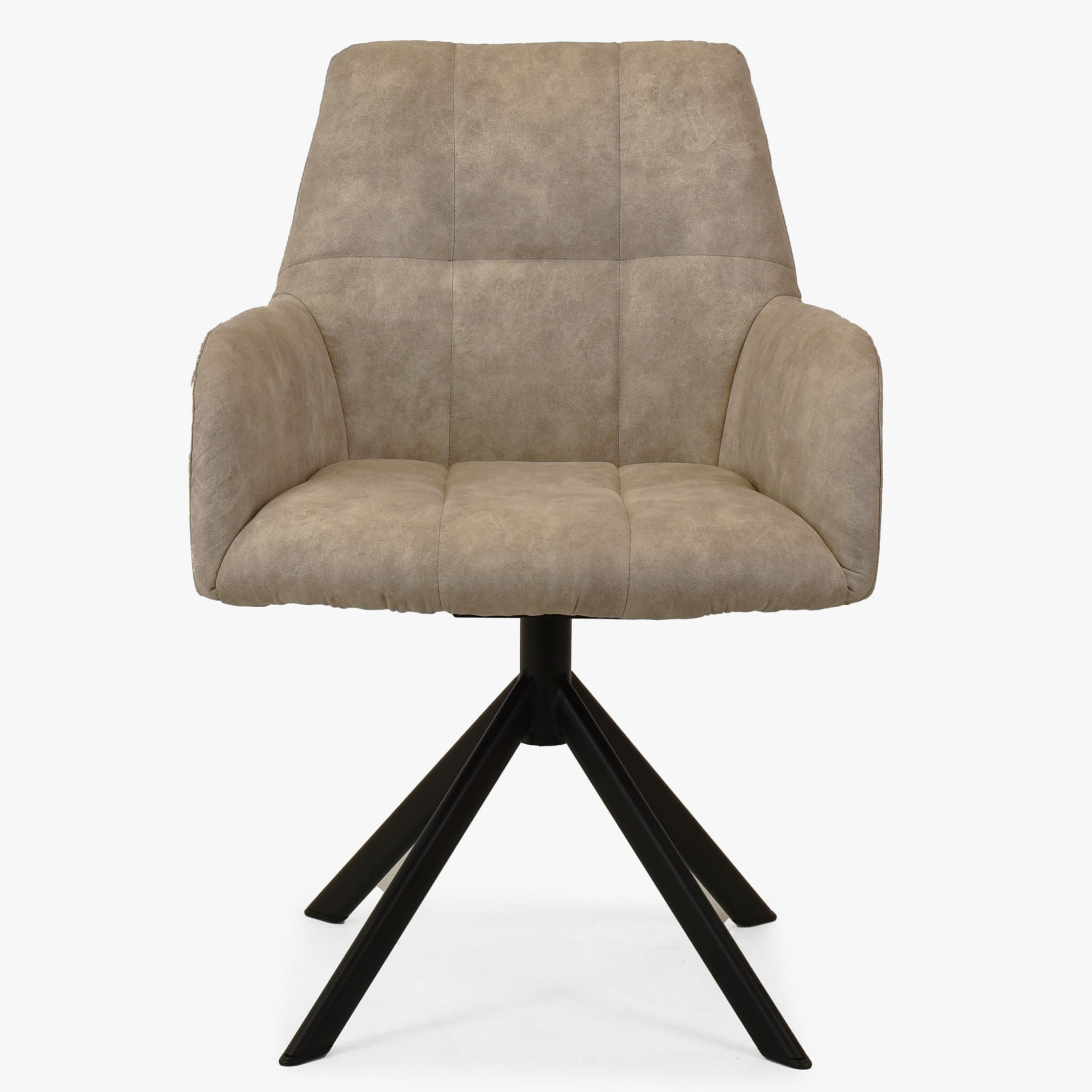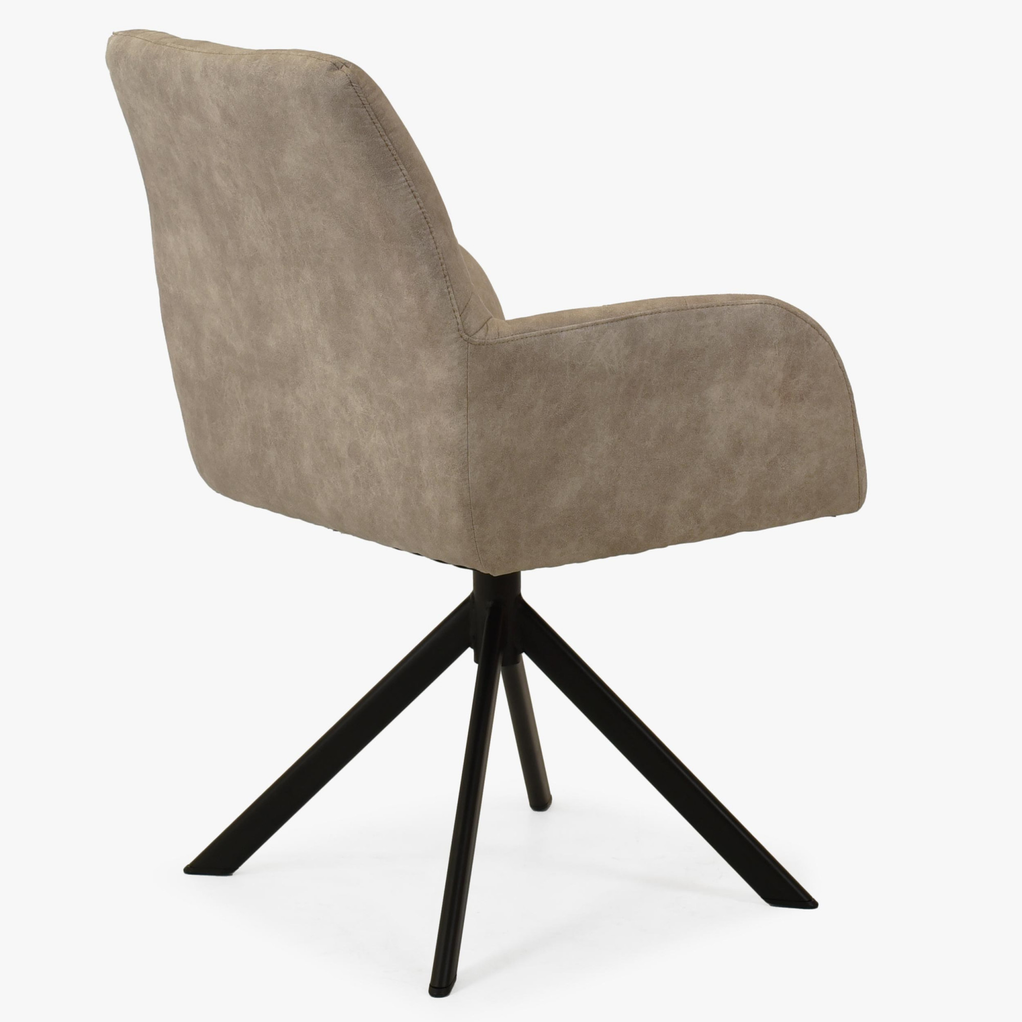 Elegantné a funkčné kreslo, ideálne do moderných domácností, ktoré chcú spojiť štýl a praktičnosť. Toto kreslo s otočným sedákom je perfektným doplnkom pre vašu jedáleň či obývaciu izbu, kde poskytne nielen pohodlie, ale aj šmrnc interiéru. Jeho sedák, potiahnutý atraktívnou sivou látkou, ktorá imituje luxusnú kožu, je navrhnutý pre maximálny komfort a jednoduchú údržbu – stačí jemne navlhčená handrička a neutrálne mydlo. Robustné čierne kovové nohy zabezpečia stabilitu a dlhodobú odolnosť. Navyše vďaka svojej otočnej funkcii umožňuje jednoduchú manipuláciu a variabilitu využitia. Kreslo je dodávané v demonte, ale jeho montáž je veľmi jednoduchá, čo ocení každý zákazník. Vyberať môžete aj variant s nohami z dubového dreva, čo umožňuje dokonalú harmóniu s ďalším nábytkom z tejto prírodnej suroviny. Každý kus je opatrený FSC certifikátom, čo zaručuje ekologickú udržateľnosť použitého materiálu.