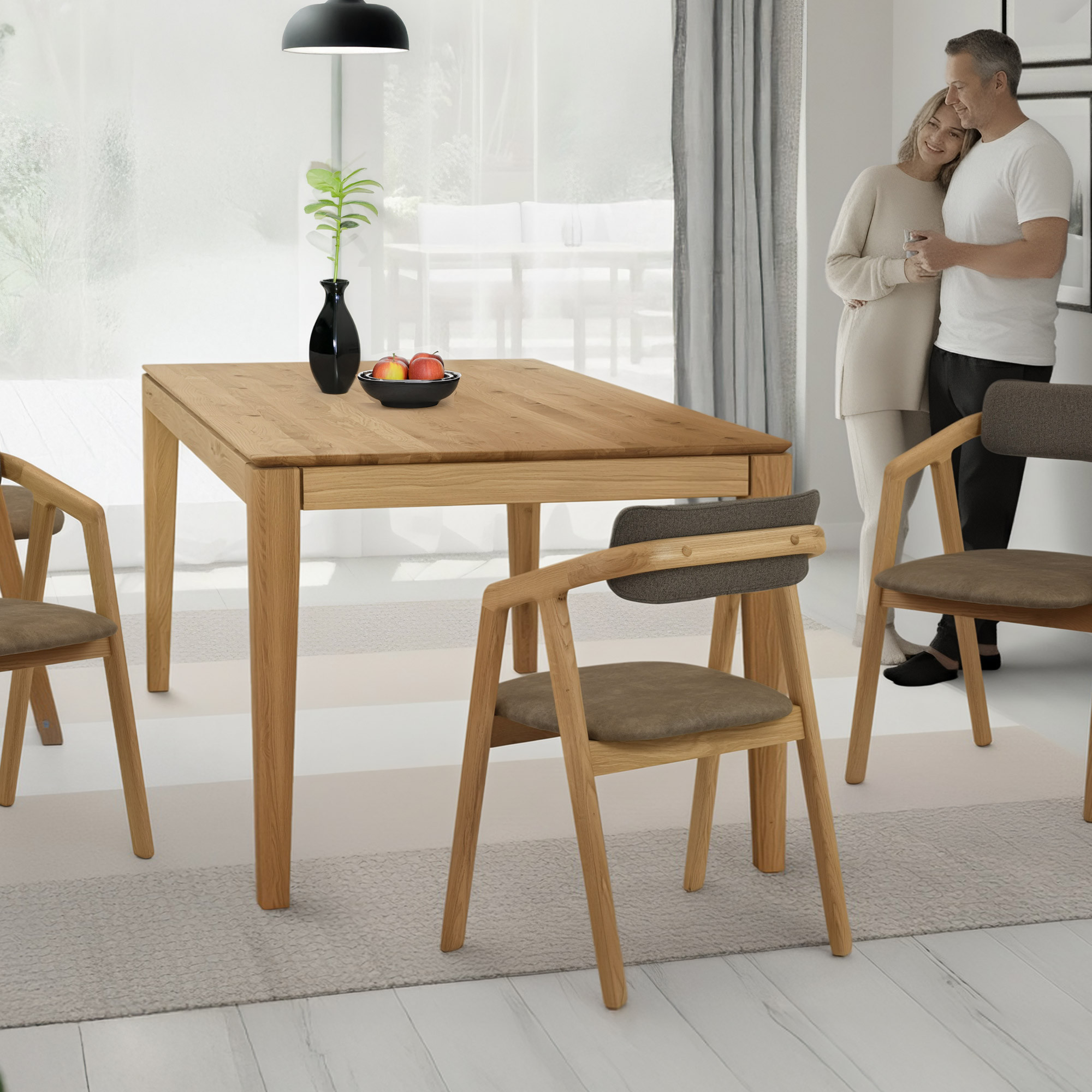 Každý kus je vyrobený z dubu s FSC® certifikáciou, takže podporuje udržateľné lesné hospodárenie. Mimoriadny komfort zabezpečuje jemne polstrovaný sedák a správny uhol operadla, vďaka čomu pri stole vydržíte sedieť celé hodiny. Stolička sa dodáva úplne zmontovaná, stačí ju vybrať z krabice a postaviť ku stolu. Jednotný odtieň dubu umožňuje jednoduché kombinovanie s ďalším dubovým nábytkom z našej kolekcie, takže vytvoríte harmonickú jedálenskú alebo pracovnú zónu bez kompromisov. Odporúčané zaťaženie je do 110 kg.