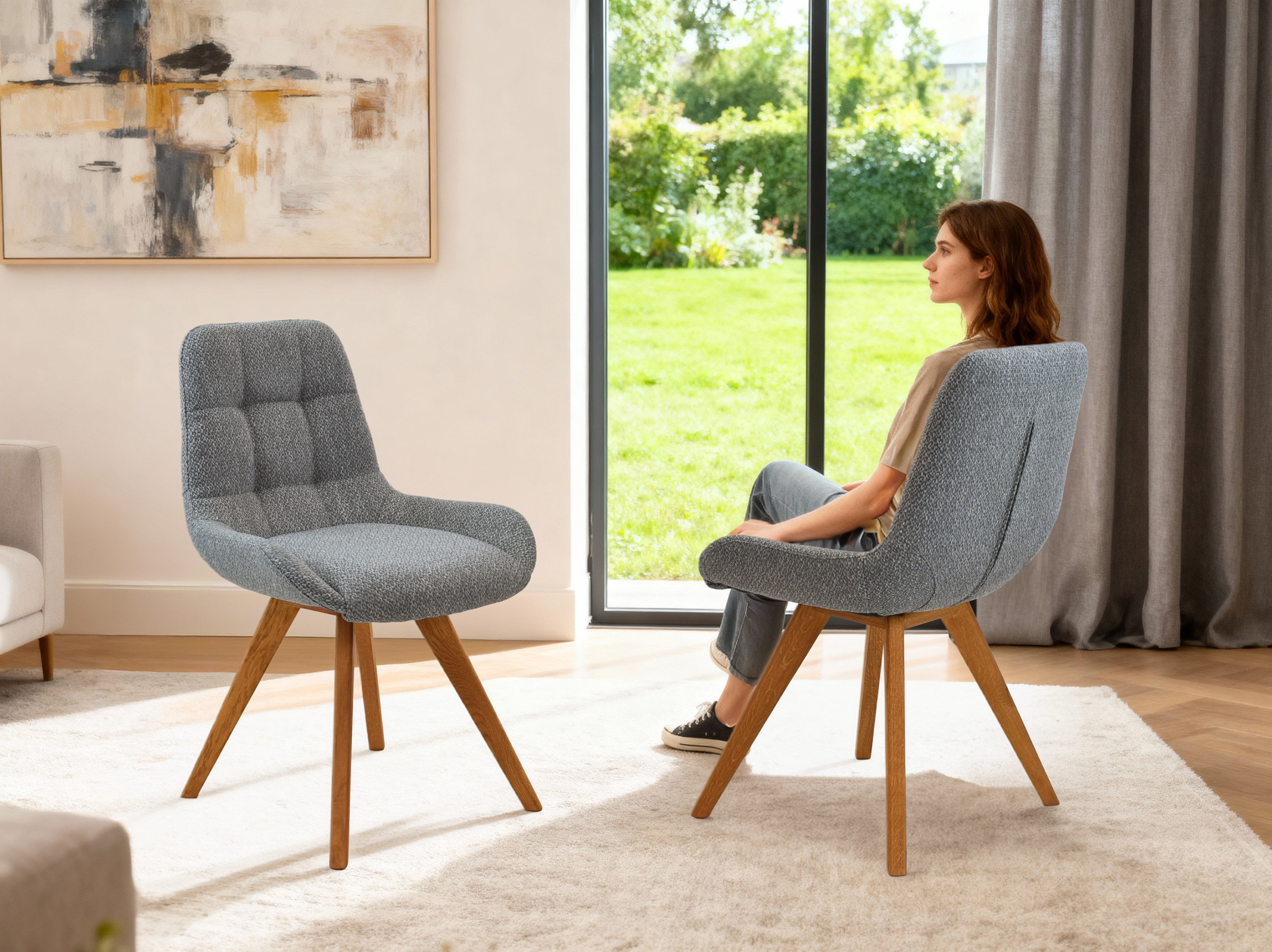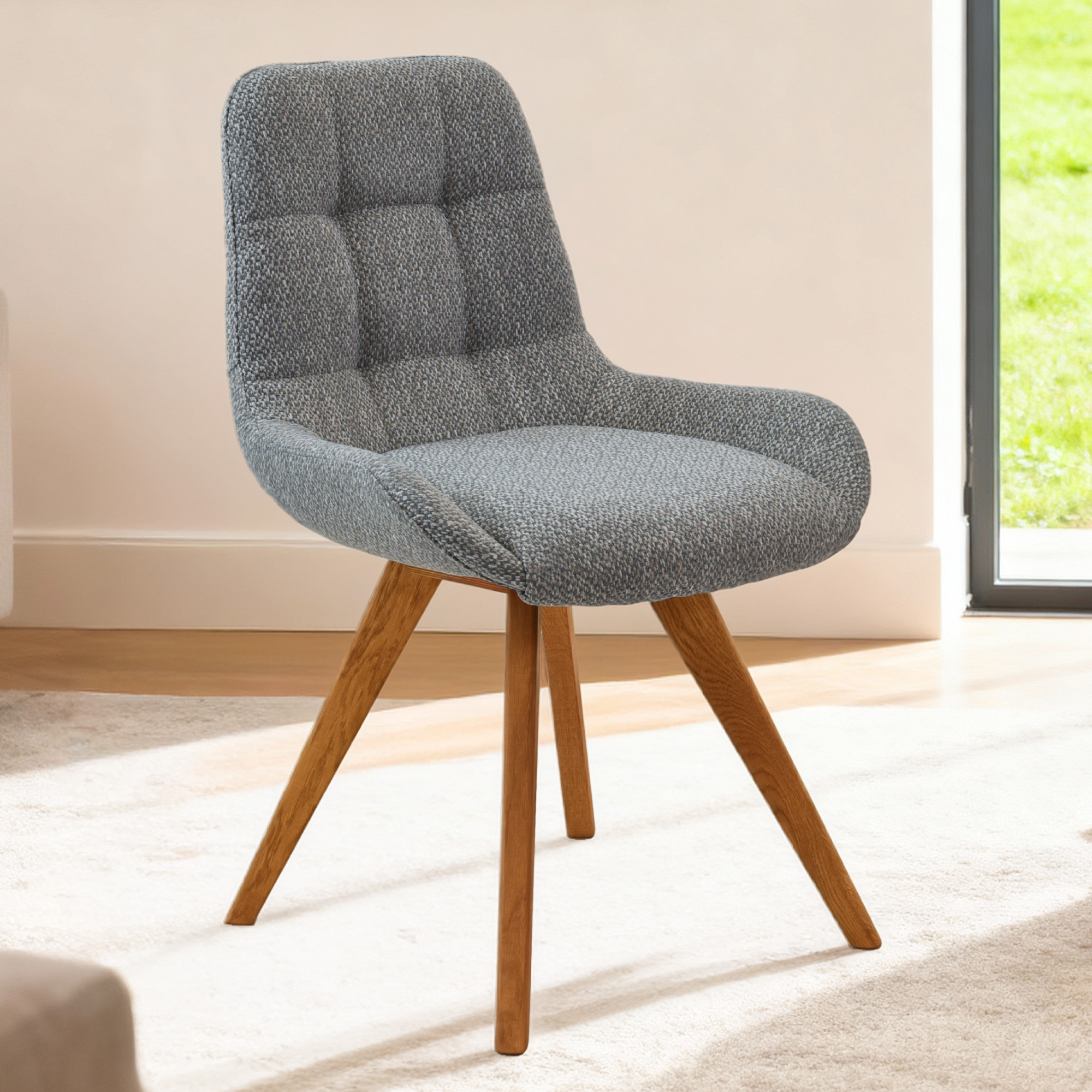 Dubová stolička Temza s modro sivým čalúnením je perfektnou voľbou pre každú domácnosť, ktorá hľadá kvalitný nábytok z prírodného dreva s vysokým komfortom sedenia. Táto stolička zaujme svojím moderným dizajnom a elegantným vzhľadom, ktorý skvele zapadne do rôznych interiérov. Stolička je dostupná v niekoľkých farbách čalúnenia – , čo vám umožňuje vybrať si tú správnu variantu pre váš domov. Moderné prešívanie na operadle dodáva stoličke sofistikovaný a súčasný vzhľad, zatiaľ čo podporné boky na sedacej časti zaisťujú vysoký komfort sedenia.