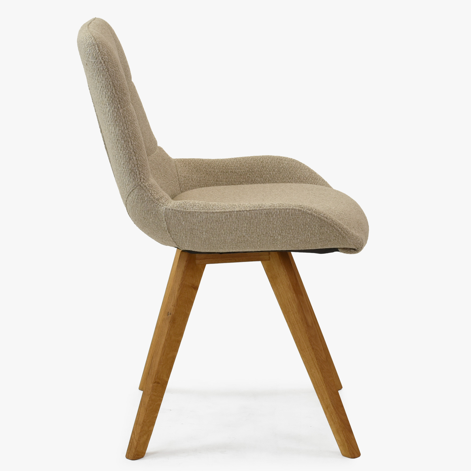 Konštrukcia tejto stoličky je vyrobená z masívneho dubového dreva, čo zaručuje jej dlhú životnosť a pevnosť. Dubové drevo použité pri výrobe tejto stoličky je FSC certifikované, čo znamená, že pochádza z zodpovedne spravovaných lesov a prispieva k ochrane životného prostredia. Látka použitá na čalúnenie je typu easy clean vid. viac info video, čo ju robí mimoriadne príjemnou na dotyk. Plyšová látka je nielen esteticky príťažlivá, ale aj jednoducho udržiavateľná a odolná proti opotrebovaniu.