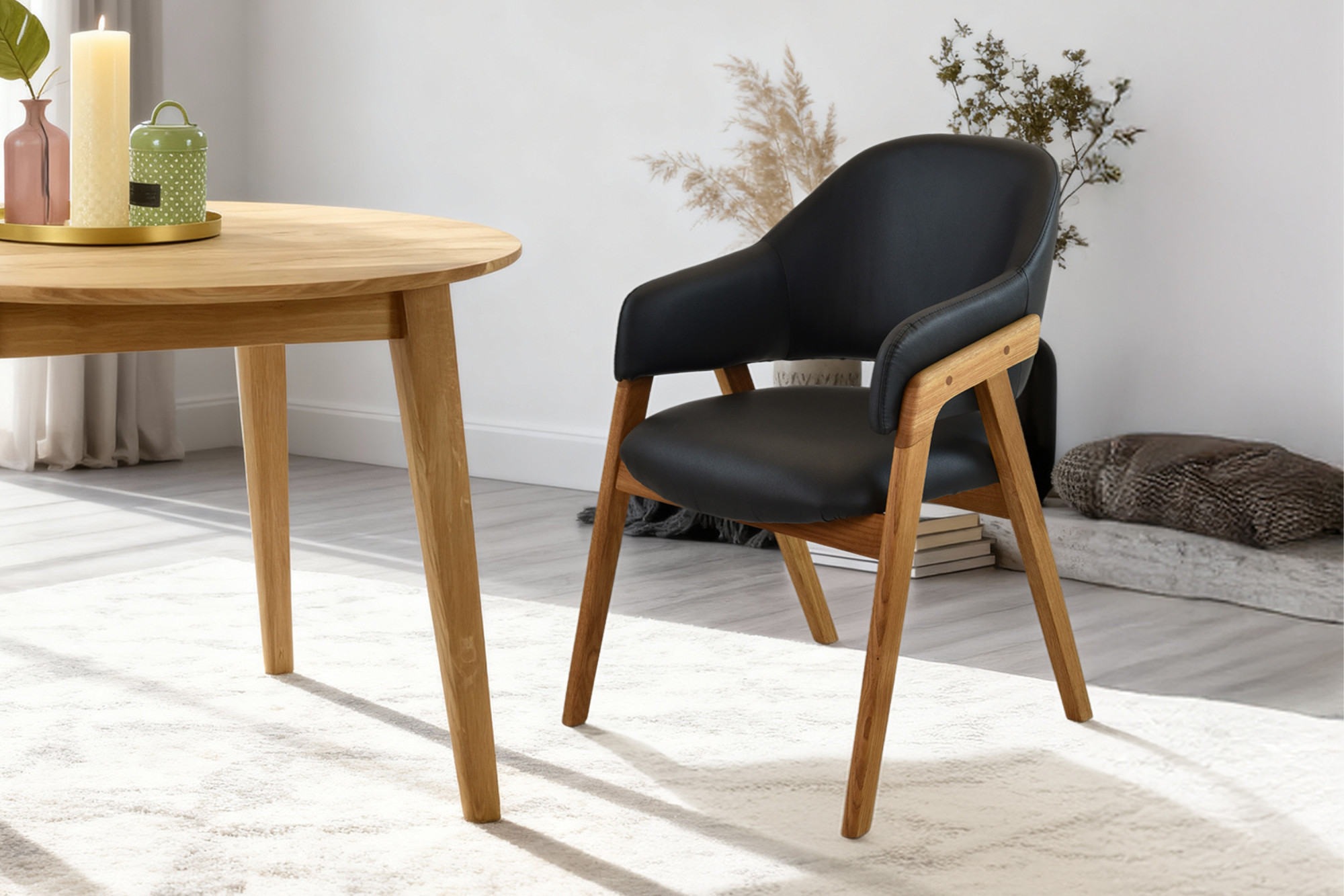 Keď investujete do nábytku pre svoj domov, chcete mať istotu, že získavate kvalitu, ktorá vydrží. Naša dubová stolička s područkami nie je len estetickým prvkom vášho interiéru – je to investícia do pohodlia a štýlu na dlhé roky dopredu. Kombinácia masívneho dubového dreva s prémiovým čalúnením z vegánskej kože vám prináša to najlepšie z oboch svetov: prirodzený vzhľad a hmatovú kvalitu dreva spolu s luxusným komfortom mäkkého čalúnenia.