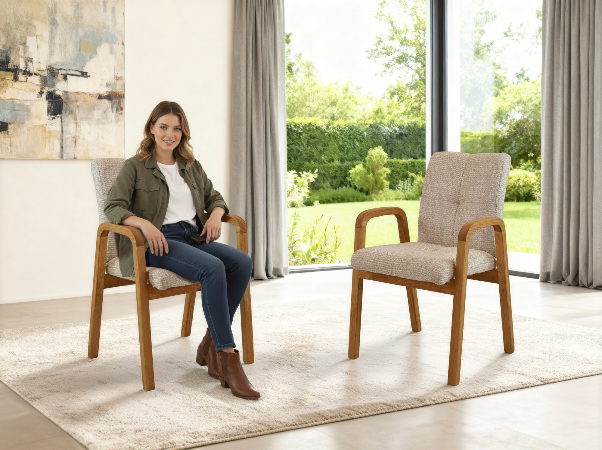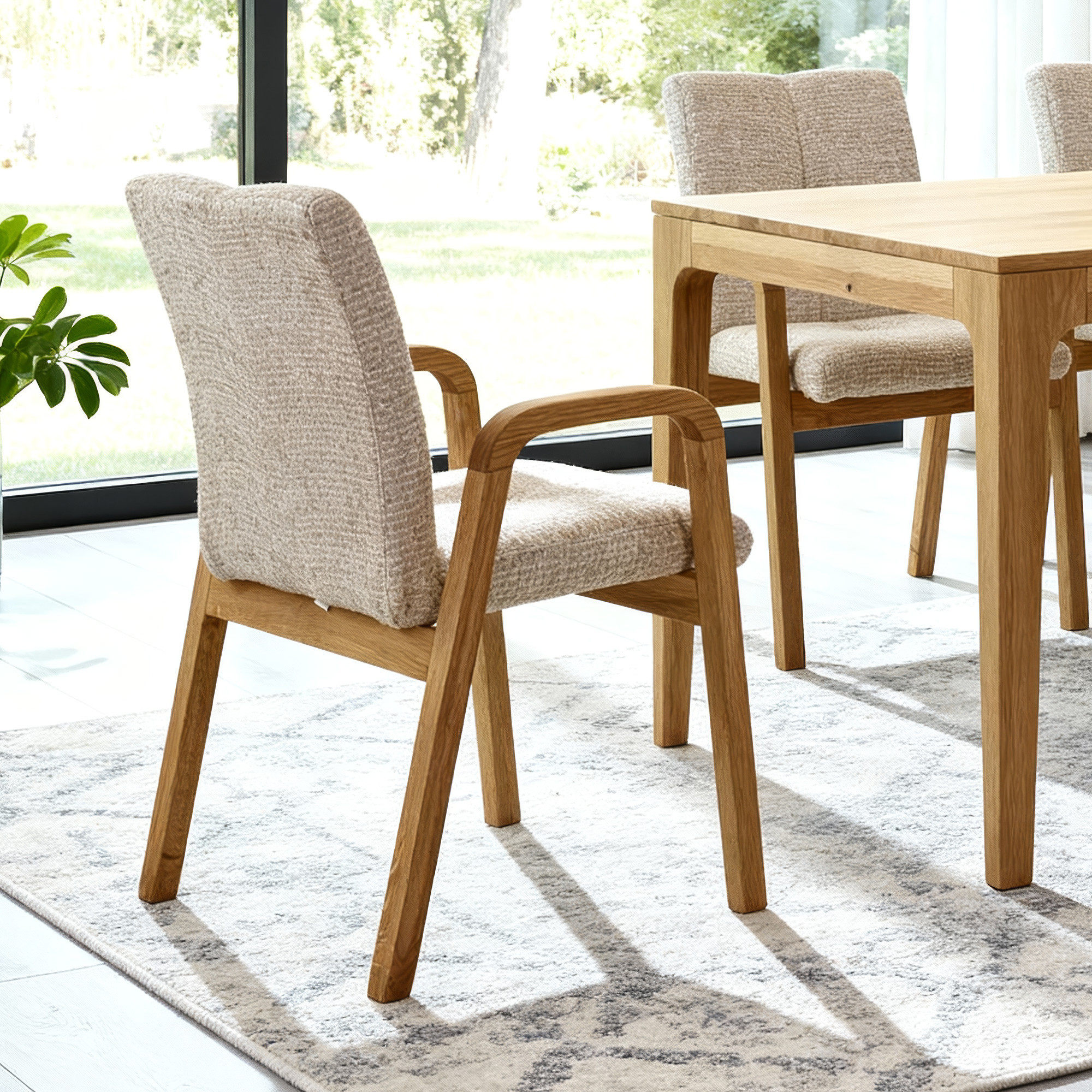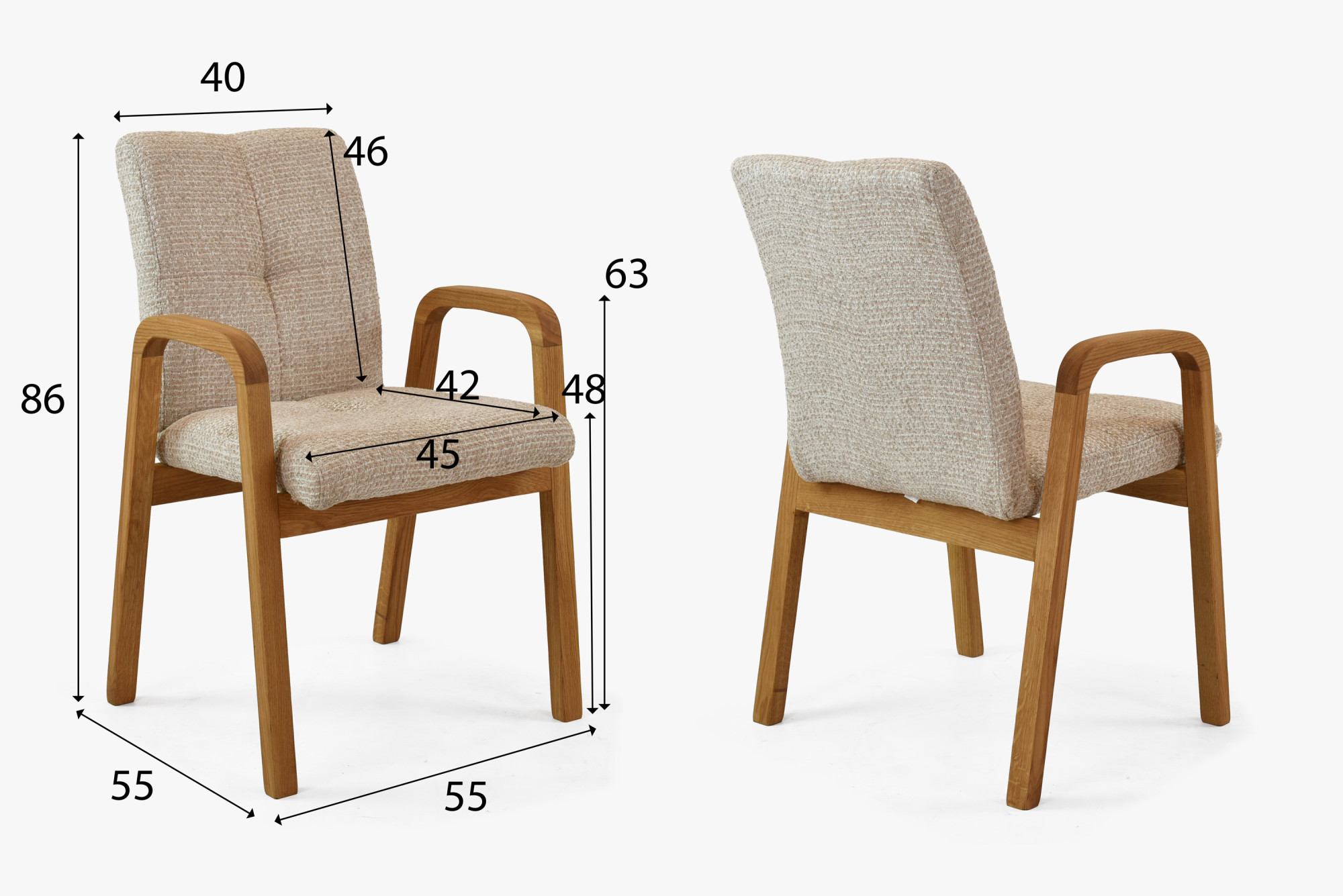 Dubová stolička s područkami Ori - Čalúnená jedálenská stolička z masívu