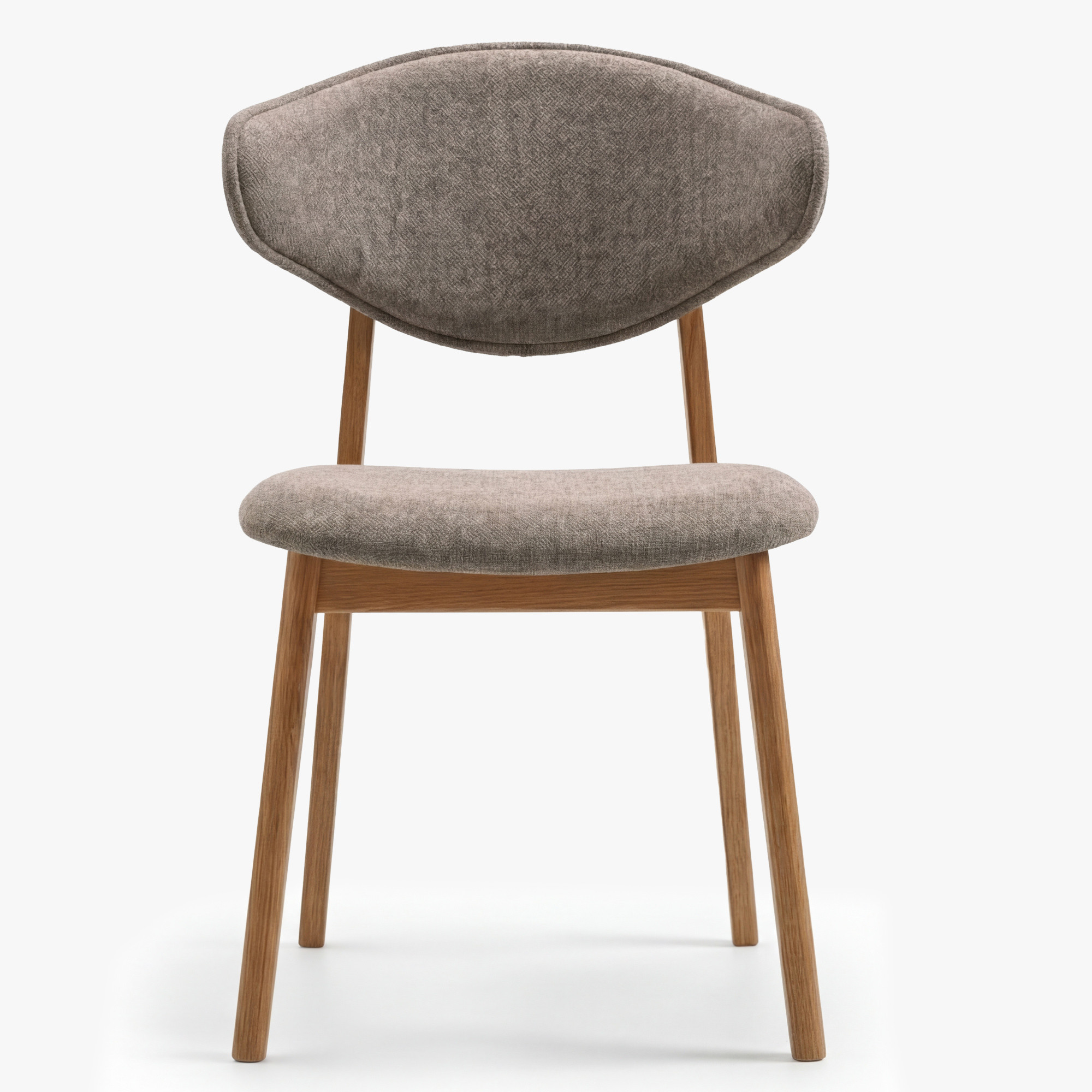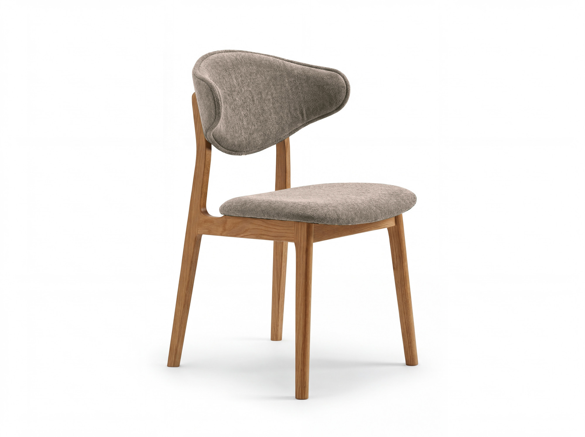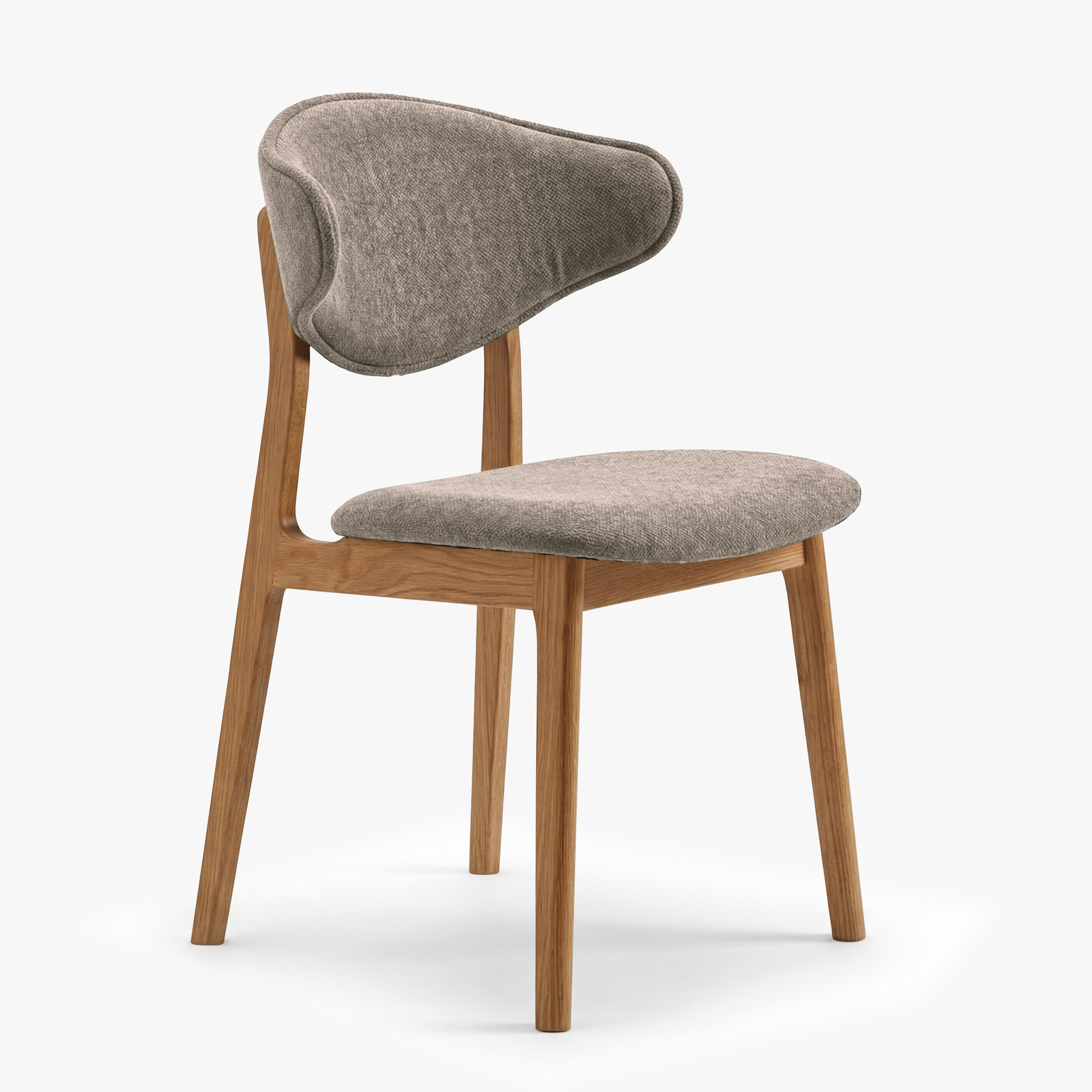 Čalúnená jedálenská stolička s dubovými nohami – farba taupe