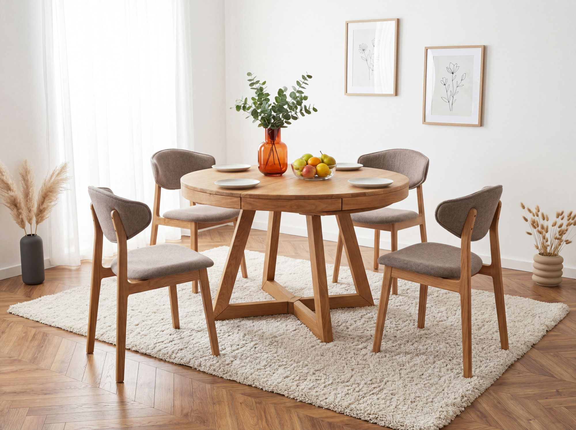 Nosnú konštrukciu tvorí masívne dubové drevo ošetrené prírodným olejom, ktorý chráni povrch a zvýrazňuje prirodzenú kresbu dubu. Štíhle, jemne sa zužujúce nohy dodávajú stoličke vzdušný škandinávsky charakter, hoci konštrukcia je mimoriadne stabilná a robustná. Stolička je dodávaná už kompletne zložená, takže ju hneď po doručení môžete začať používať. Hmotnosť iba 7 kg uľahčuje manipuláciu a presun po miestnosti. Valentína sa skvelo hodí k masívnym dubovým jedálenským stolom aj do moderných interiérov s dôrazom na prírodné materiály.
