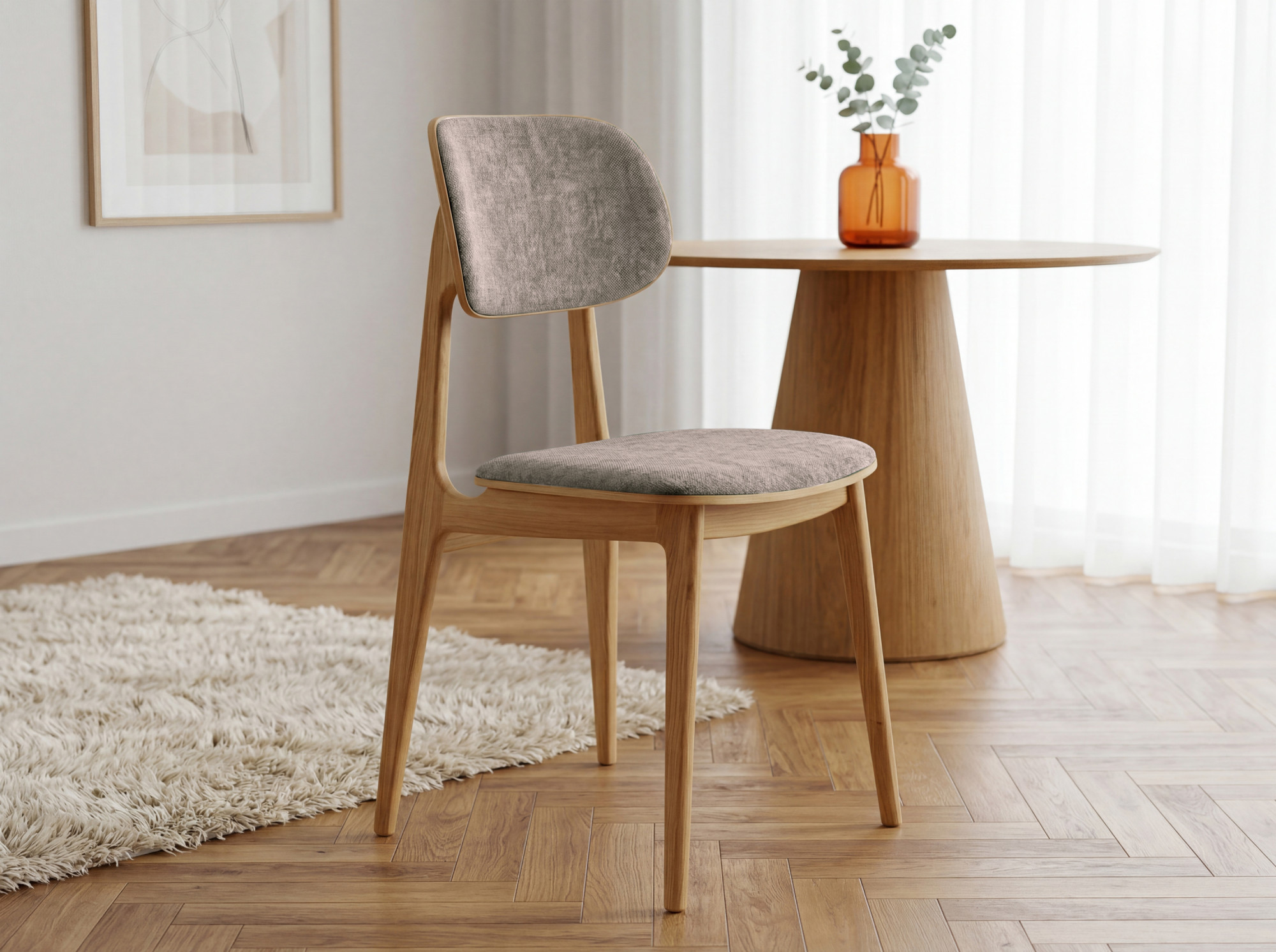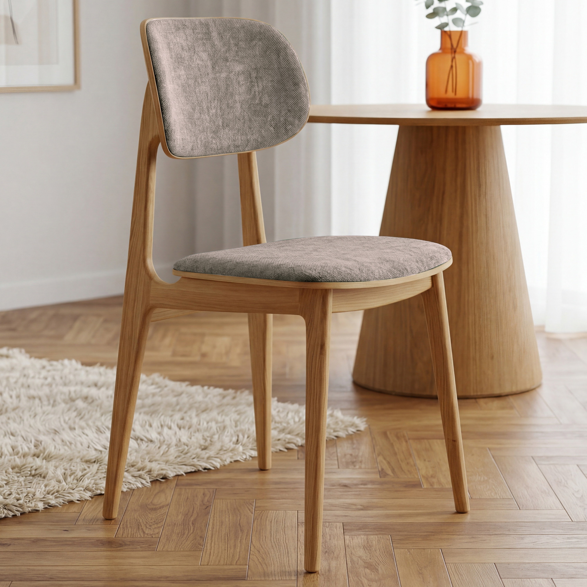 Čalúnená jedálenská stolička Vard z masívneho dubu – sivohnedá látka taupe