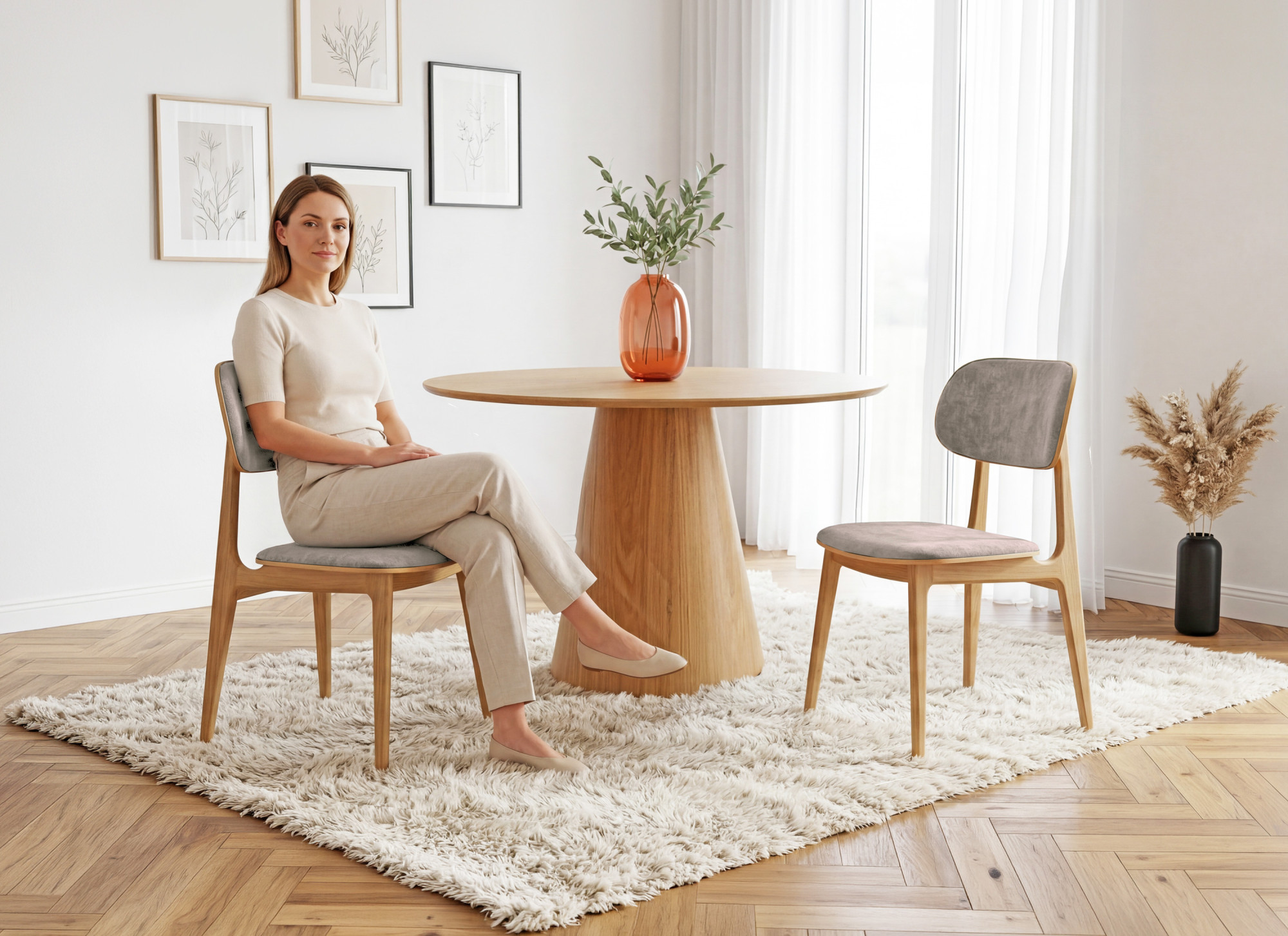 Áno, dubová stolička Vard skvelo ladí s ďalším dubovým nábytkom – jedálenskými stolmi, komodami i regálmi. Šedo-hnedý odtieň taupe je univerzálny a ľahko sa kombinuje s množstvom interiérových štýlov.