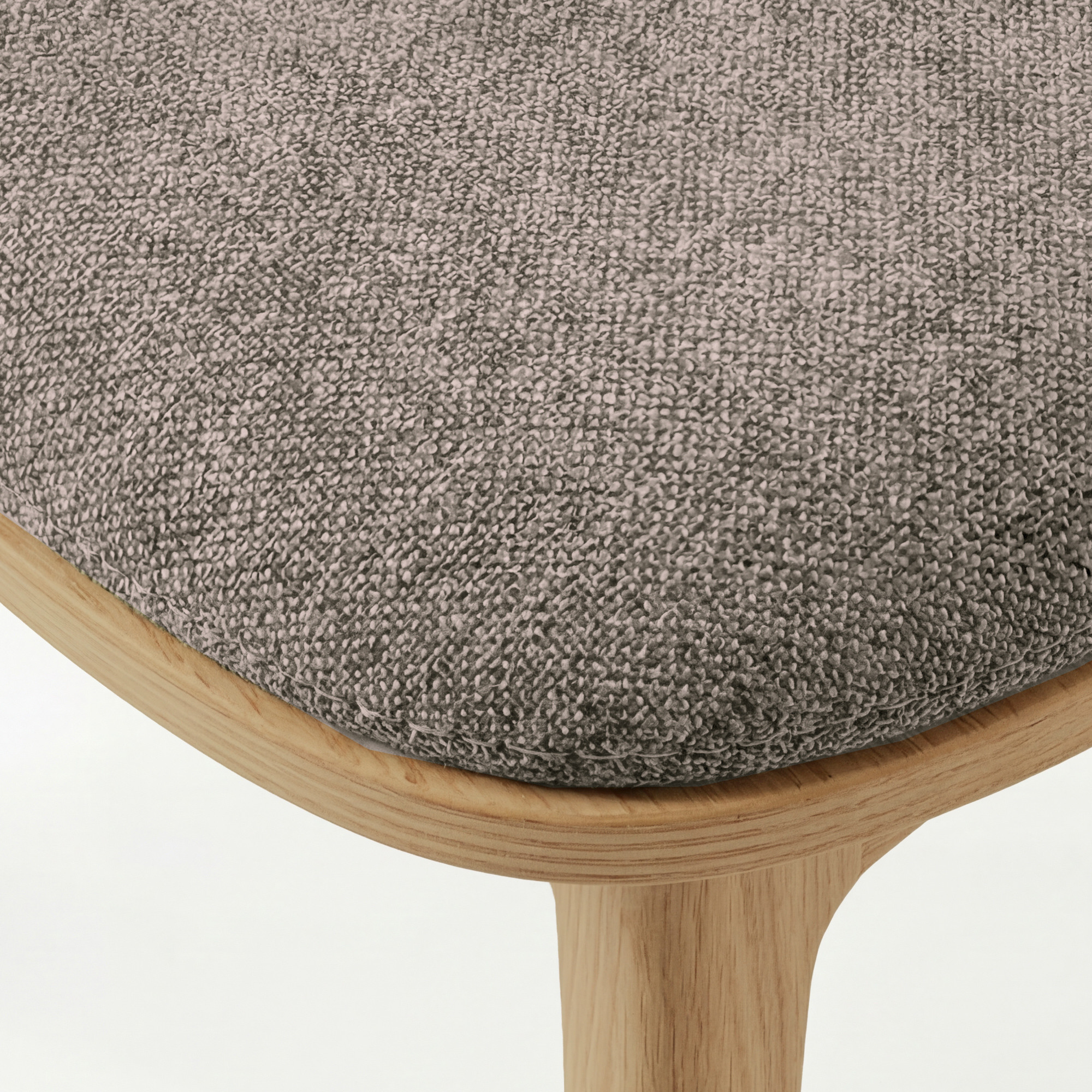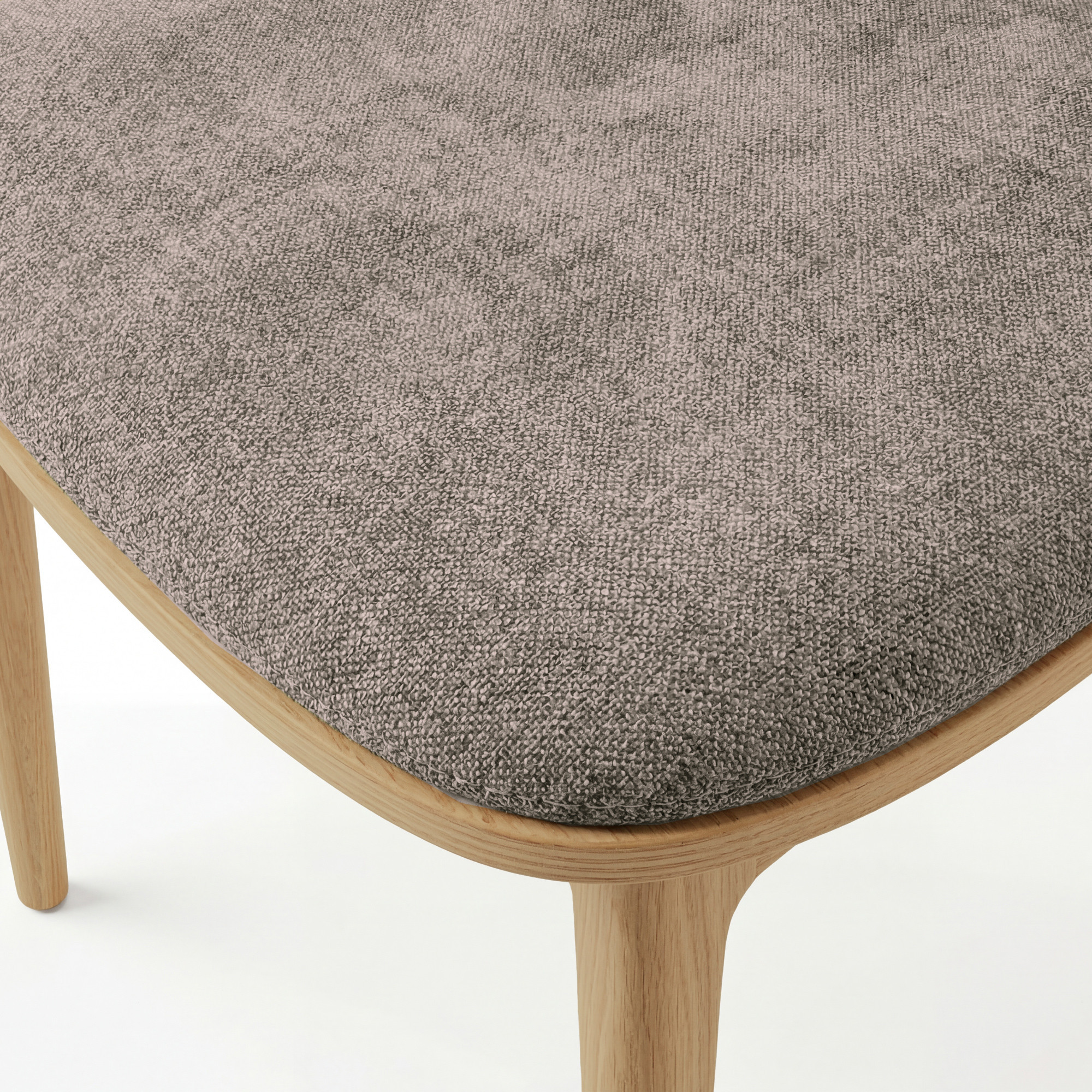 Čalúnená jedálenská stolička Vard z masívneho dubu – šedo-hnedá látka taupe