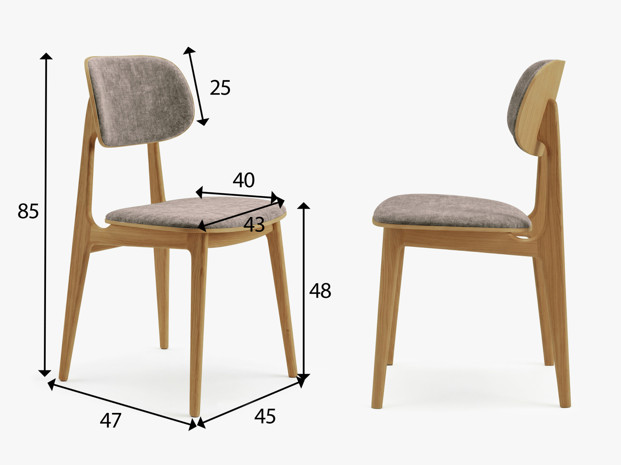 Konštrukcia stoličky je precízne spracovaná z celomasívneho dubu s olejovanou povrchovou úpravou, ktorá zvýrazňuje prirodzenú kresbu dreva a príjemne hreje na dotyk. Ergonomicky tvarované operadlo zabezpečuje pohodlné sedenie aj pri dlhšom posedávaní pri stole. Stolička je dodávaná kompletne zmontovaná, takže ju ihneď po doručení môžete začať používať. Vďaka kompaktným rozmerom a nízkej hmotnosti je jednoduché ju presúvať podľa potreby.