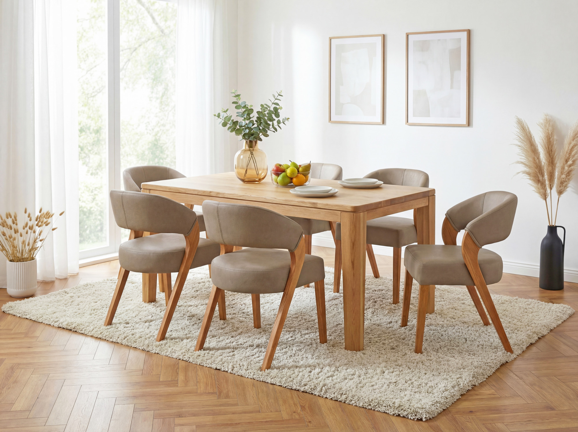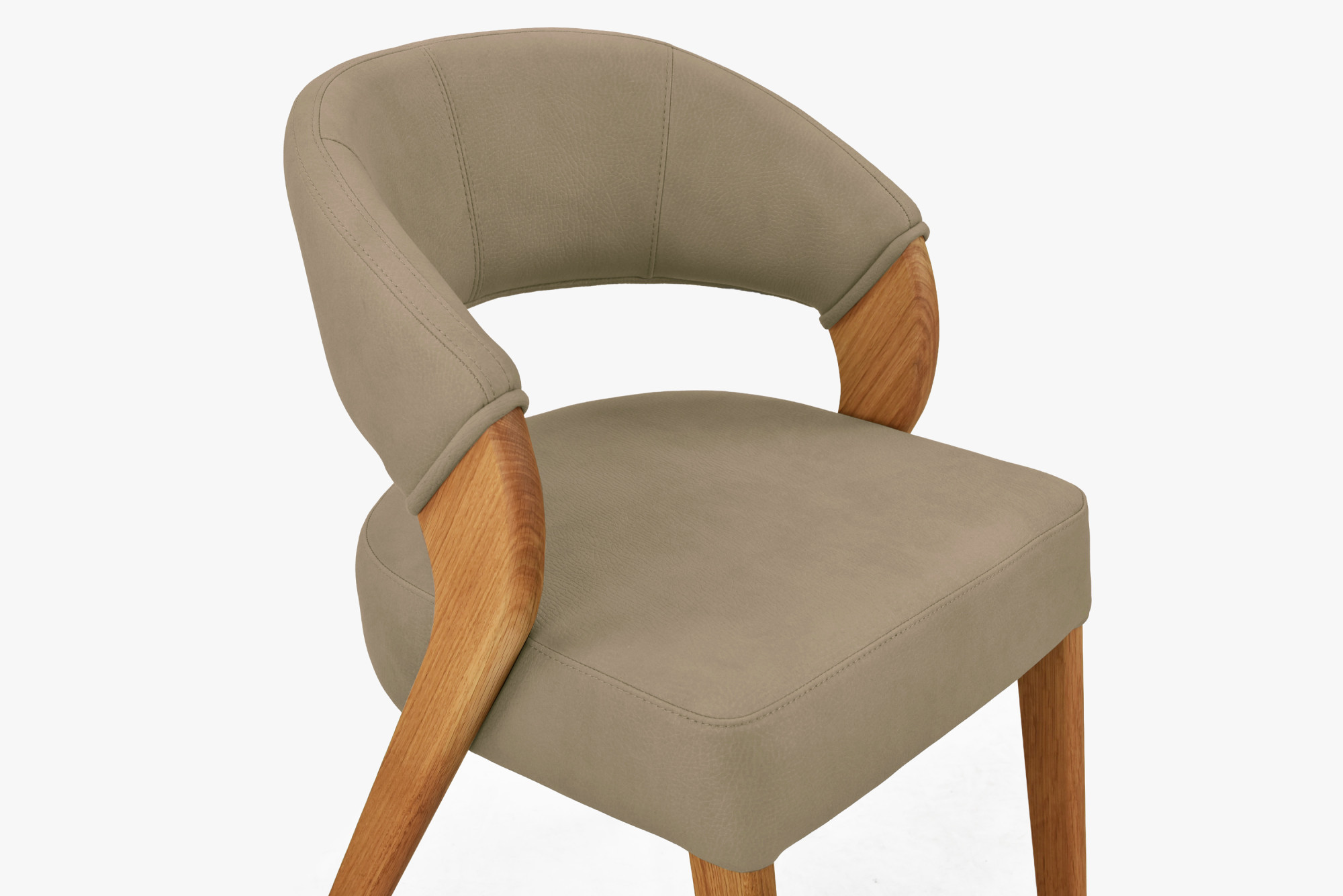 Táto dizajnová jedálenská stolička v teplom béžovom odtieni prinesie do vašej jedálne príjemnú atmosféru a nadčasovú eleganciu. Poťah z odolnej látky Texas v béžovej farbe s jemnou štruktúrou pripomínajúcou kožu pôsobí na pohľad i dotyk luxusne. Plynulé oblúky operadla a sedadla vytvárajú harmonickú siluetu, ktorú krásne dokresľujú masívne dubové nohy ošetrené prírodným olejom. Ergonomicky tvarované operadlo vám zabezpečí pohodlné sedenie pri každodennom stolovaní i dlhších spoločenských večeroch.