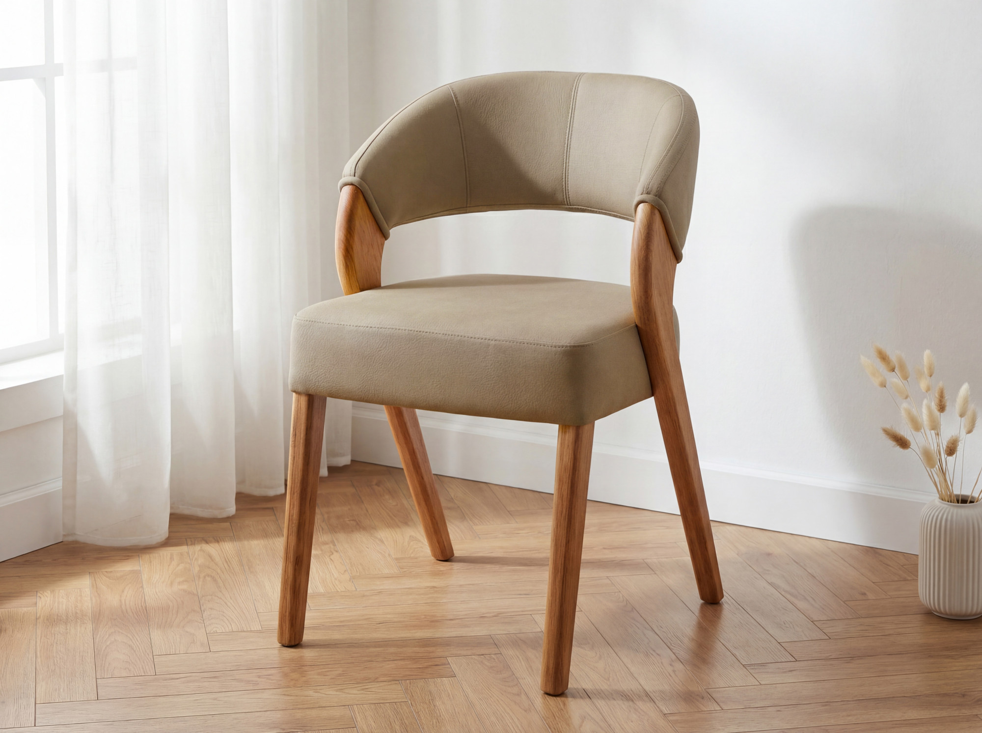 Čalúnená jedálenská stolička s dubovými nohami – látka Texas farba béžová