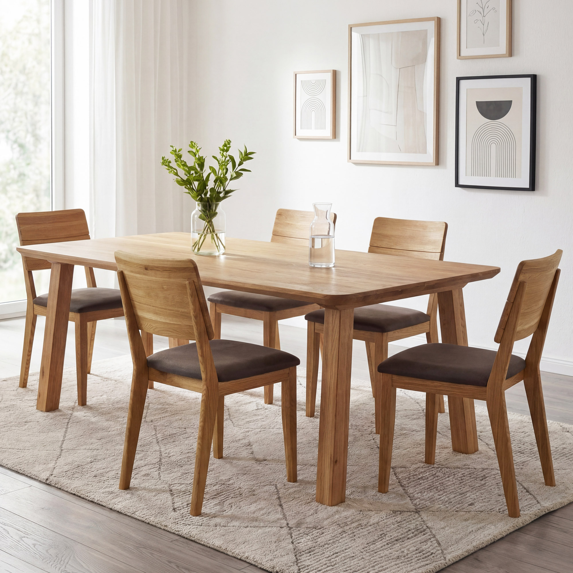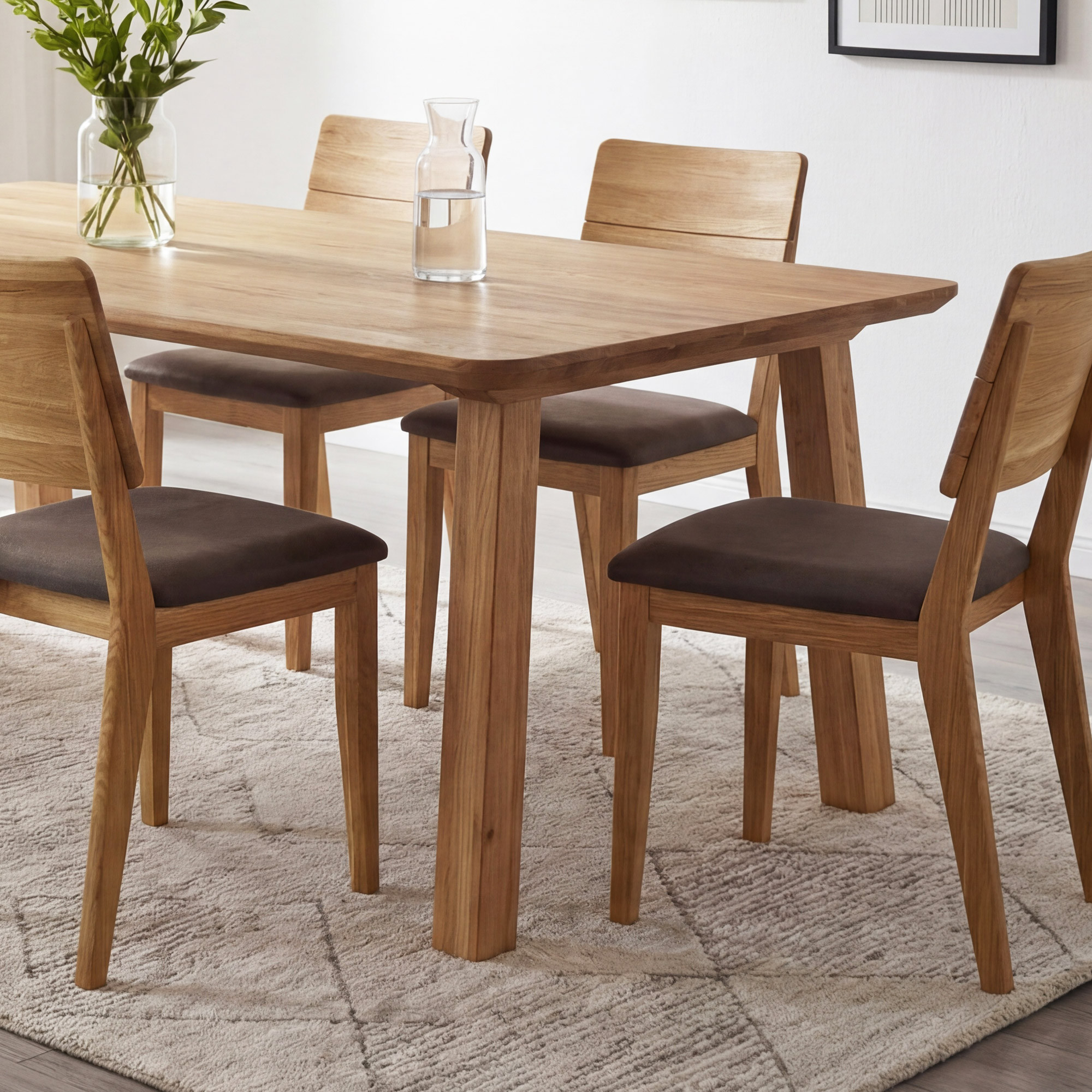 Jedálenský stôl Tina z masívneho dubového dreva je elegantnou voľbou pre každú jedáleň alebo kuchyňu. Stôl v rozmere 160 x 90 cm pohodlne usadí 4–6 osôb a je dostupný aj vo variante 200 x 100 cm pre až 8 osôb. Veľkou výhodou tohto stola sú zaoblené hrany po celom obvode dosky, ktoré zabezpečujú bezpečnosť najmä v domácnostiach s deťmi a zároveň dodávajú stolu mäkký, moderný vzhľad. Stôl je vyrobený z starostlivo vybraného divokého duba, ktorého prirodzená kresba robí každý kus úplne jedinečným. Povrch dosky je ošetrený prírodným olejom, ktorý zvýrazňuje štruktúru dreva a umožňuje mu prirodzene dýchať.
