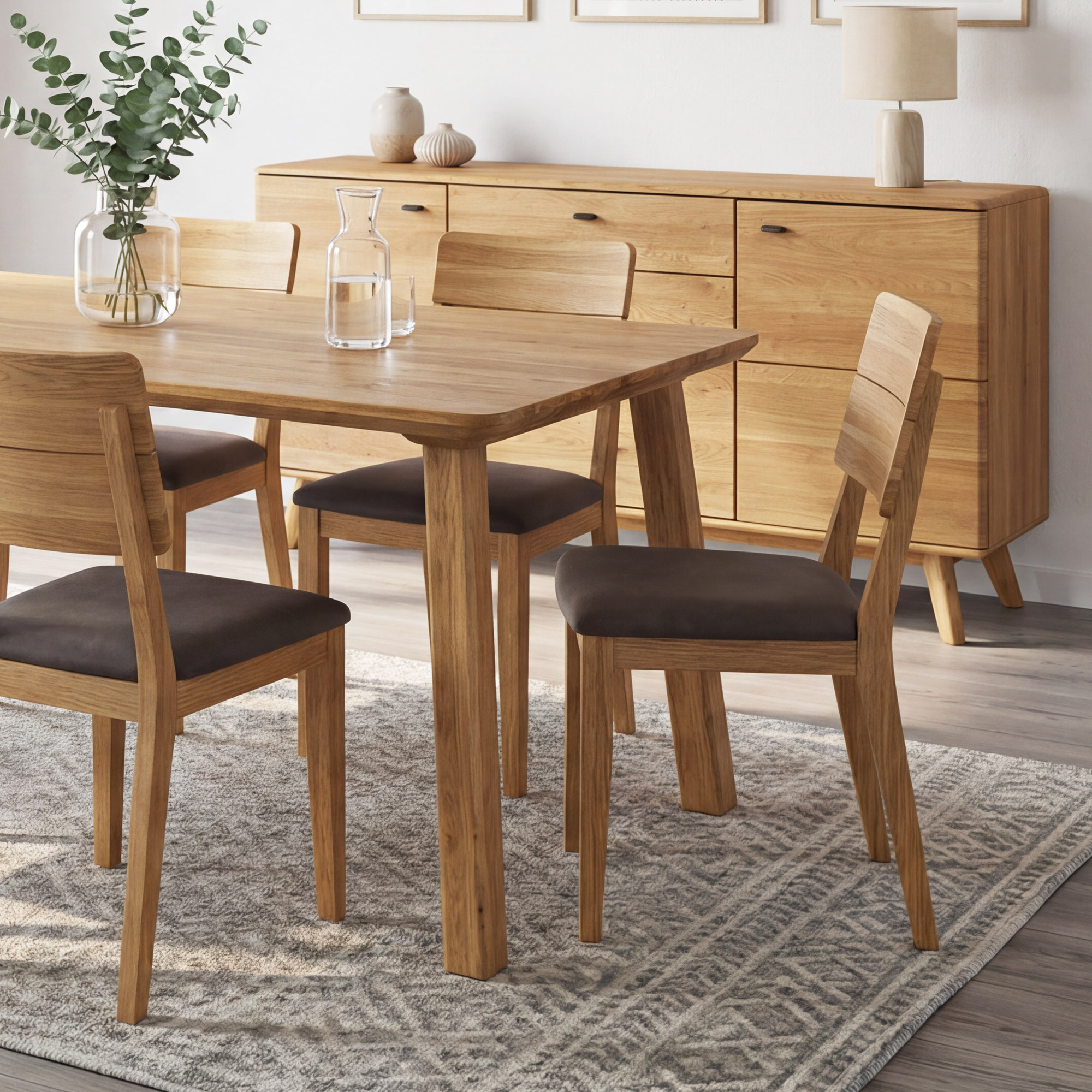 Áno, stôl Tina skvelo ladí s ďalšími výrobkami z dubového dreva z našej ponuky – jedálenské stoličky, lavice, komody aj konferenčné stolíky.