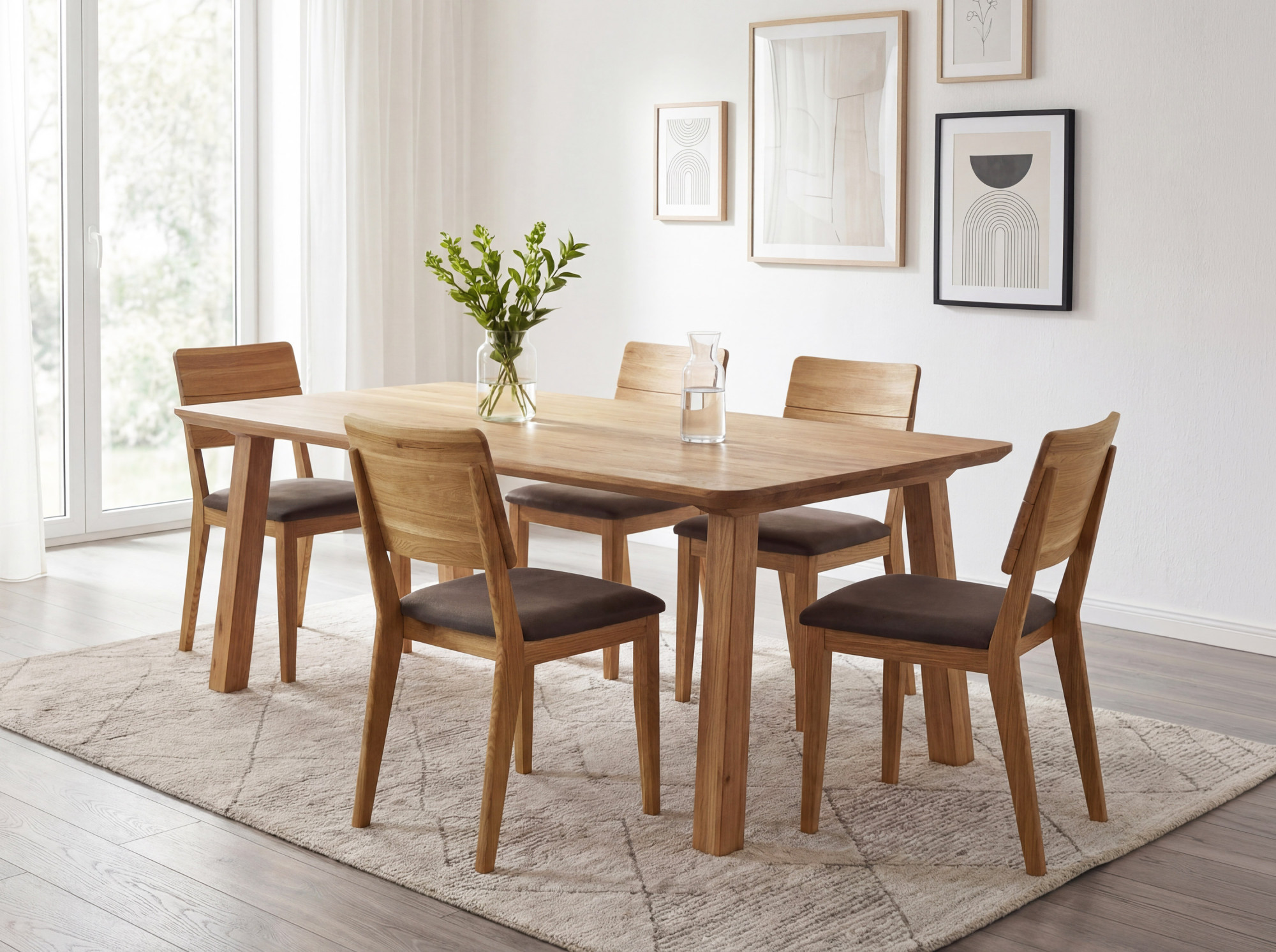 Jedálenský stôl Tina z masívneho dubového dreva je elegantnou voľbou pre každú jedáleň alebo kuchyňu. Stôl v rozmere 200 x 100 cm pohodlne usadí 4–6 osôb a je dostupný aj vo variante 160 x 90 cm pre až 8 osôb. Veľkou výhodou tohto stola sú zaoblené hrany po celom obvode dosky, ktoré zaisťujú bezpečnosť najmä v domácnostiach s deťmi a zároveň dodávajú stolu mäkký, moderný vzhľad. Stôl je vyrobený z starostlivo vybraného divokého dubu, ktorého prirodzená kresba robí každý kus úplne jedinečným. Povrch dosky je ošetrený prírodným olejom, ktorý zvýrazňuje štruktúru dreva a umožňuje mu prirodzene dýchať.