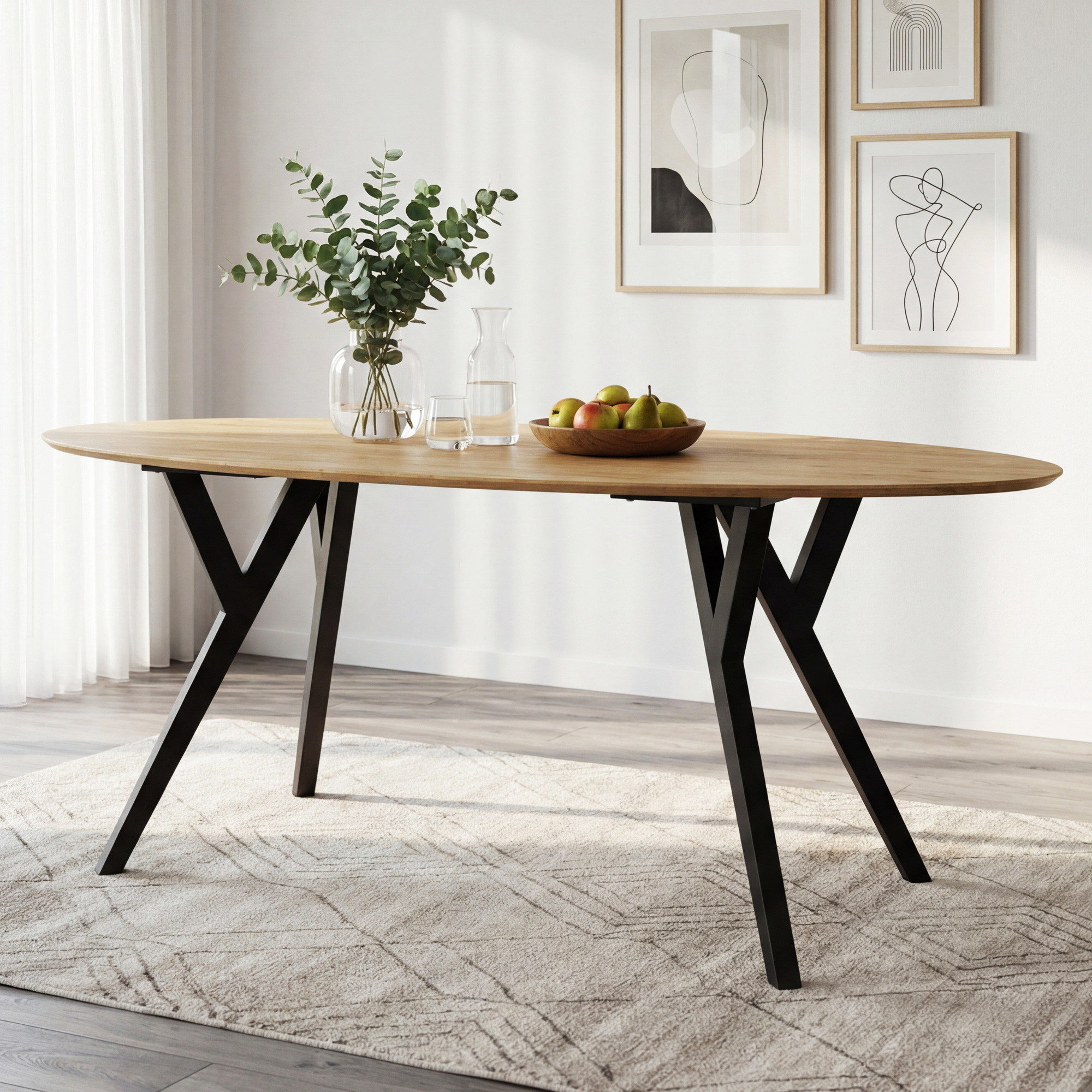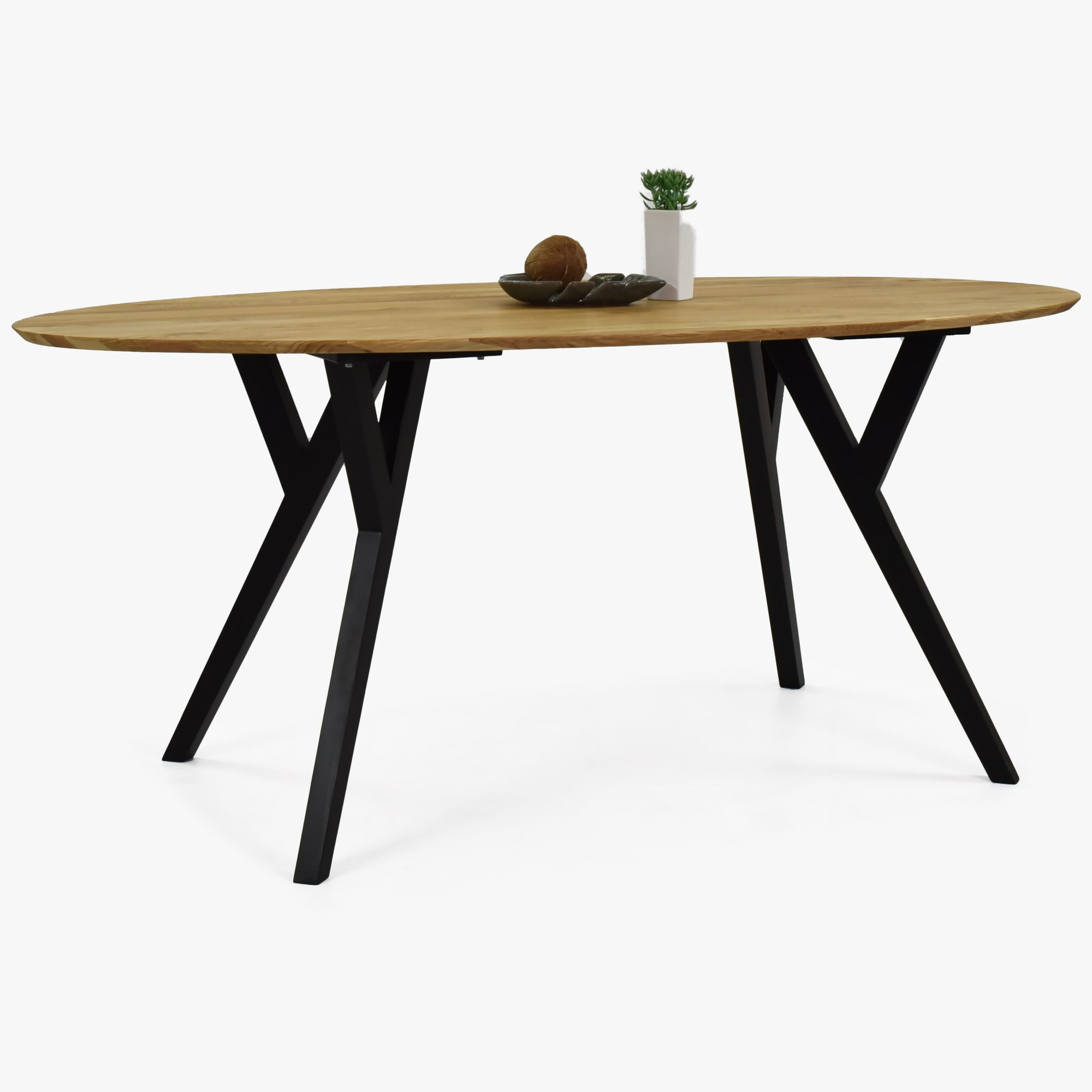Dubový oválny stôl Mak s čiernymi nohami 180 x 90 cm – masívny jedálenský stôl pre 6 osôb
