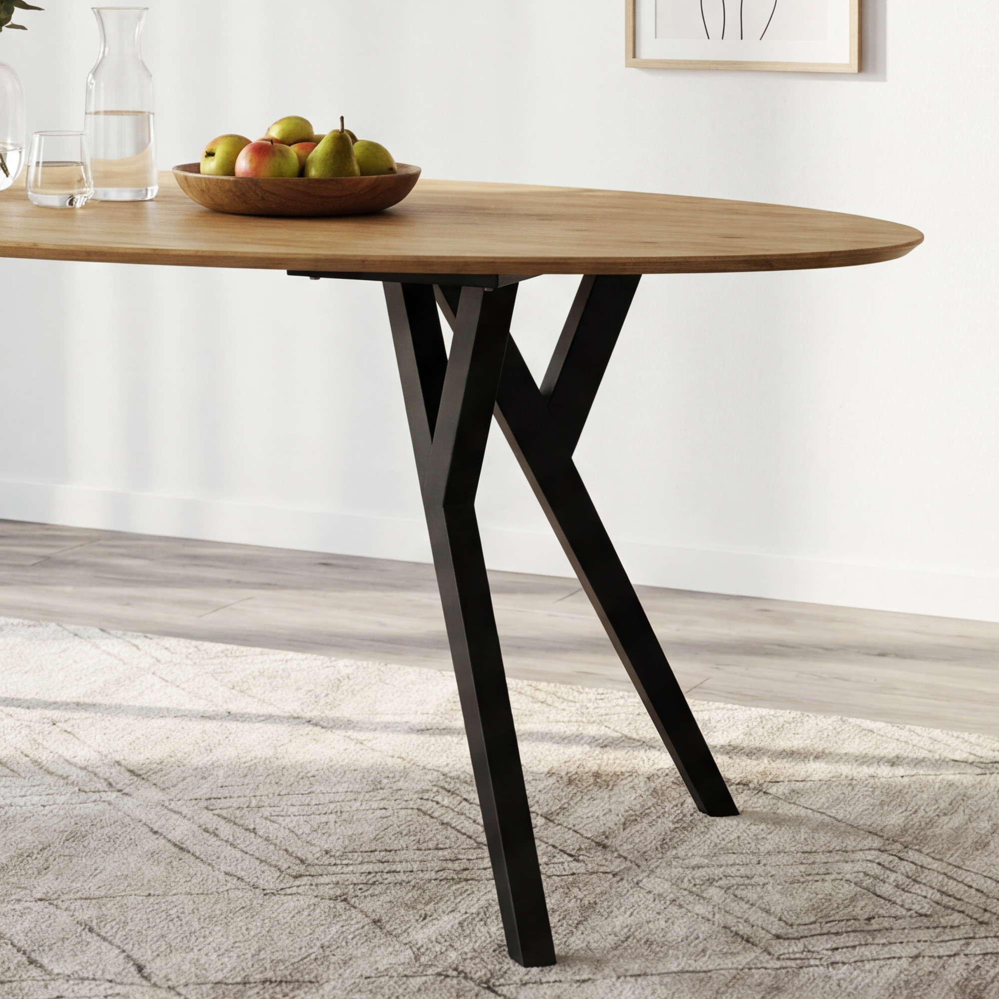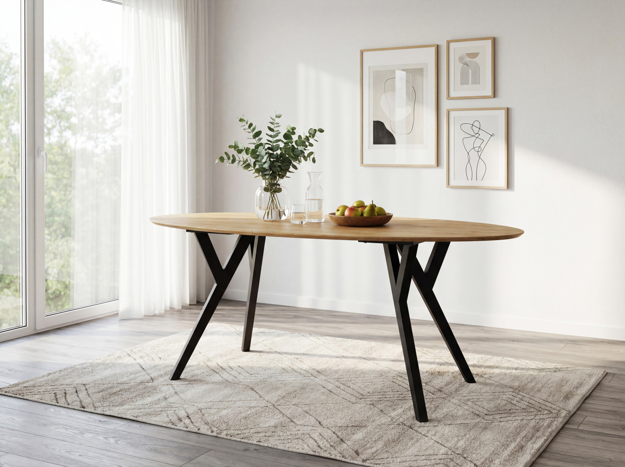 Hľadáte elegantný jedálenský stôl, ktorý sa stane stredobodom vášho interiéru? Predstavujeme vám dubový oválny stôl Mak s jedinečným dizajnom, ktorý kombinuje masívnu dubovú dosku s modernými čiernymi kovovými nohami. Výsledkom je štýlový a nadčasový kus nábytku, ktorý dokonale zapadne do moderných i škandinávskych interiérov. Použité drevo je dub divý, ktorého znakom je nádherná prírodná štruktúra vrátane autentických sukov, ktoré každému stolu dodávajú jedinečný charakter.