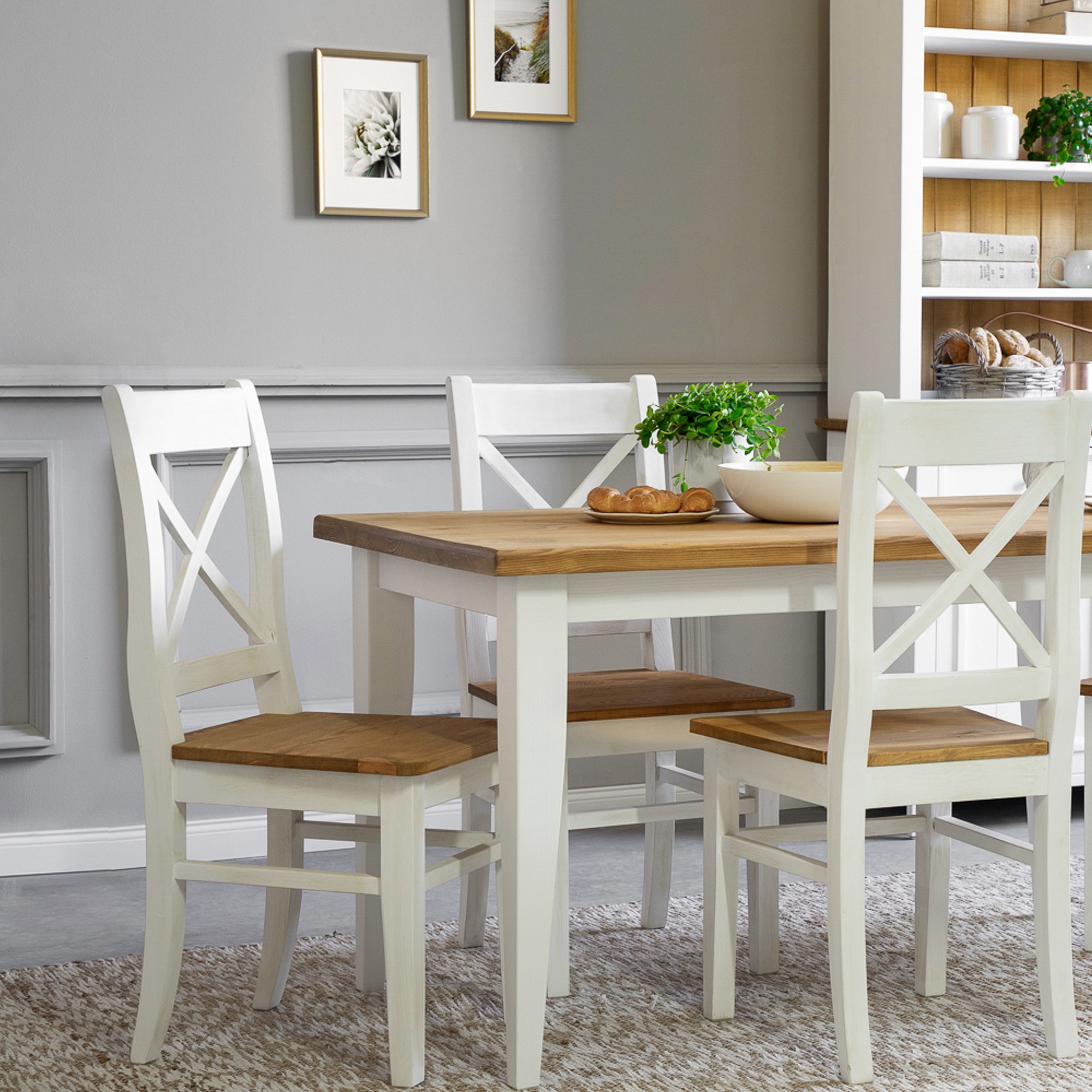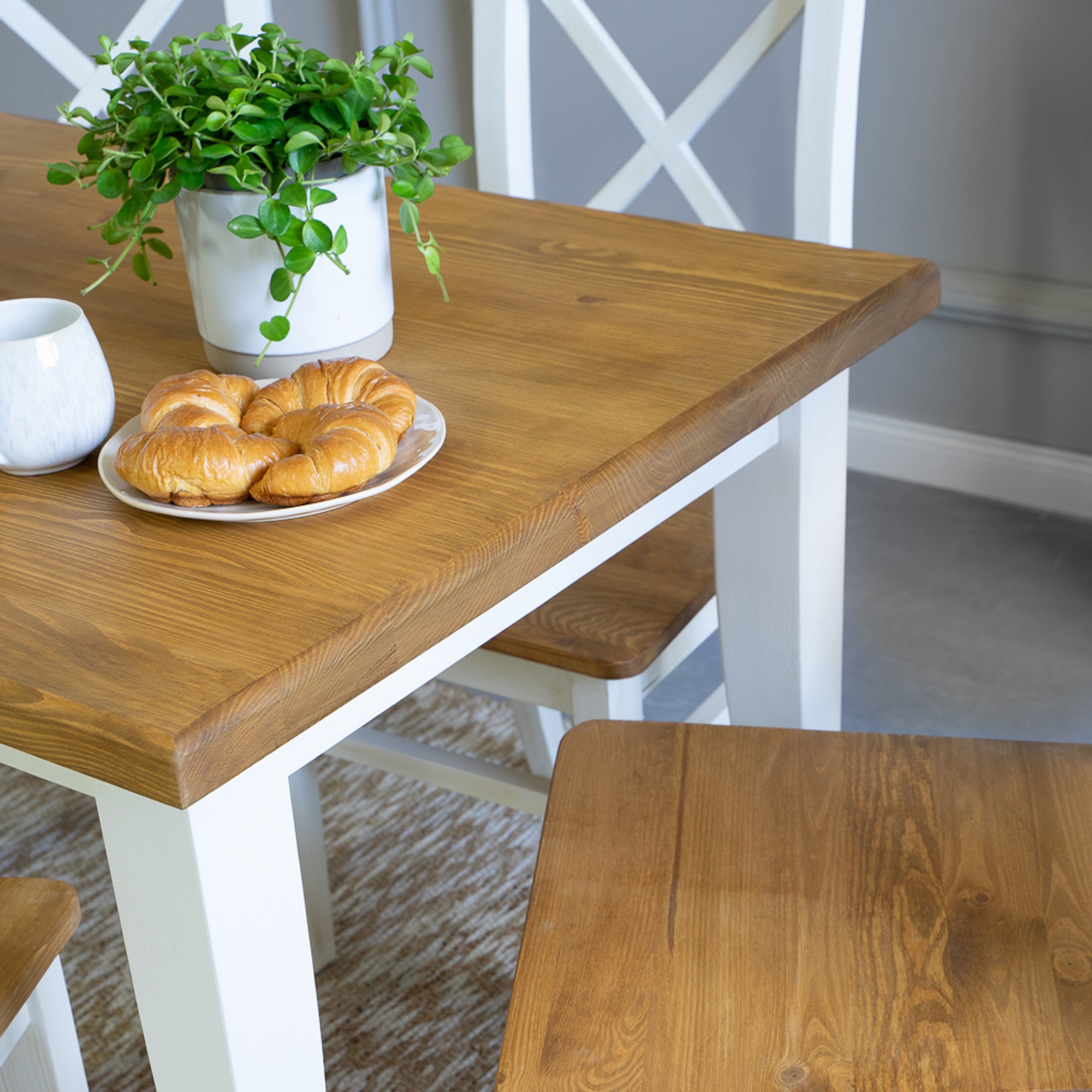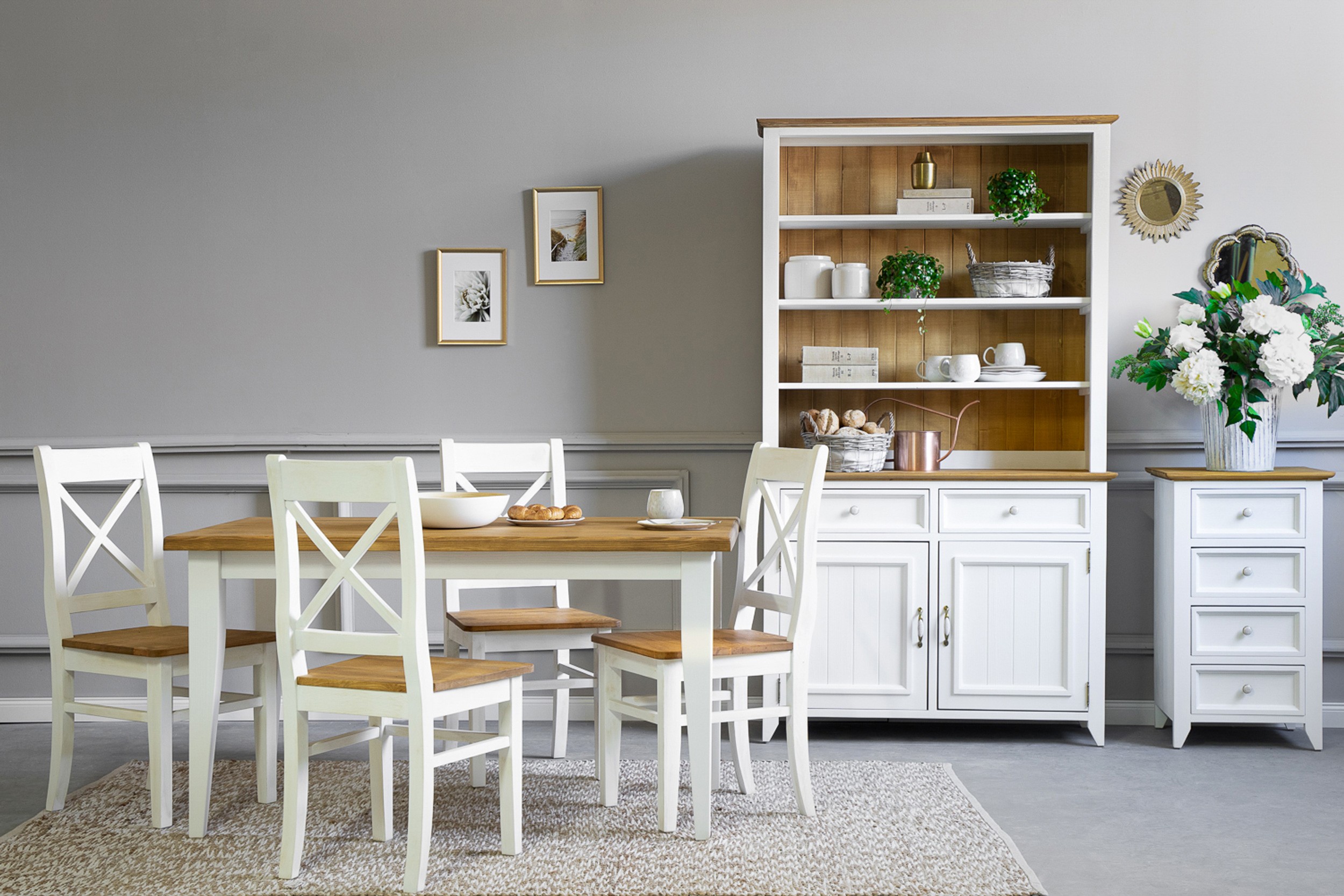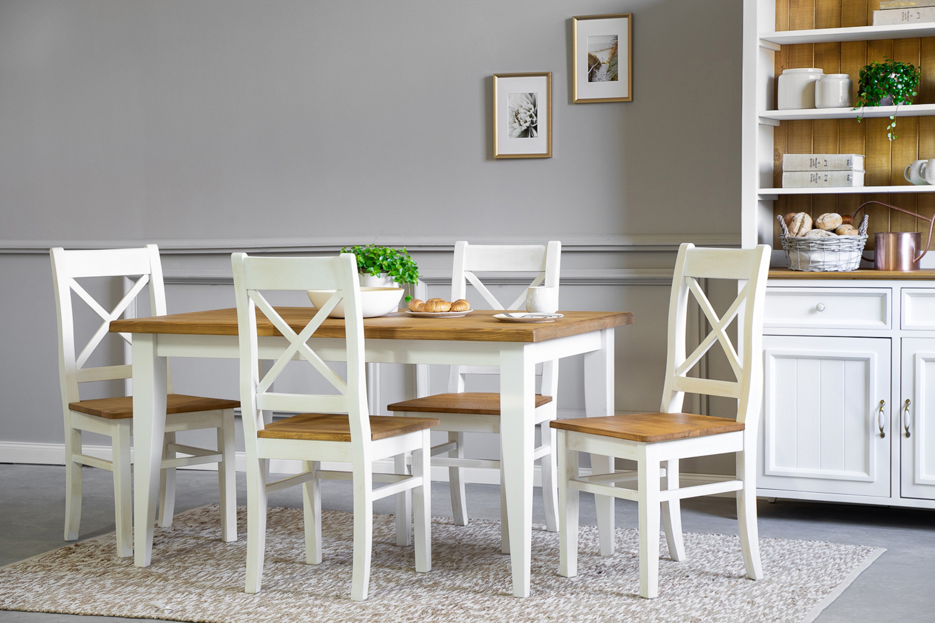 Jedálenský stôl do jedálne z najnovšej kolekcie nábytku LILLE, vyrobený vo francúzskom vidieckom štýle. Prírodný drevený stôl vyrobený z borovicového dreva v bielo-hnedej farebnej kombinácii. Stôl má vrchnú dosku hrubú až 4 cm. Vrchná doska stolíka je v hnedej farbe ošetrená prírodným voskom. Doprajte svojej jedálni aj ďalšie kúsky z tejto kolekcie a každý deň nasávajte atmosféru francúzskeho vidieckeho štýlu. Jedálenský stôl sa dodáva v demonte so jednoduchou montážou. Rozšírte svoj interiér o tento atraktívny kúsok a zažívajte každý deň silu prírodného nábytku. Ekológia prírodného produktu a harmónia nádherného dizajnu sú vlastnosti, ktoré sme spojili pri výrobe stola LILLE.