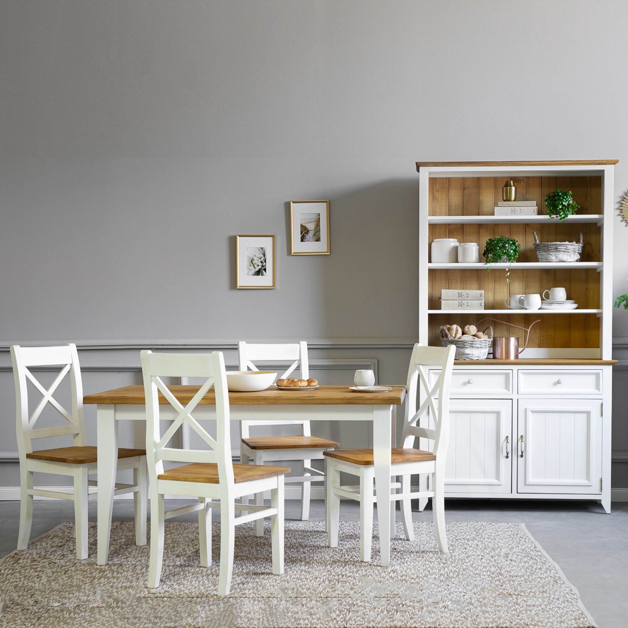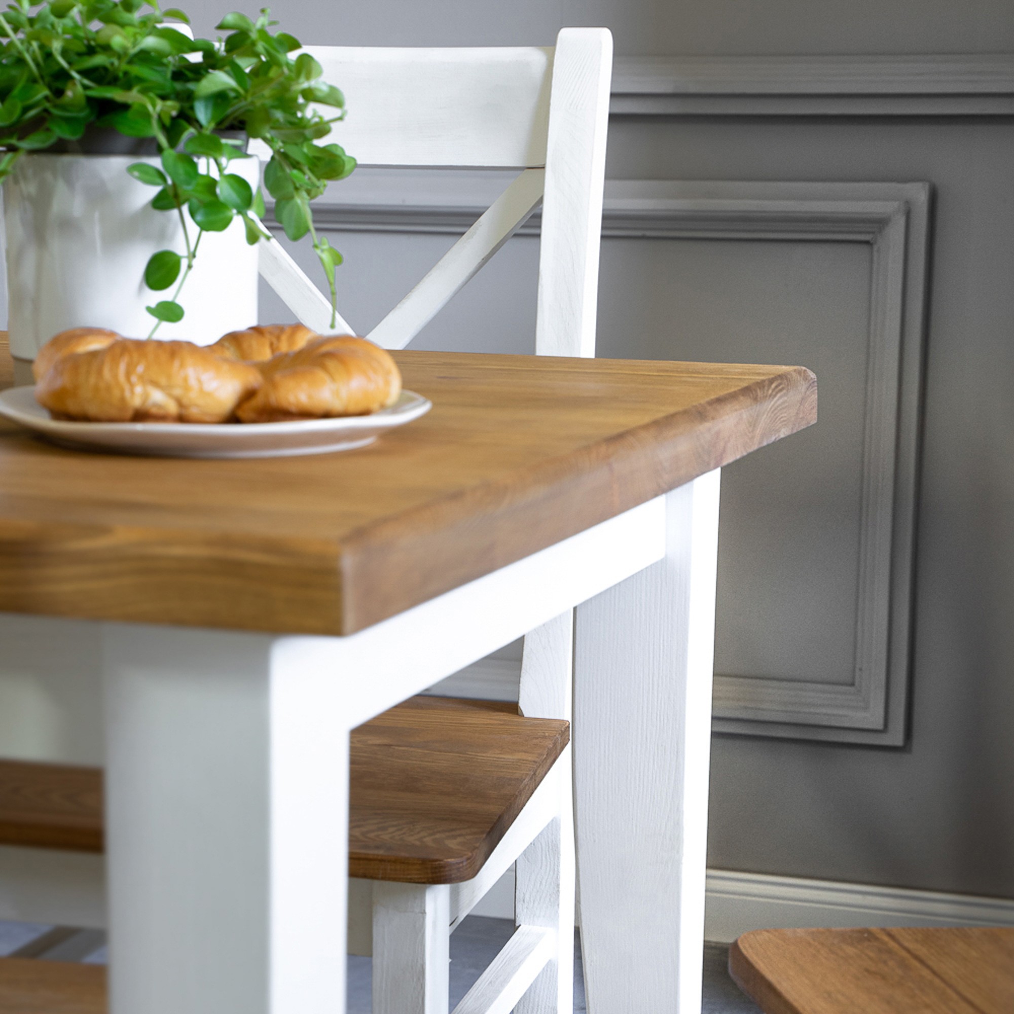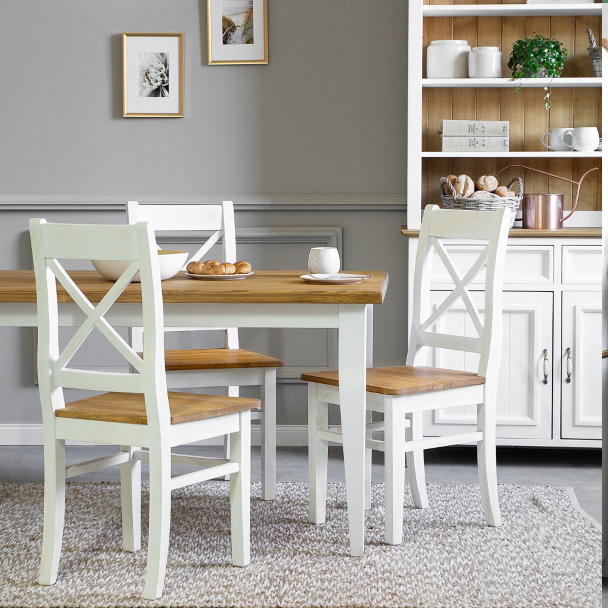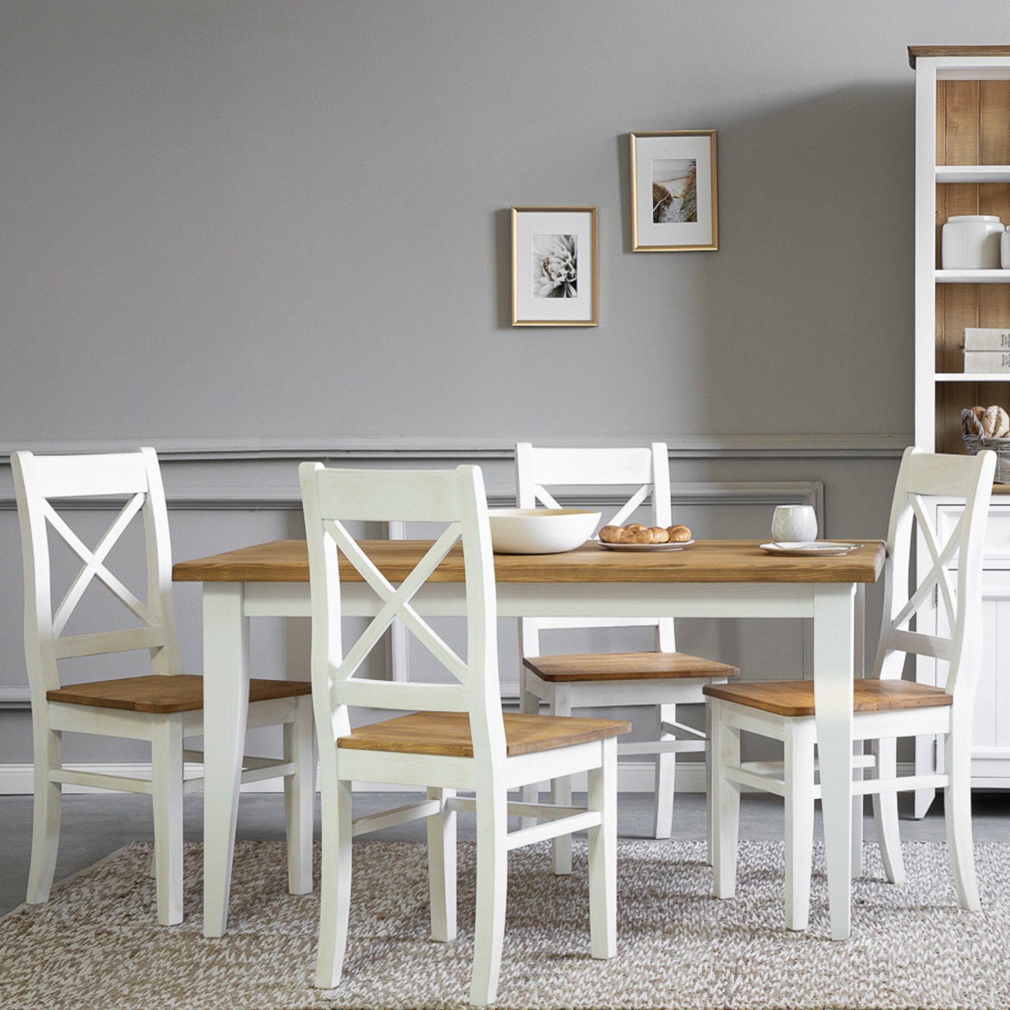Jedálenský stôl do jedálne z najnovšej kolekcie nábytku LILLE, vyrobený vo francúzskom vidieckom štýle. Prírodný drevený stôl vyrobený z borovicového dreva v bielo-hnedej farebnej kombinácii. Stôl má vrchnú dosku hrubú až 4 cm. Vrchná doska stolíka je v hnedej farbe ošetrená prírodným voskom. Doprajte svojej jedálni aj ďalšie kúsky z tejto kolekcie a každý deň nasávajte atmosféru francúzskeho vidieckeho štýlu. Jedálenský stôl sa dodáva v demonte so jednoduchou montážou. Rozšírte svoj interiér o tento atraktívny kúsok a zažívajte každý deň silu prírodného nábytku. Ekológia prírodného produktu a harmónia nádherného dizajnu sú vlastnosti, ktoré sme spojili pri výrobe stola LILLE.