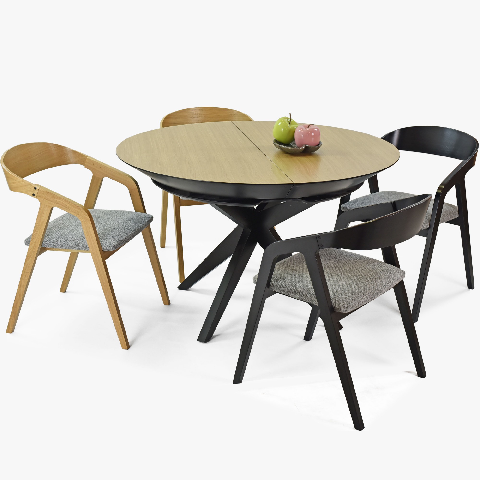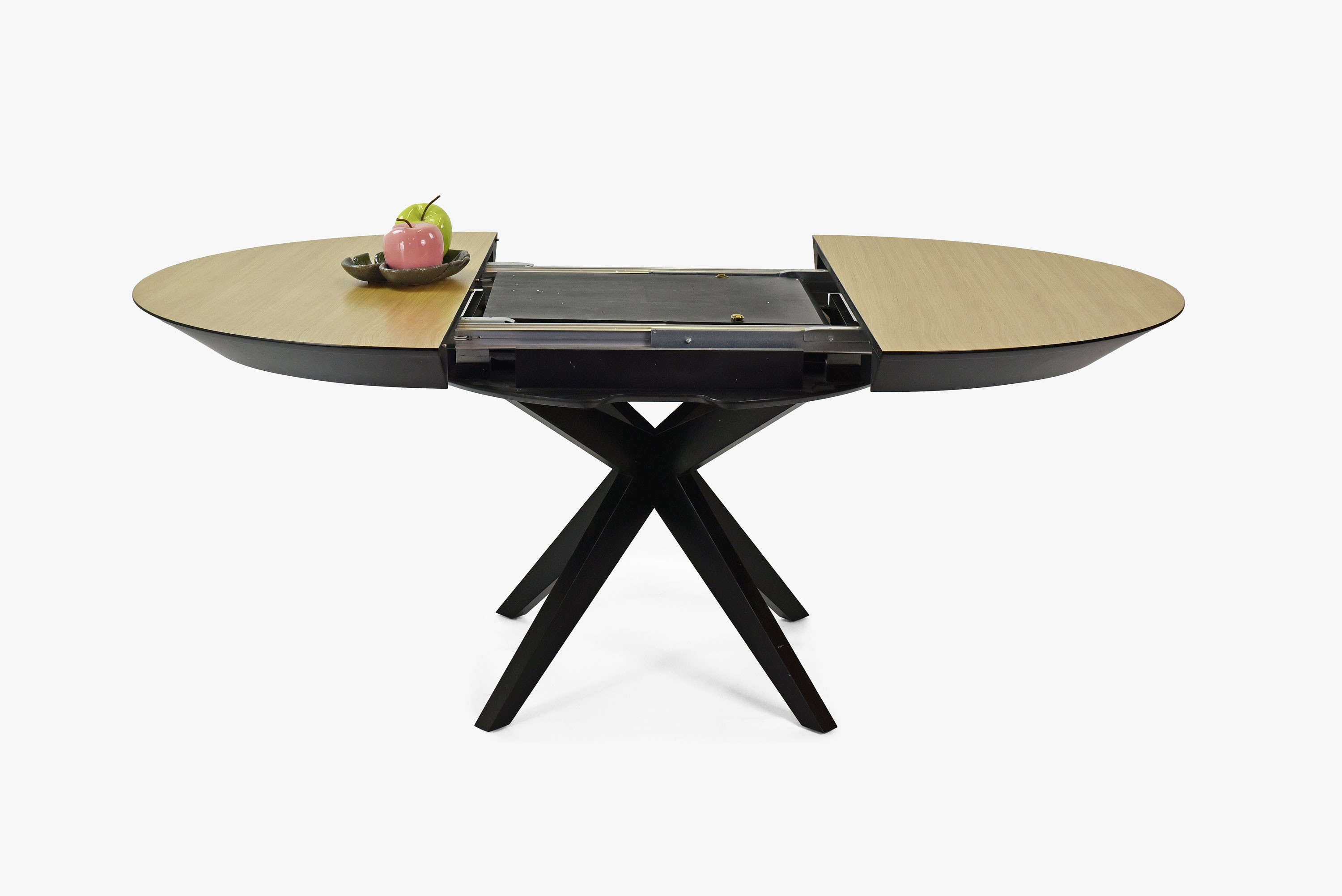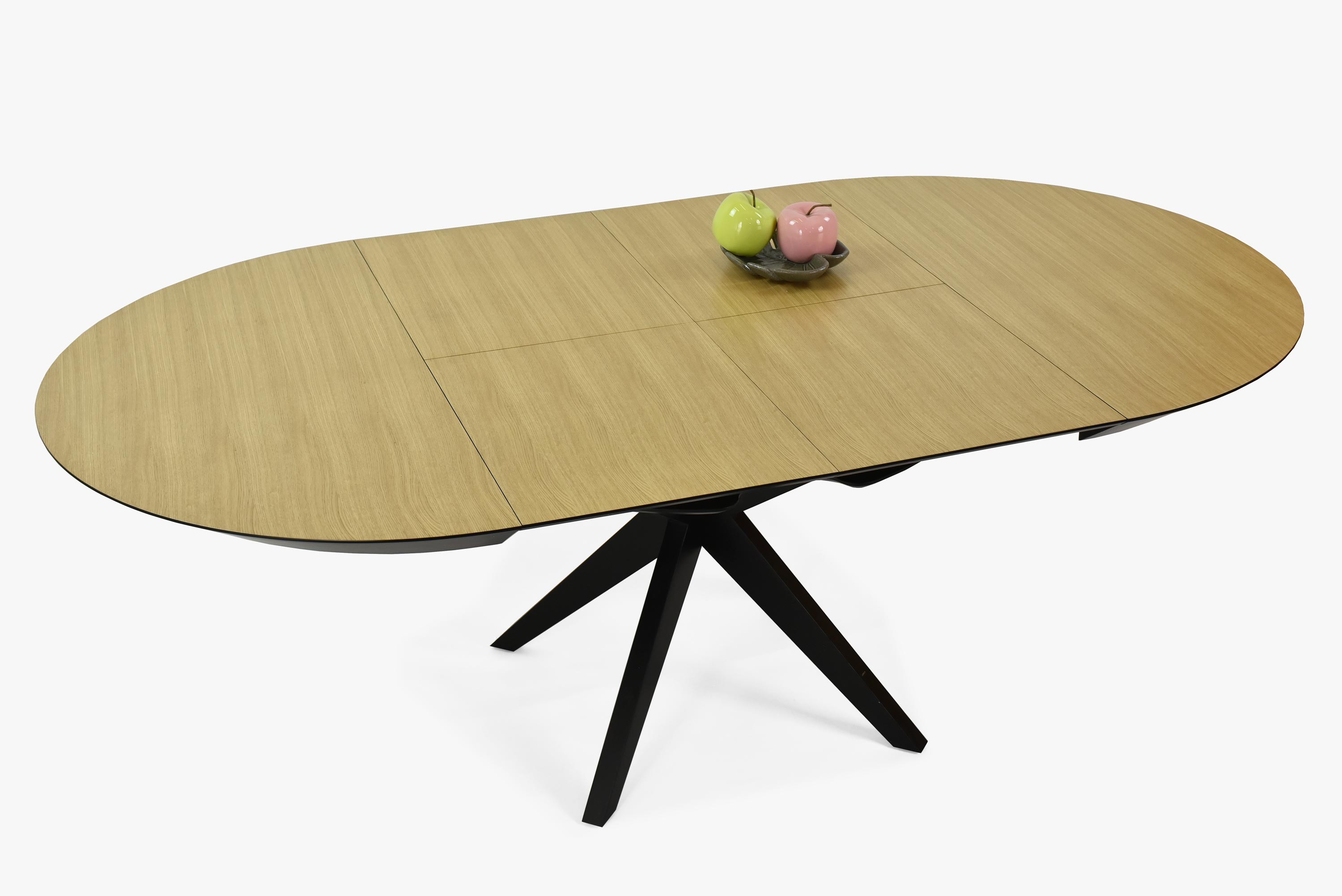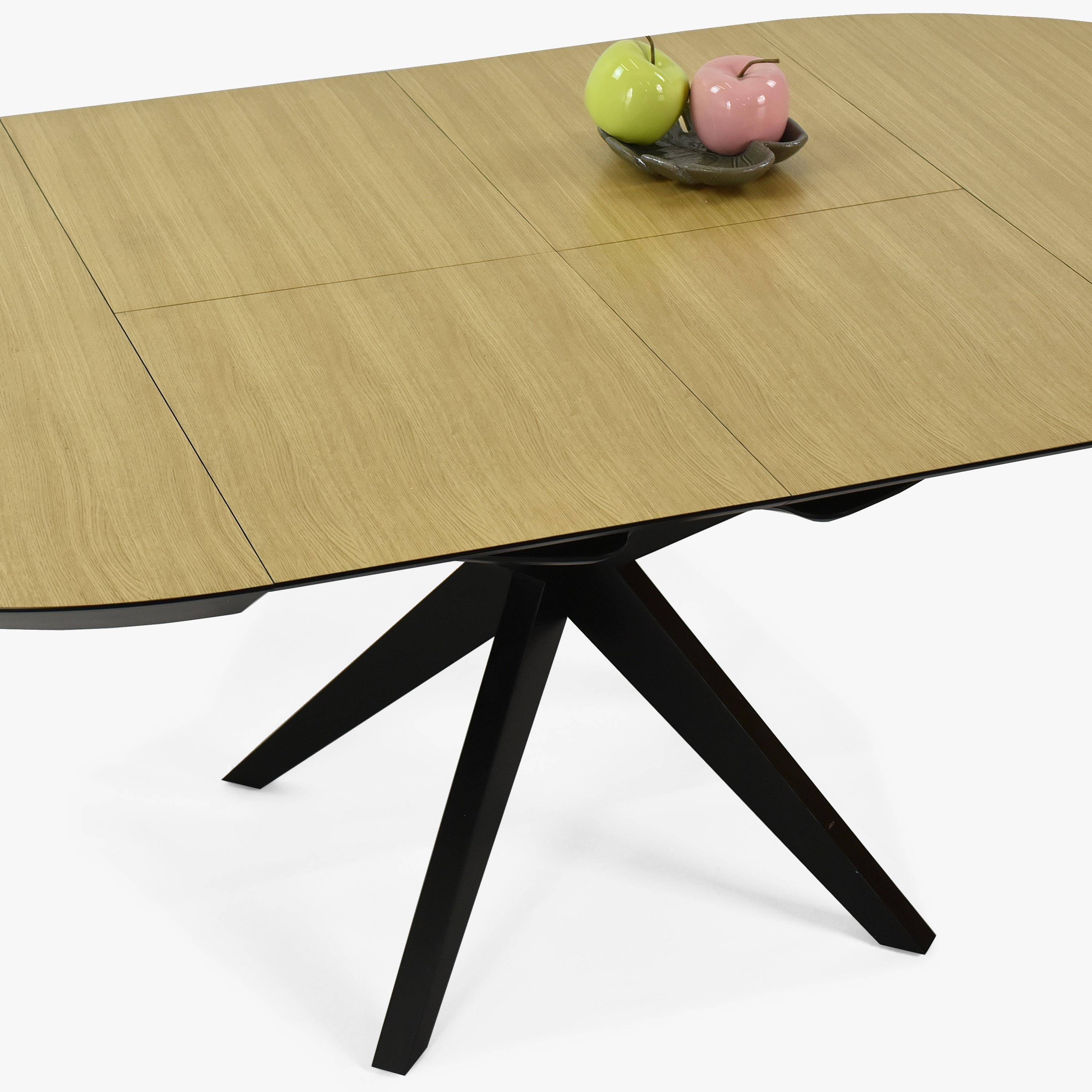 Guľatý jedálenský stôl - rozkladacie čierne nohy a doska dubová dyha
