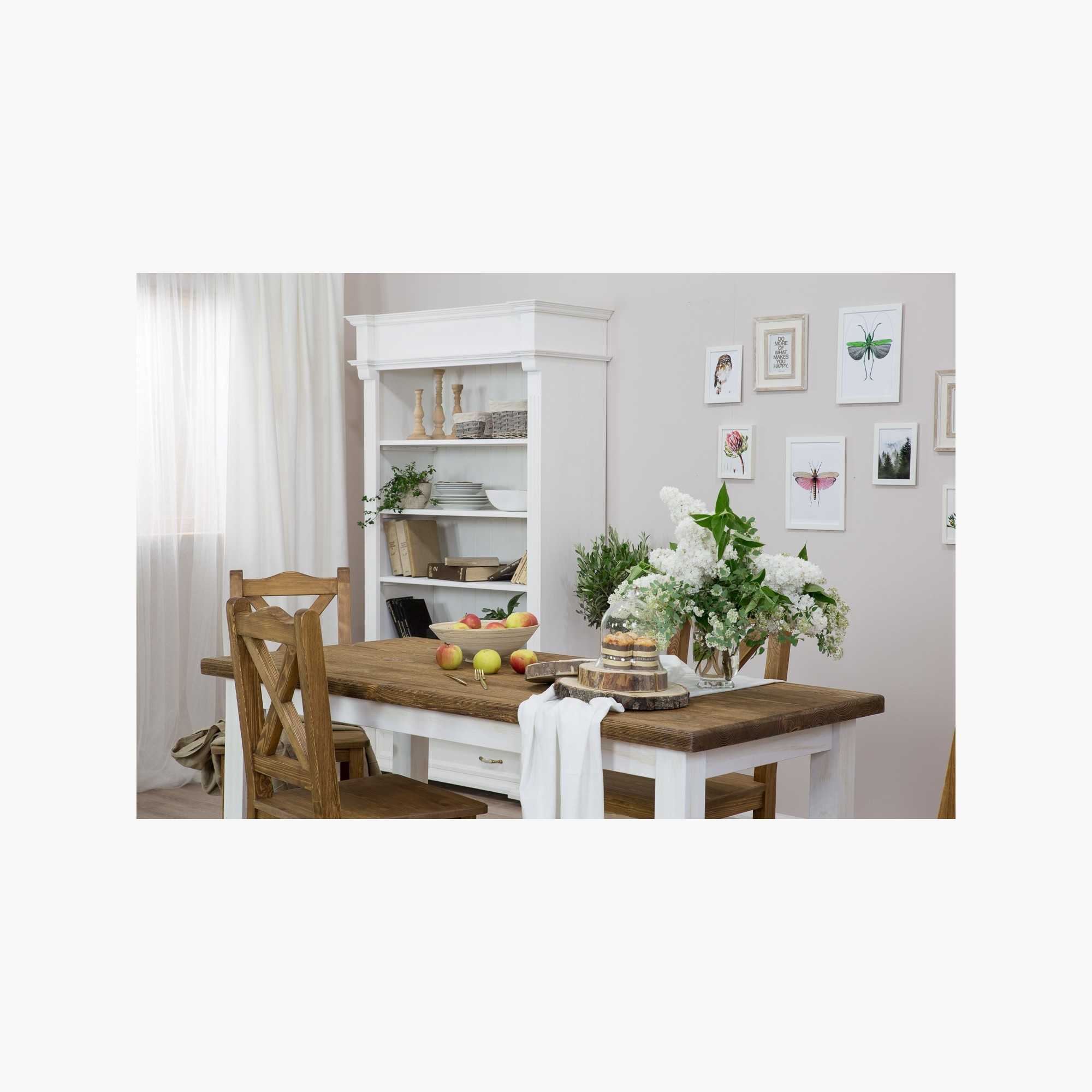 Jedálenský stôl Provence predstavuje originálny nábytok, ktorý sa pýši jedinečným charakterom. Ak ste sa v štýle Provence rozhodli zariadiť celú jedáleň, niet nič jednoduchšie, než skombinovať jedálenský stôl s ďalšími prvkami našej série! Neodmysliteľným doplnkom sú stoličky v provensálskom štýle! Dominantu jedálne vytvorí luxusný príborník a určite sa bude hodiť aj drevený regál. Načerpajte inšpiráciu a vytvorte si pomocou kolekcie Provence nádherný interiér zariadený v štýle francúzskeho vidieckeho bývania!