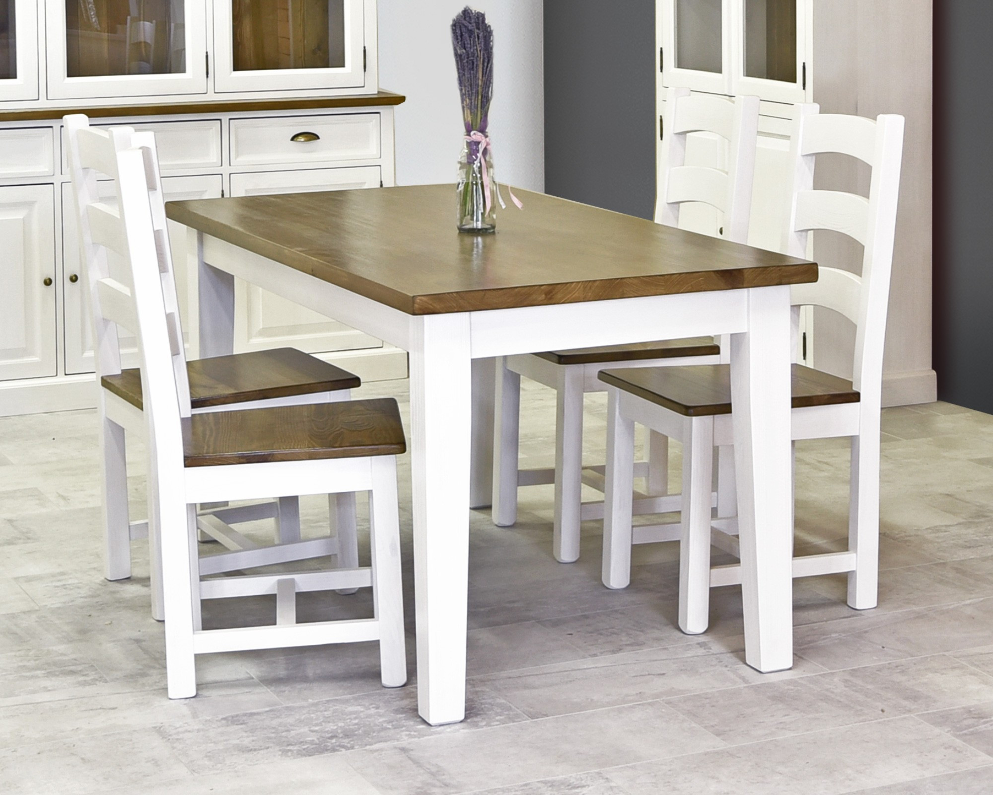 Nábytok z kolekcie Provence, ku ktorej tento stôl patrí, je inšpirovaný tradičným francúzskym vidiekom. Kombinácia bielej a hnedej farby vytvára elegantný rustikálny dizajn, ktorý sa hodí do moderných aj klasických interiérov. Hnedé plochy sú chránené ekologickým lakom a biele časti ošetrené voskom a jemným lakom, čo zvýrazňuje štruktúru borovice a zabezpečuje dlhú životnosť. Stôl je možné jednoducho kombinovať s ďalším nábytkom zo rovnakej kolekcie a vytvoriť tak harmonický interiér. Samozrejmosťou je FSC certifikát dreva, ktorý potvrdzuje zodpovedný pôvod použitého materiálu.