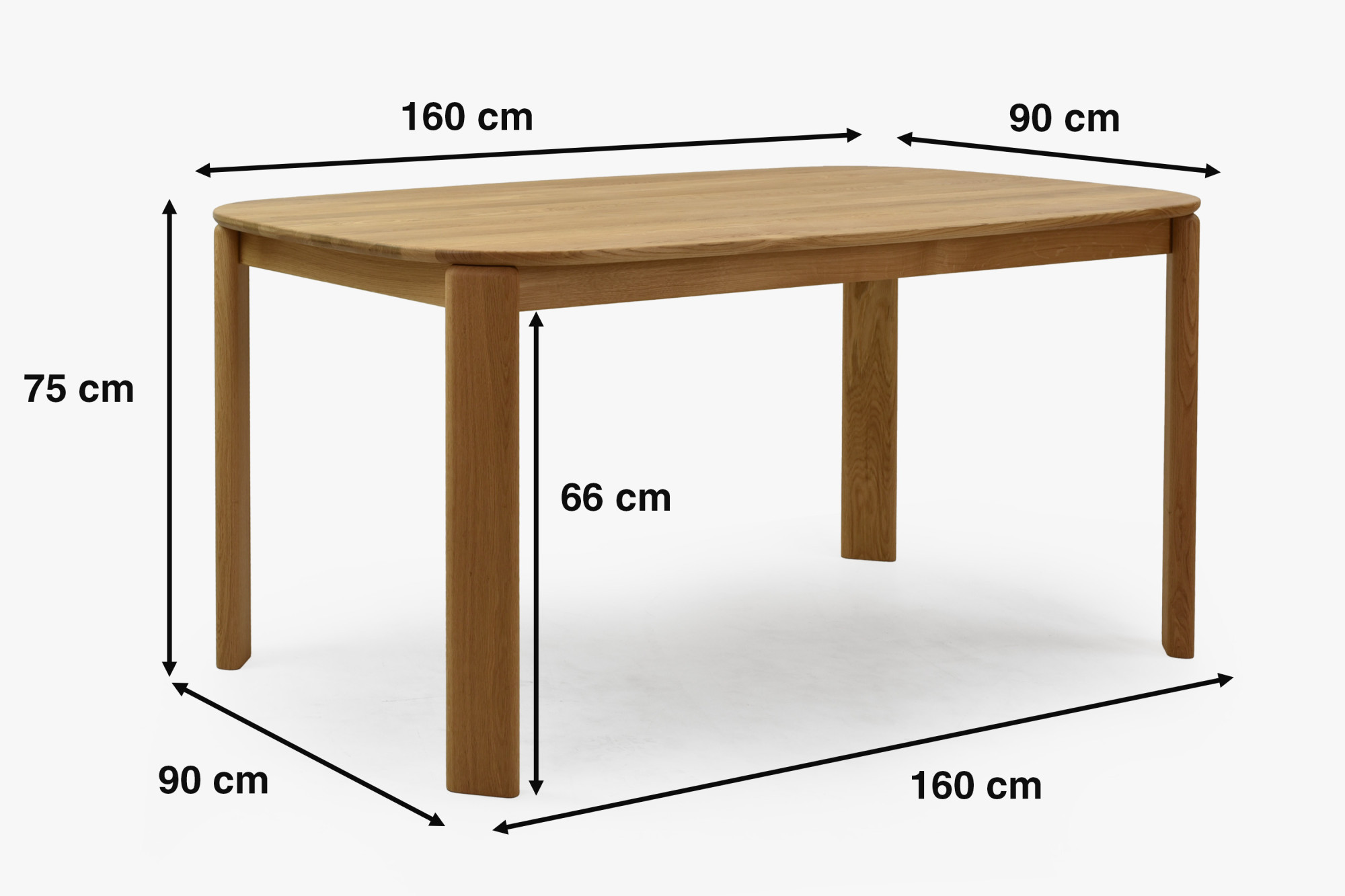 Stabilné nohy s rozmerom 10 x 4 cm podčiarkujú elegantný dizajn a ponúkajú dostatočnú oporu. Dubový jedálenský stôl 160 x 90 cm model Robi je možné jednoducho kombinovať s ďalším dubovým nábytkom a vďaka priamemu predaju je cenovo dostupný. Stôl sa dodáva v demonte s návodom, takže ho ľahko zostavíte. Nižšie uvádzame hlavné vlastnosti: