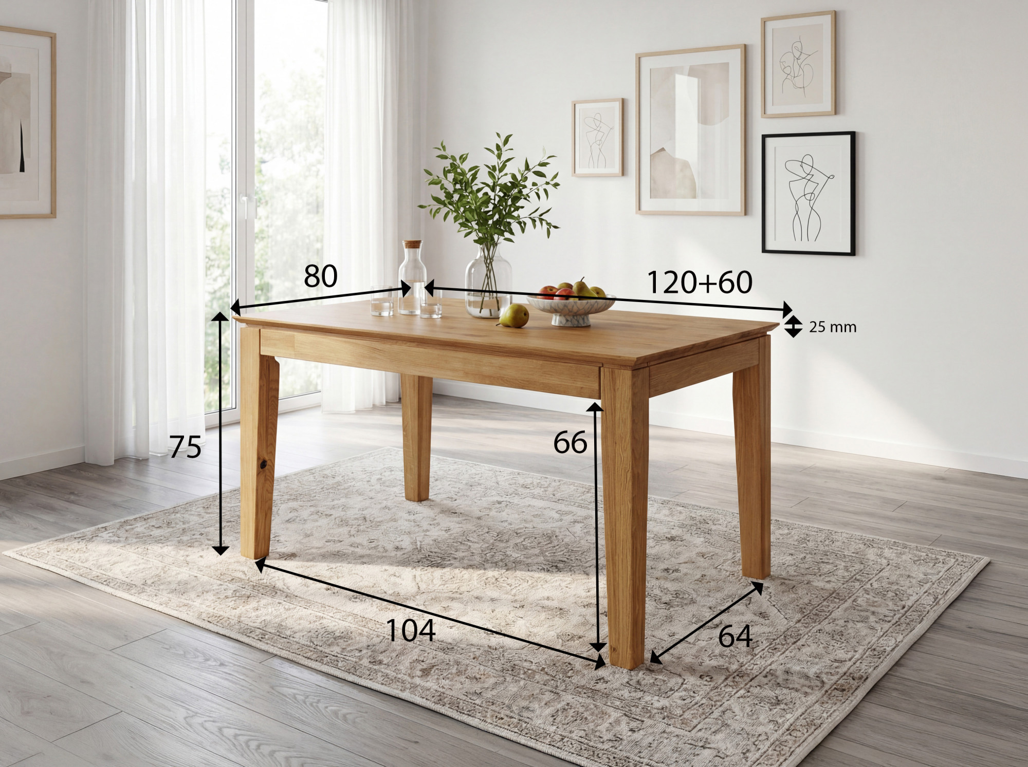 * Na obrázku dubový rozkladací stôl Erik 120 x 80 cm