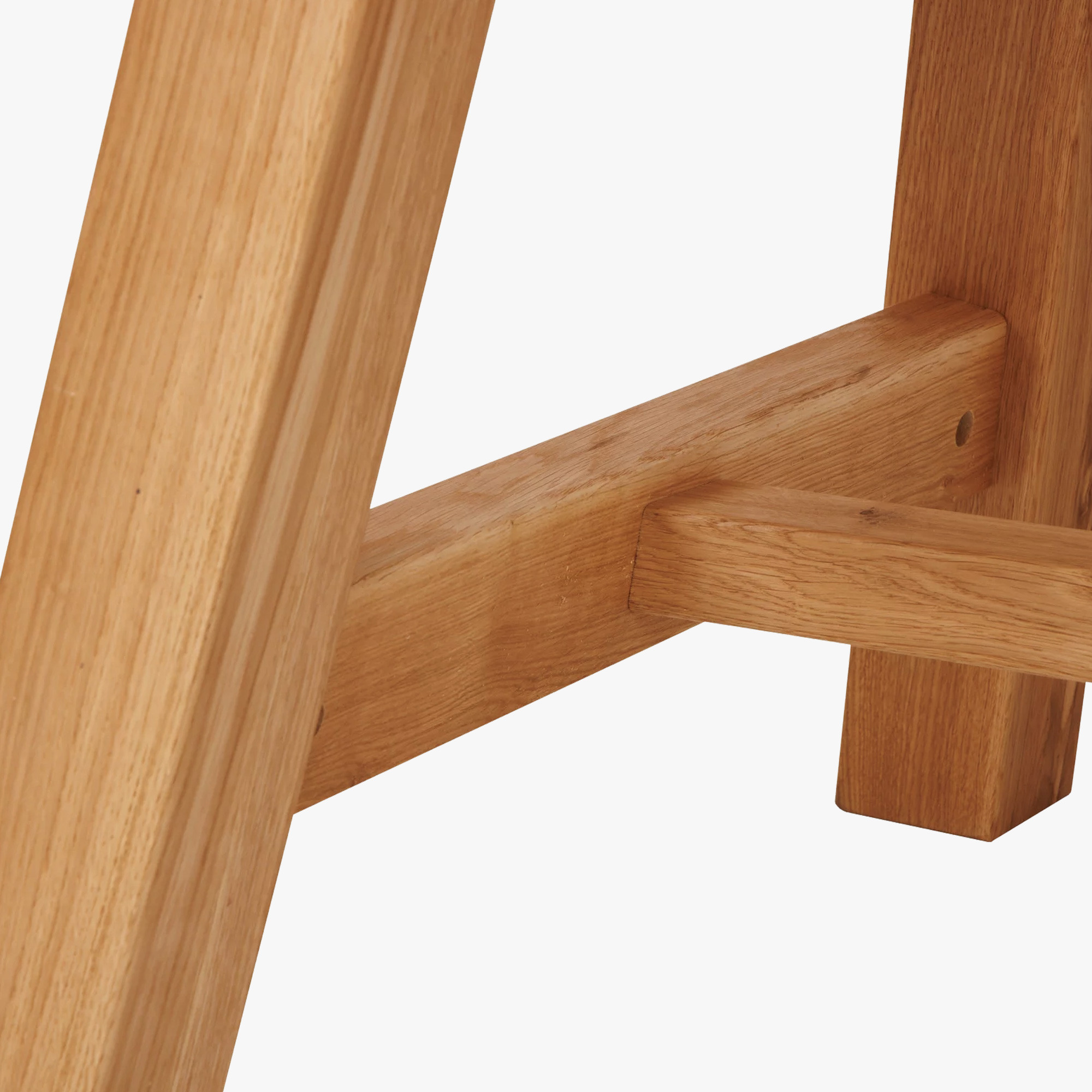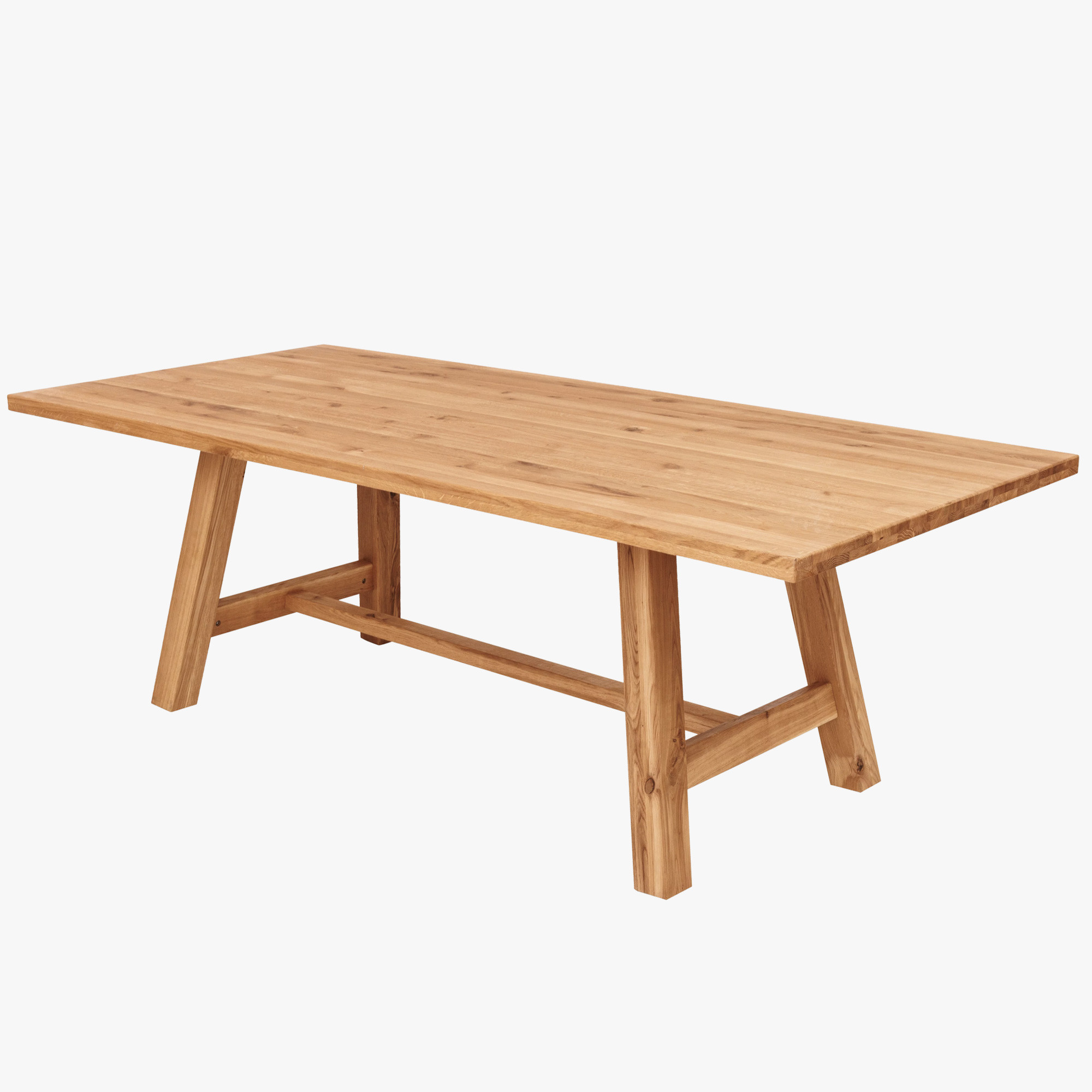 Vďaka masívnej dubovej konštrukcii a prekríženým nohám s priečkou je stôl vysoko stabilný a odolný, vhodný pre bežné aj náročnejšie zaťaženie.