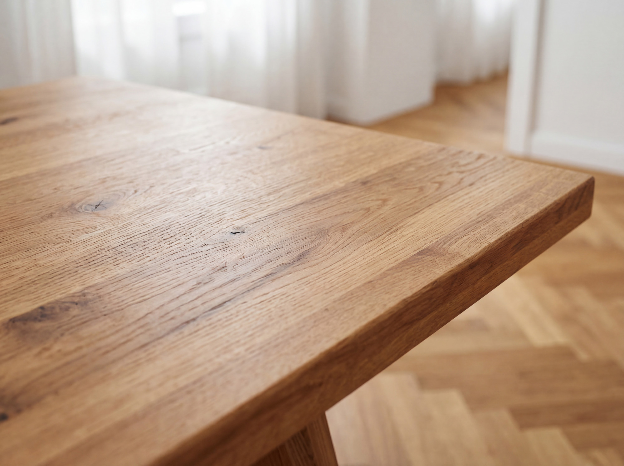 Stôl je dodávaný v demonte s prehľadným návodom. Zostavenie spočíva v pripevnení nôh k doske a je jednoduché aj bez odborných znalostí. - Ako sa starať o olejovaný povrch?