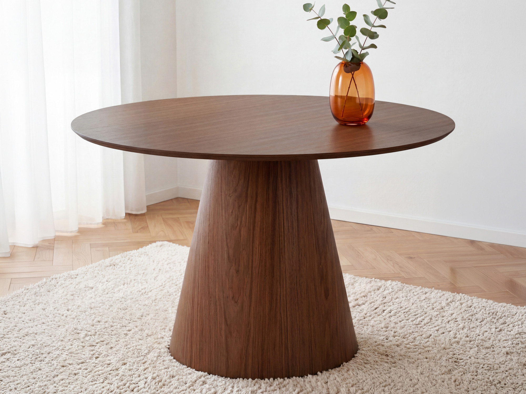 Kulatý stôl na kužeľovej nohe 120 cm – dub bordo-vlašský orech